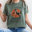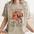 A Witch, Her Cat And Her Broom Retro Halloween Comfort Colors Tshirt