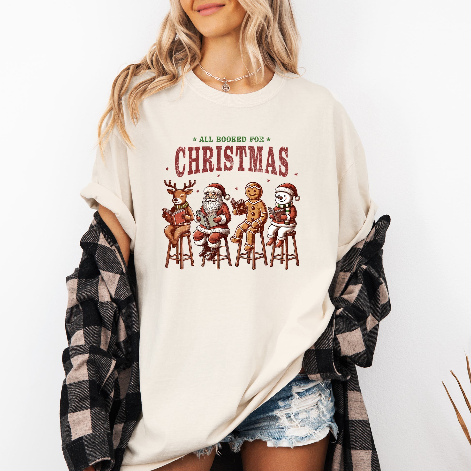All Booked For Christmas, Reindeer, Santa, Snowman, Teacher, Books Tshirt Comfort Colors T-Shirt