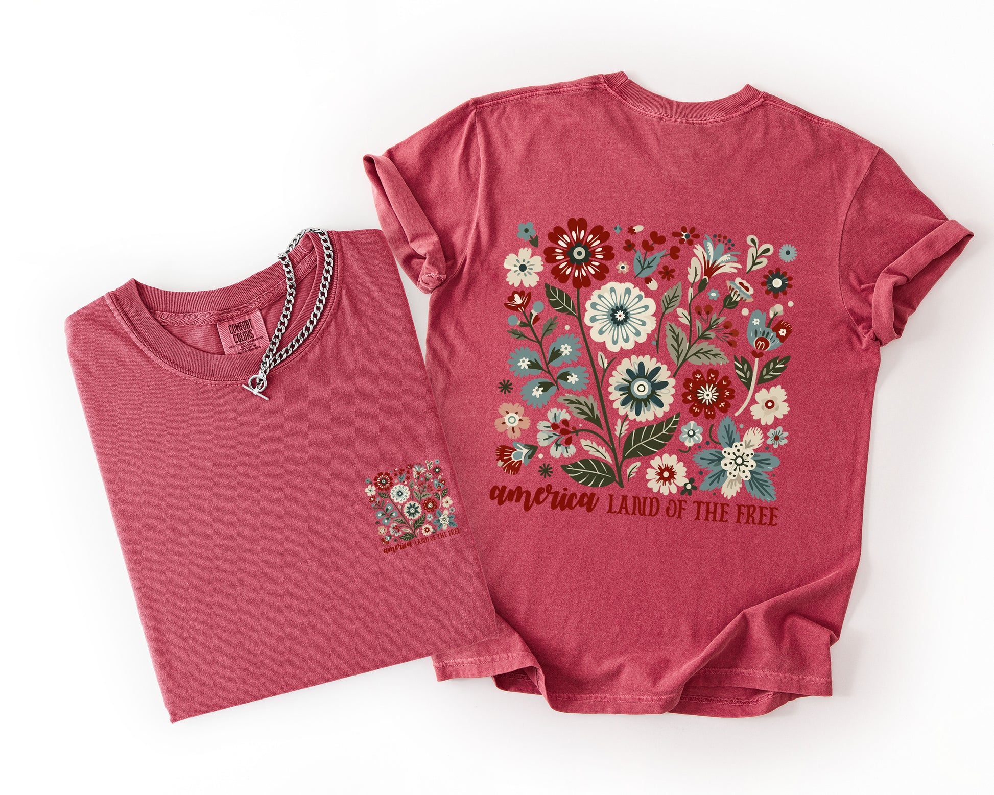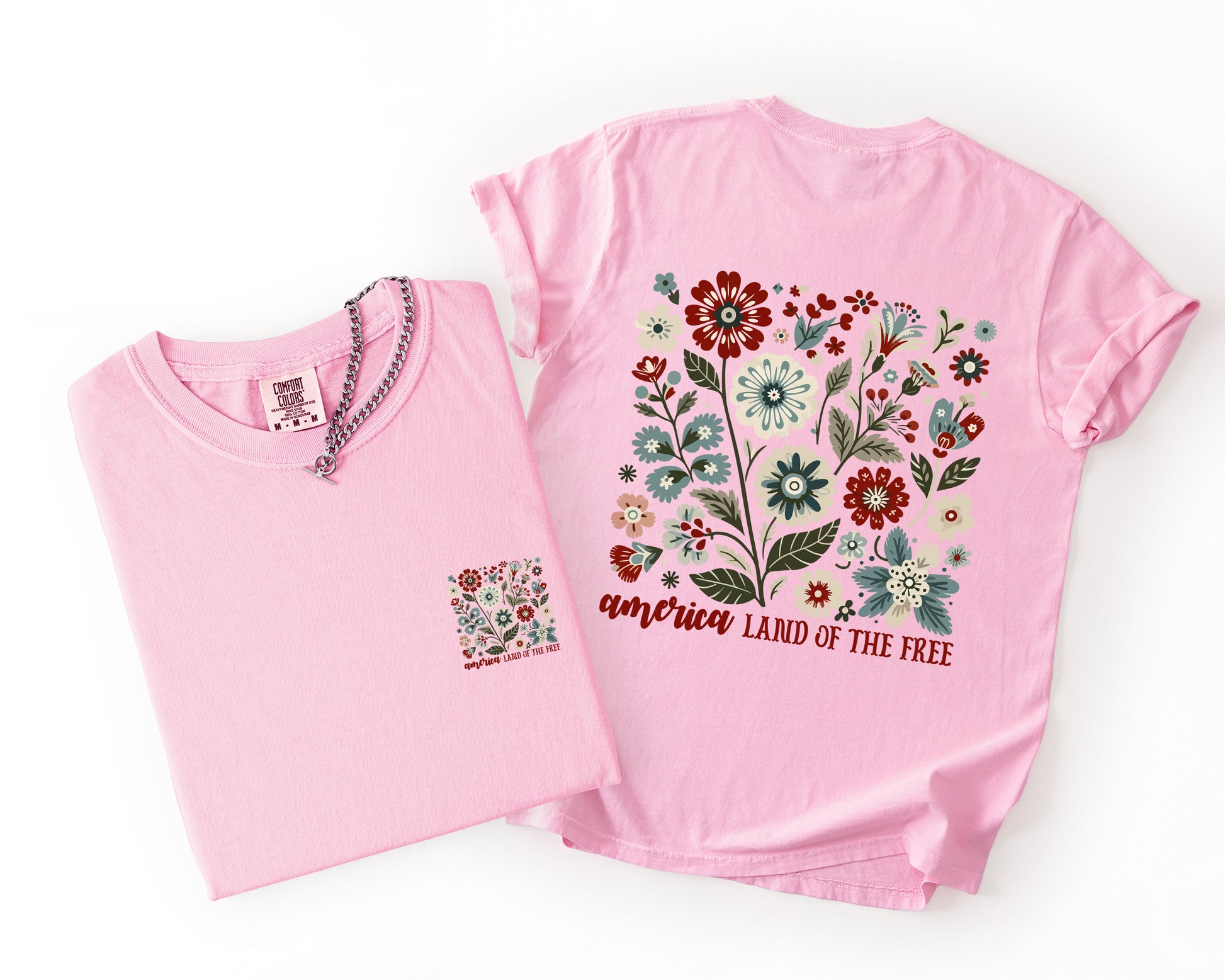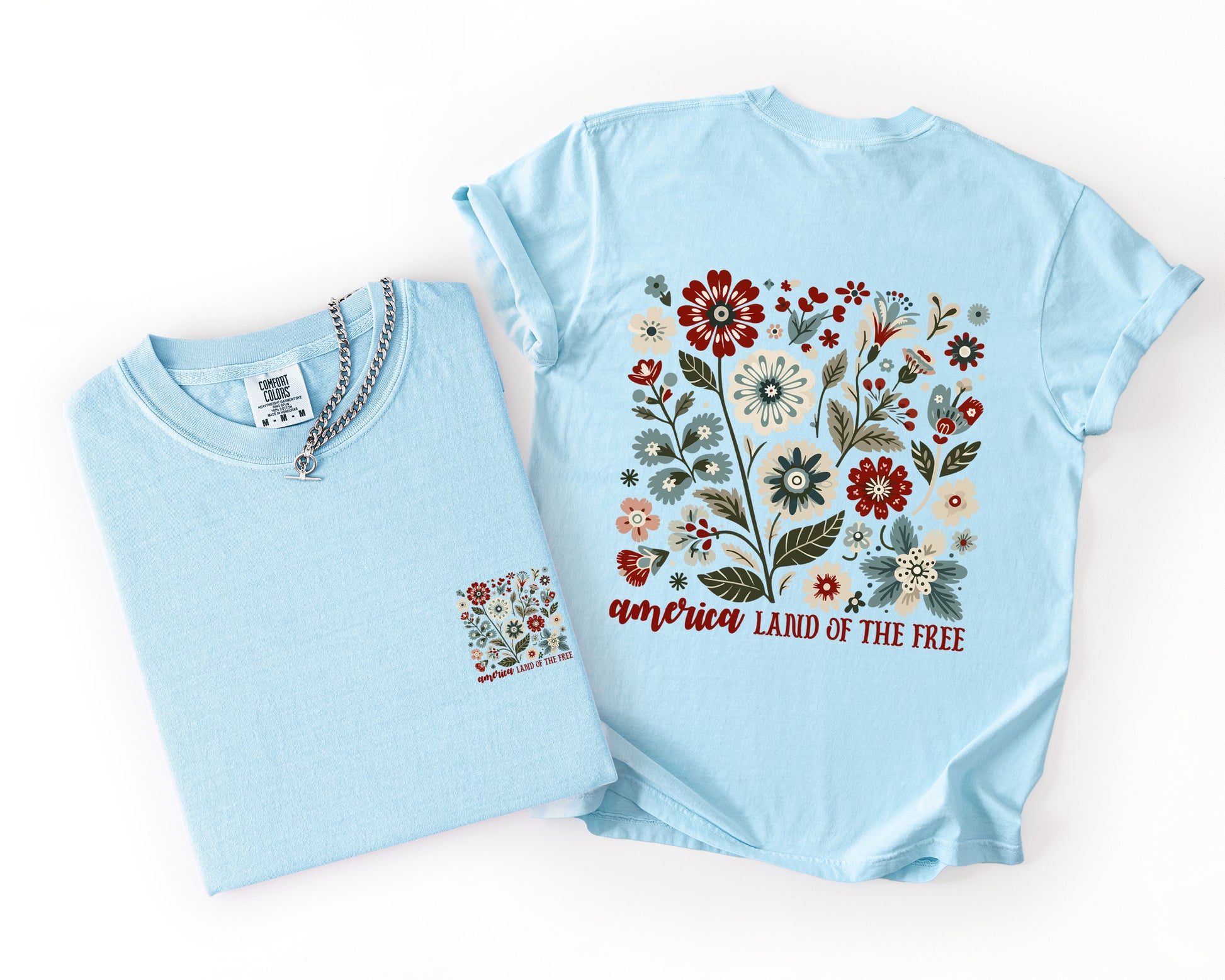 America Land of the Free, Floral, USA, 4th of July Comfort Colors T-Shirt