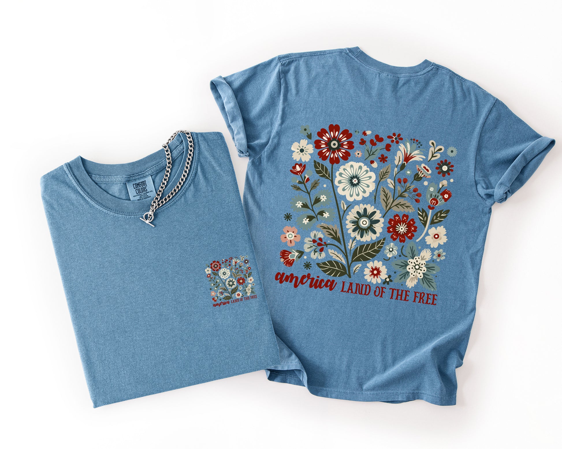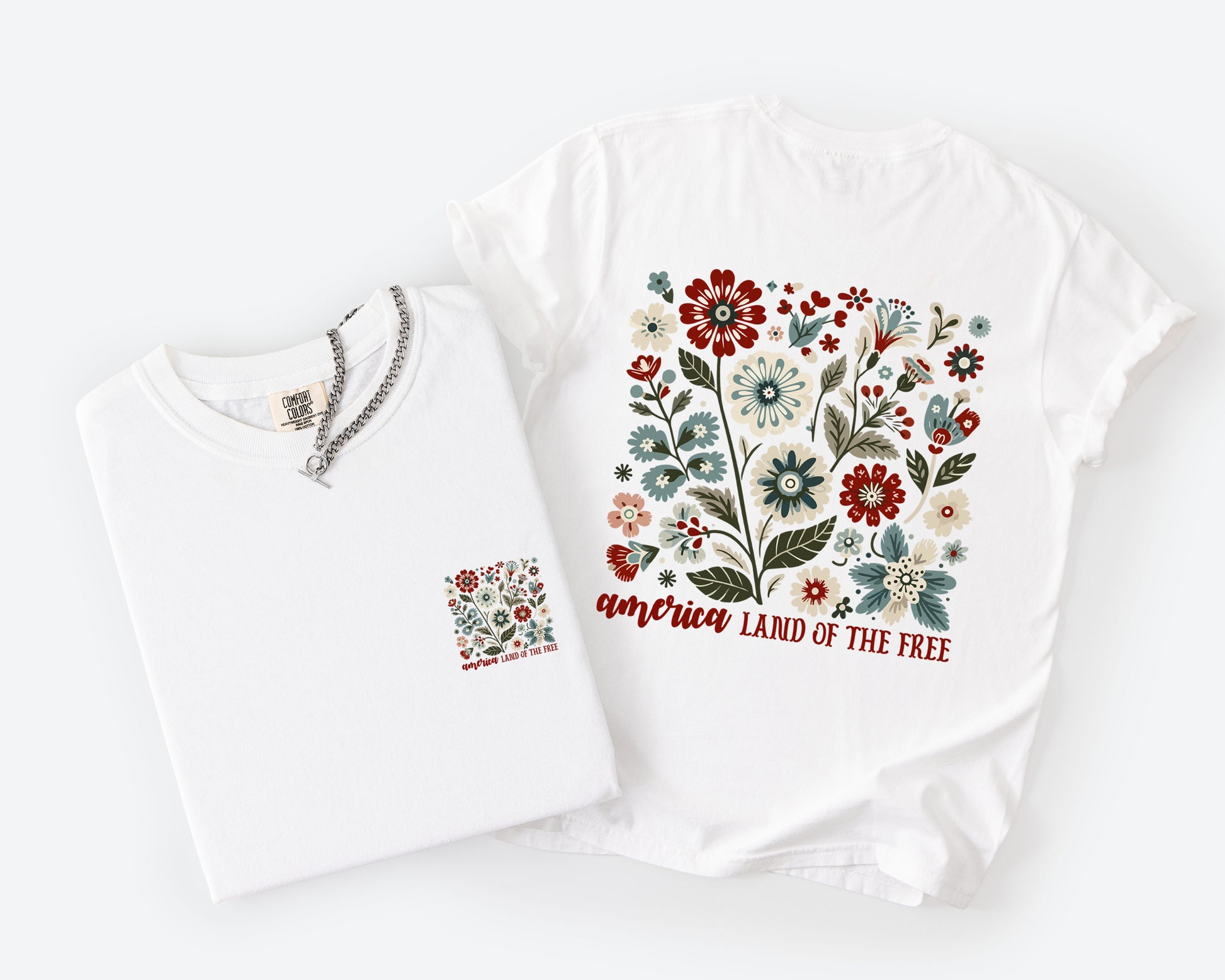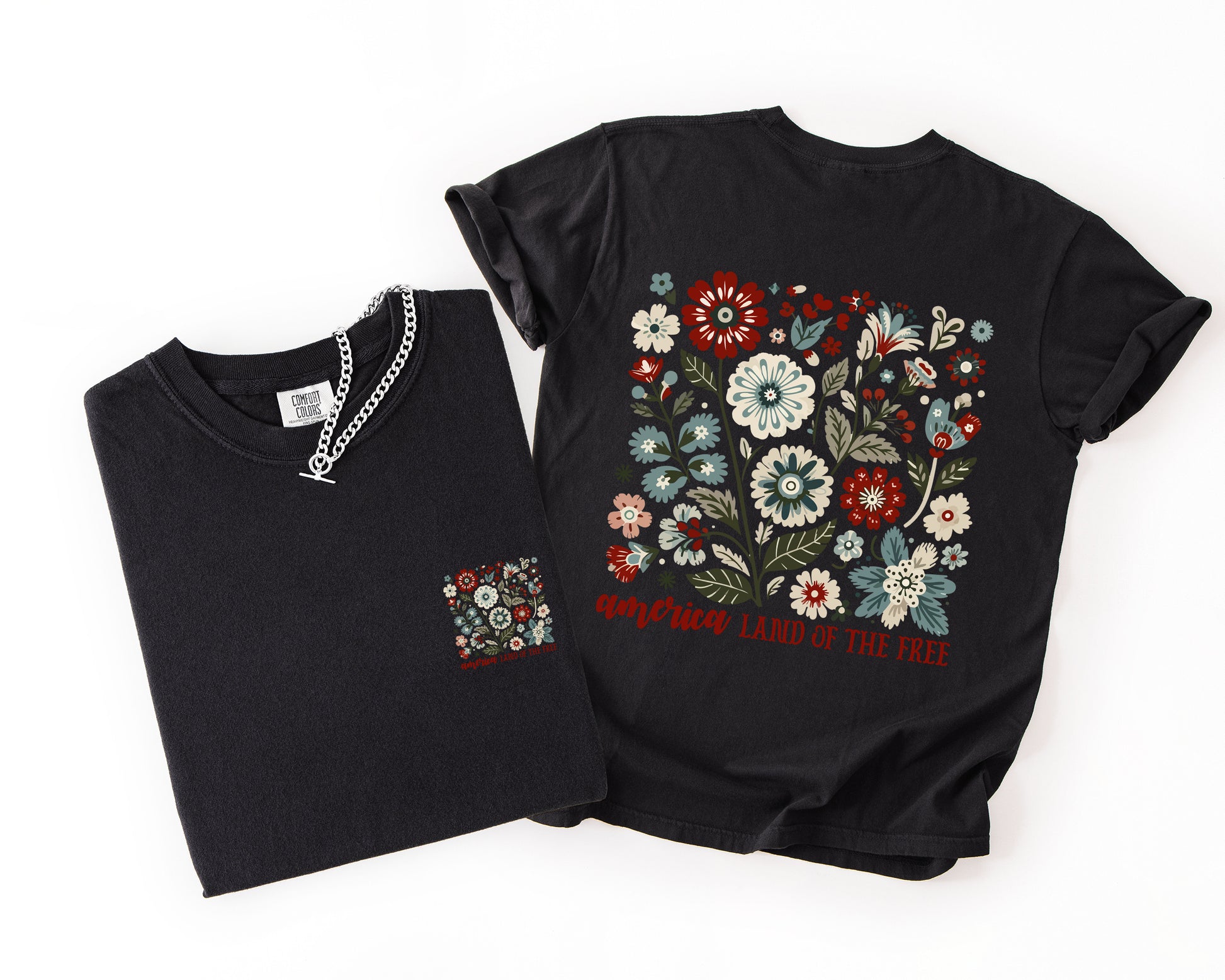 America Land of the Free, Floral, USA, 4th of July Comfort Colors T-Shirt