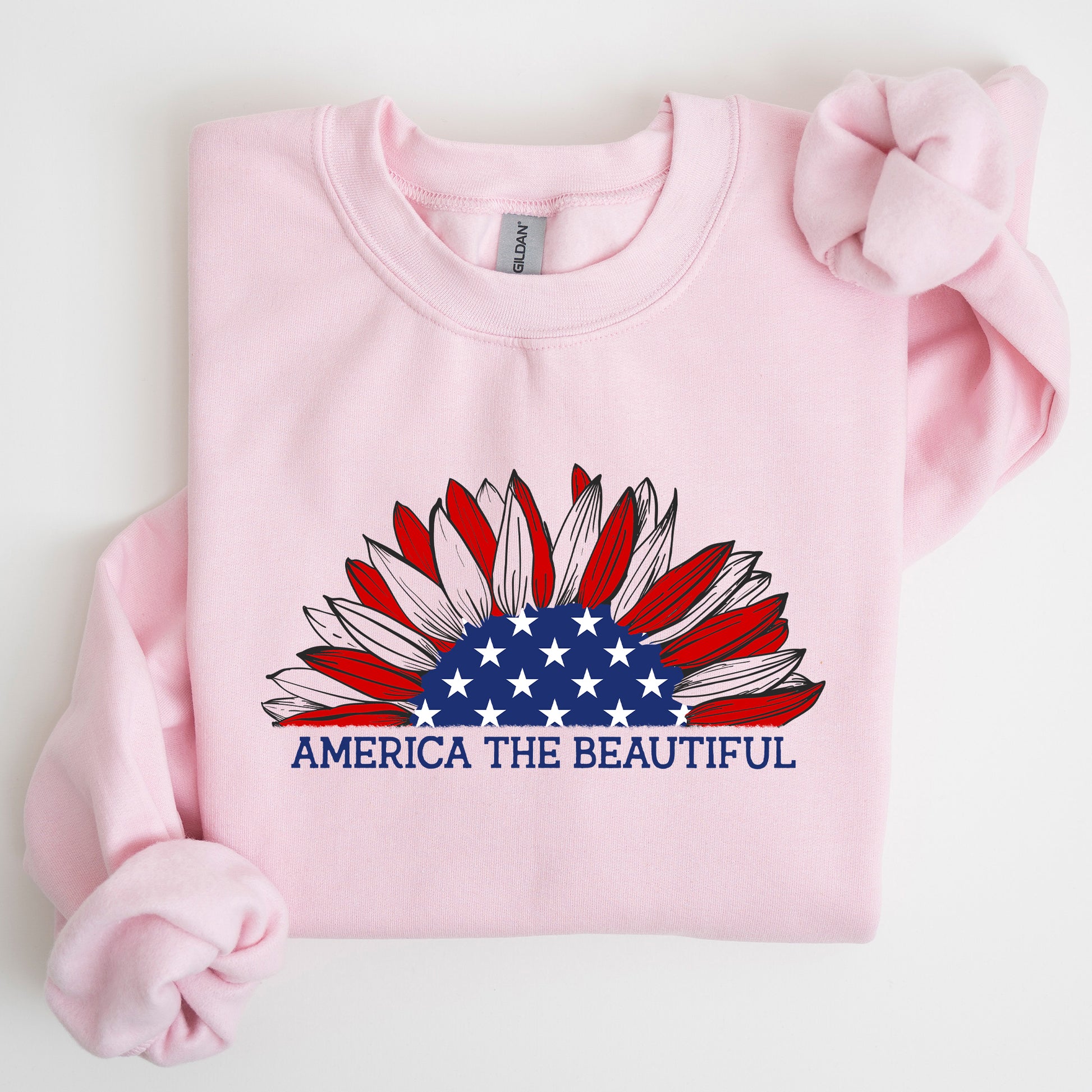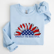 Experience the essence of patriotism with our America The Beautiful, Sunflower, Red White Blue Sweatshirt. This stylish and cozy sweatshirt is designed for those who appreciate comfort without compromising on style. Perfect for any occasion, it features a stunning sunflower graphic that embodies the spirit of America in vibrant red, white, and blue hues.
