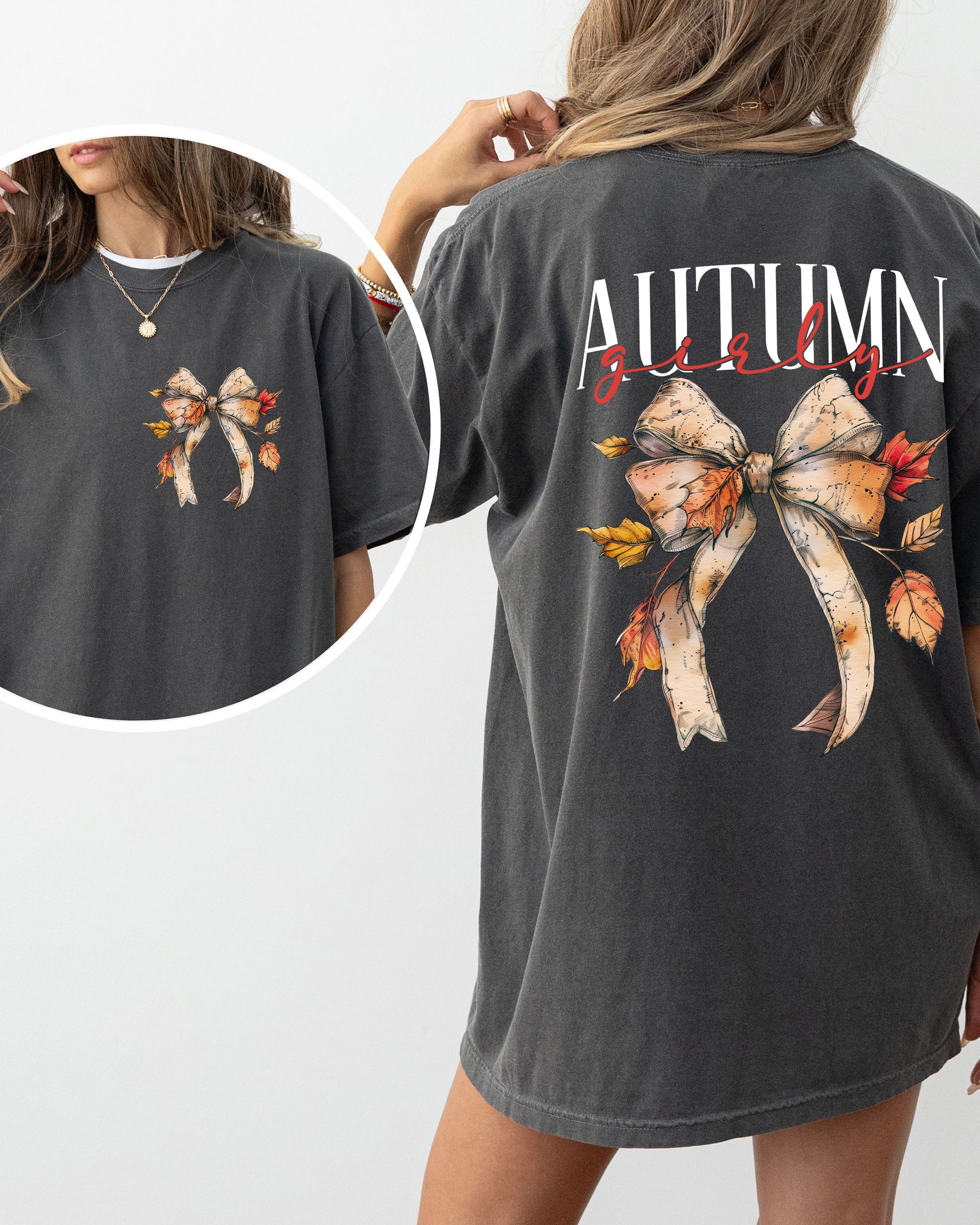Autumn Girly, Fall, Leaves, Foliage, Pumpkin Spice Latte, Coffee, Thanksgiving Shirt Comfort Colors T-Shirt