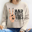 The Bad Witch Vibes Halloween Sweatshirt pairs effortlessly with jeans for a relaxed yet trendy look. It can also be layered over shirts for added style, making it suitable for both casual outings and cozy nights in. Make this sweatshirt your go-to choice for Halloween festivities or a comfortable day at home!