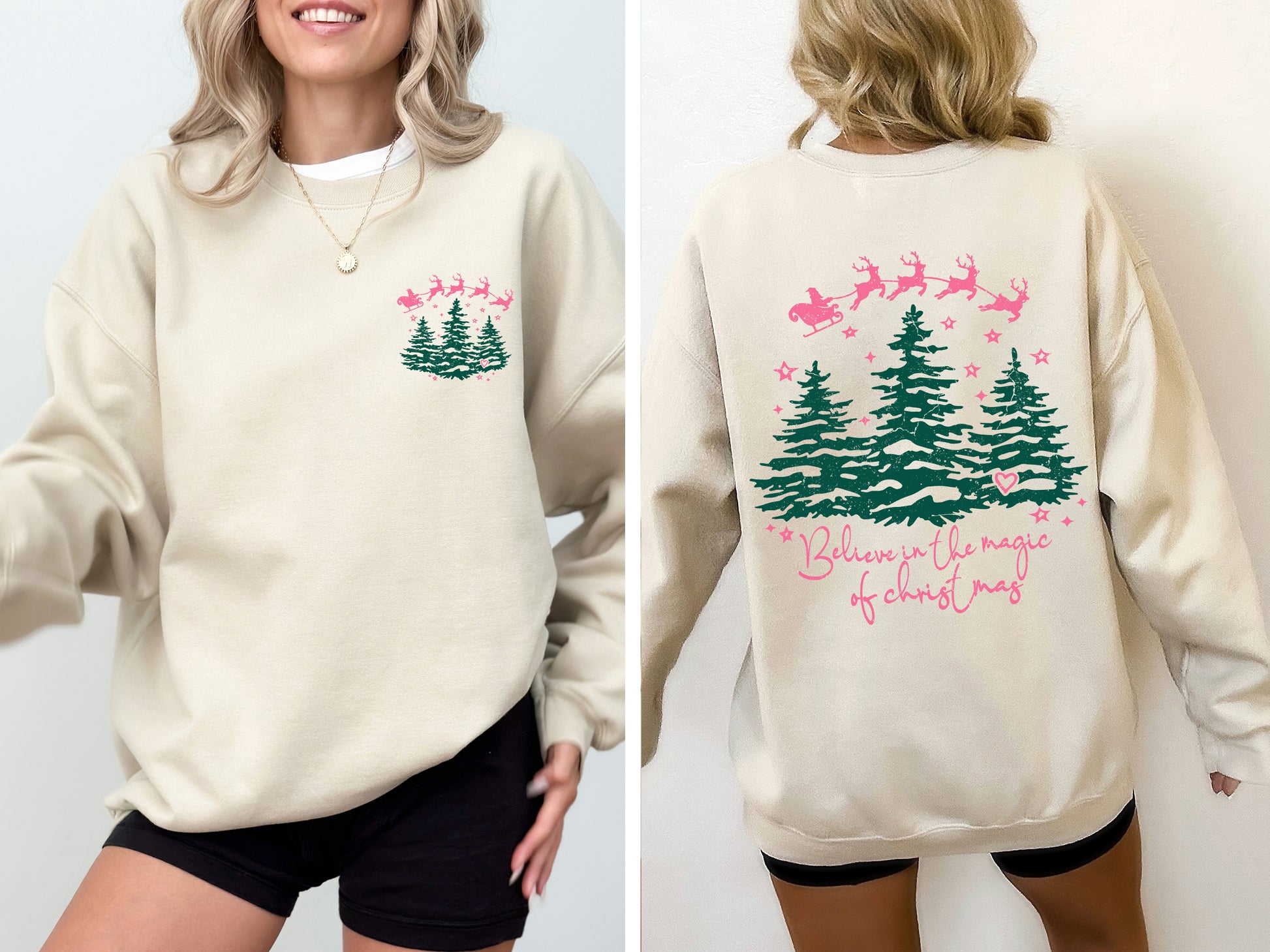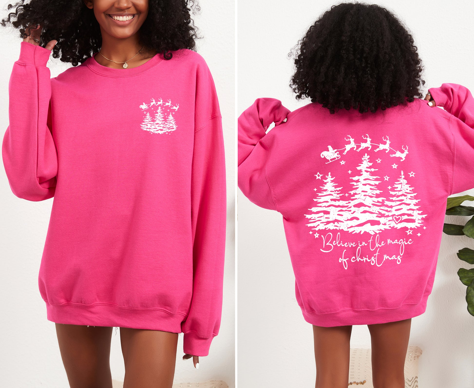 Believe In The Magic Of Christmas, Santa, Front and Back, Christmas Trees, Winter, Snow, Xmas Sweatshirt