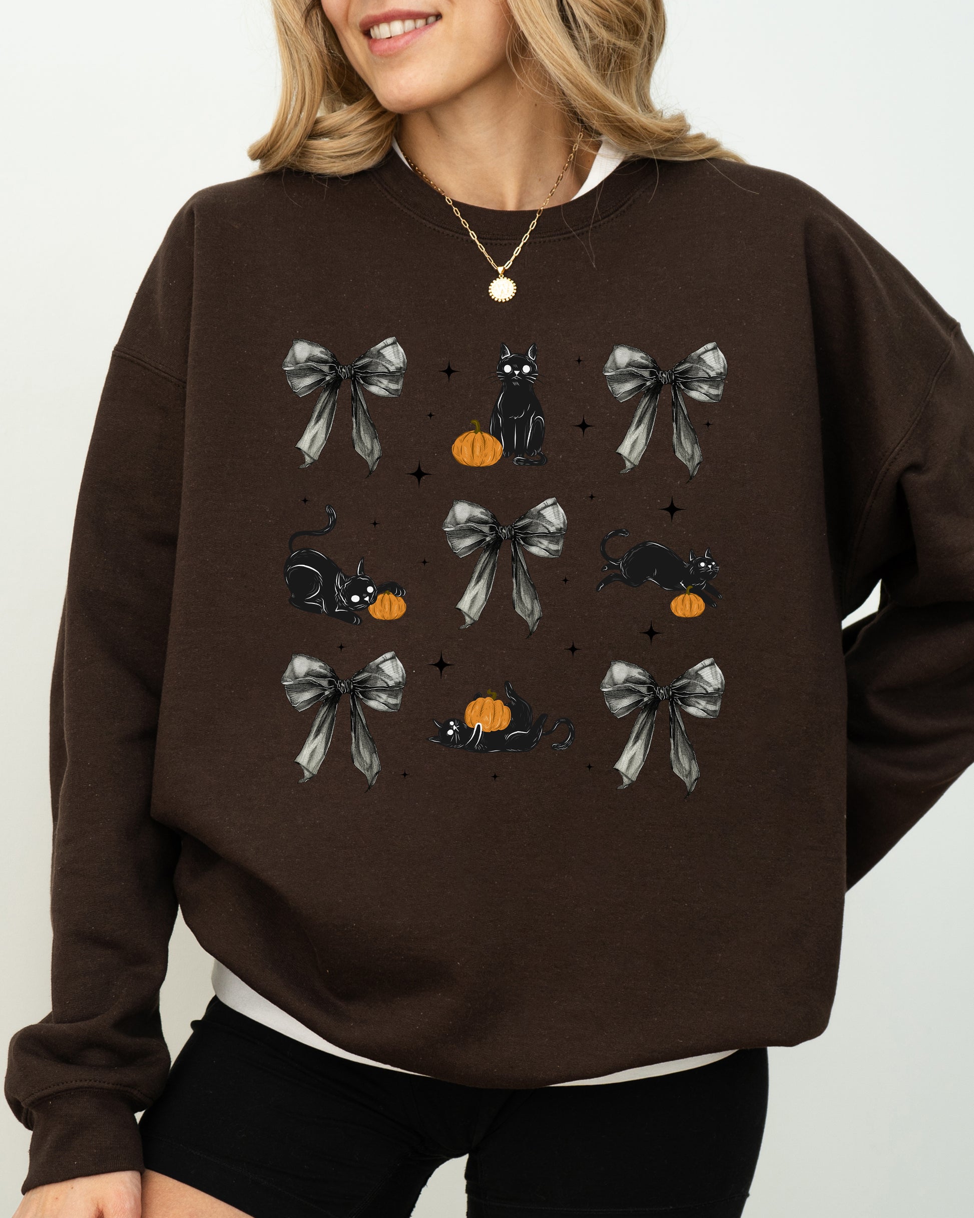 Embrace the spirit of Halloween and the charm of autumn with our Black Cat, Coquette Ribbons and Bows, Halloween, Cute, Girly, Autumn, Fall Sweatshirt—your new go-to for cozy, stylish days!