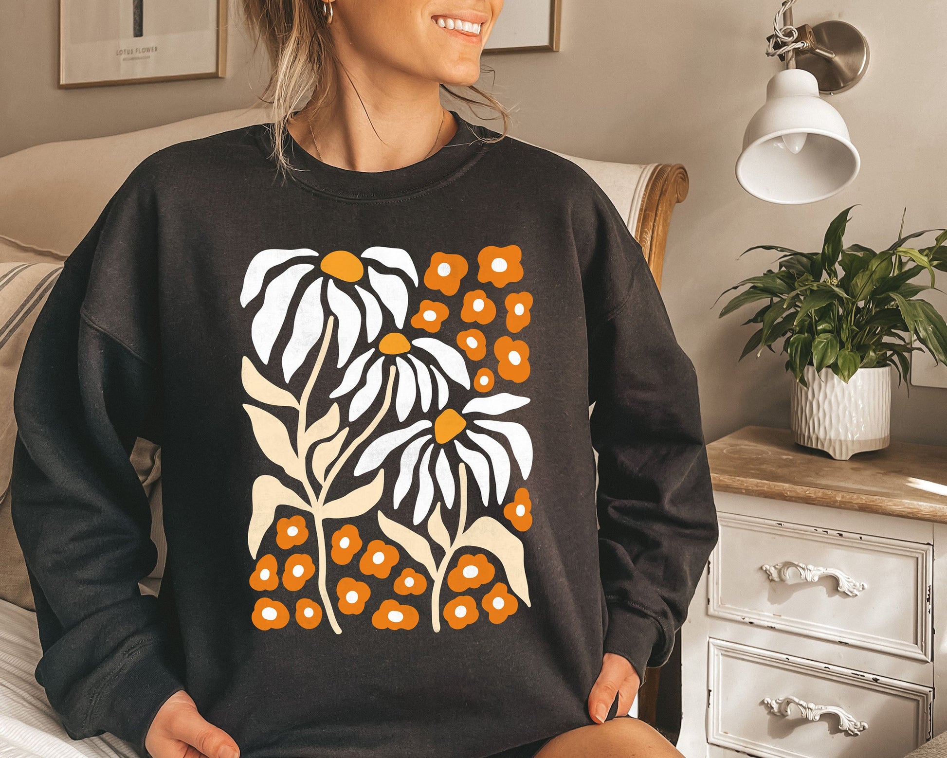 Boho Botanical Daisy Art Nouveau Floral Sweatshirt
