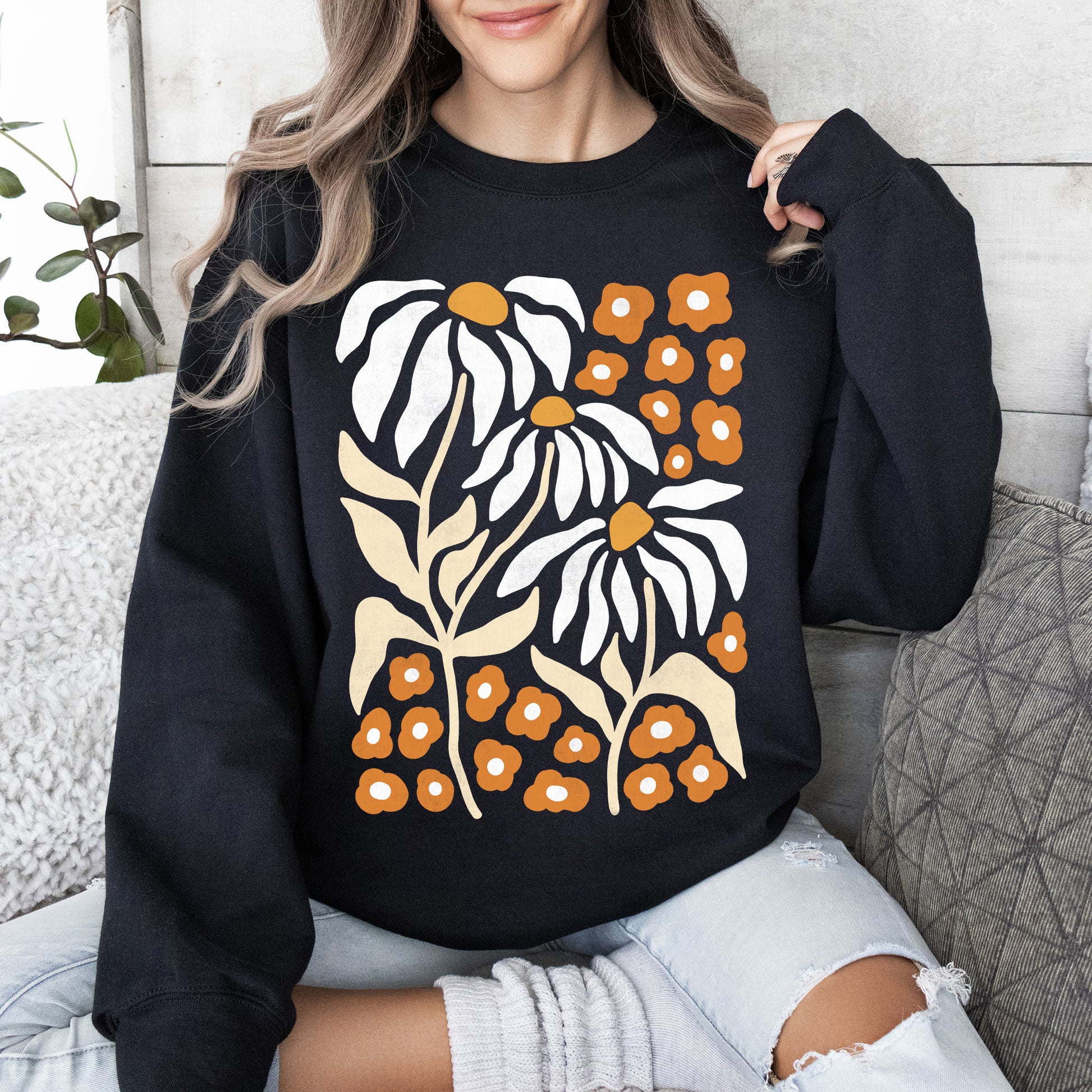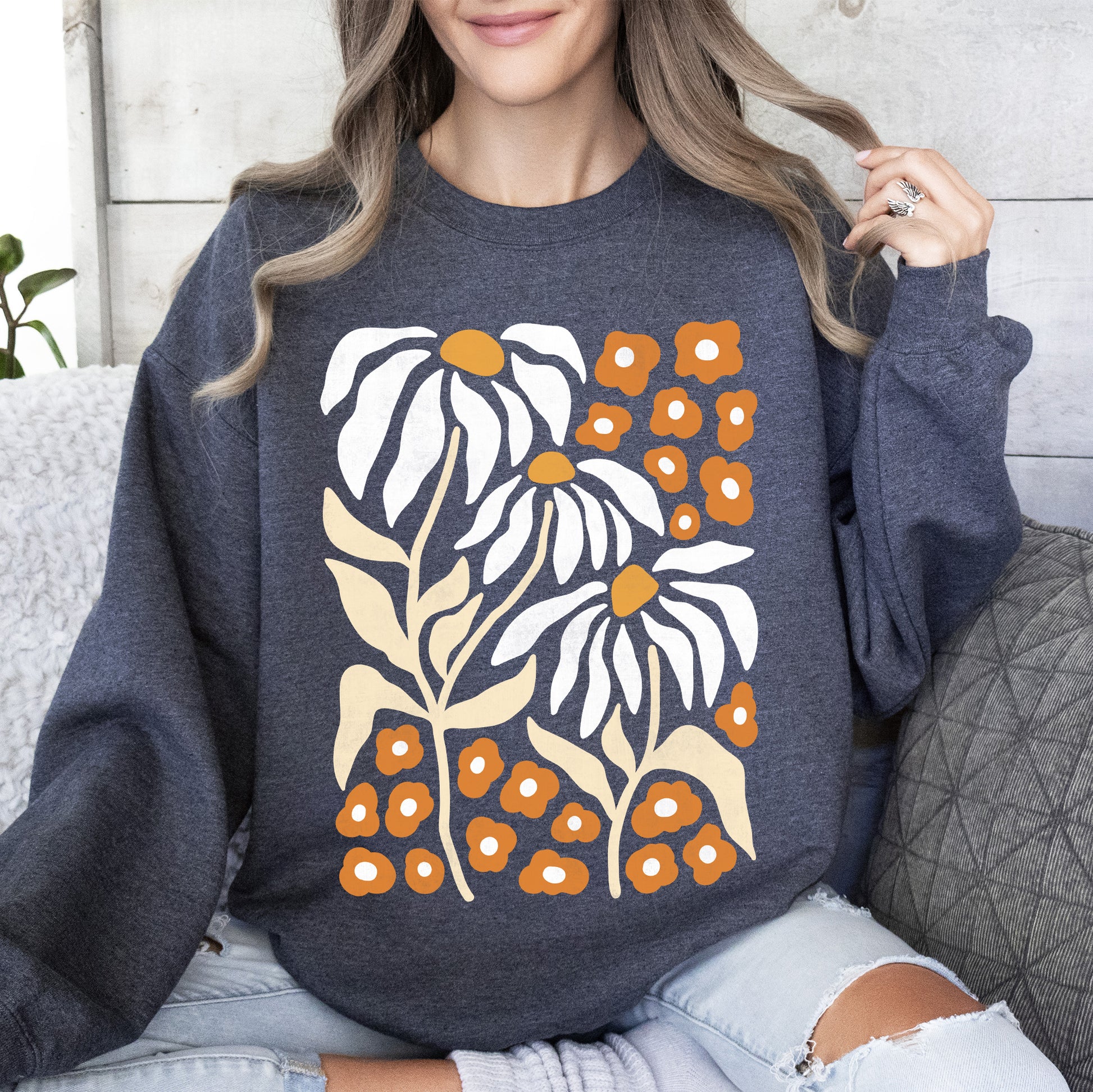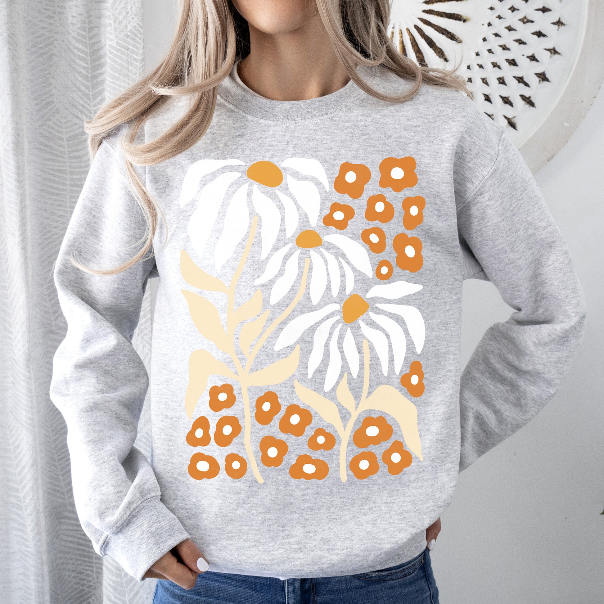Embrace the vibrant spirit of the Boho Daisies, Boho Retro Floral Design Sweatshirt – a perfect blend of comfort and style. This sweatshirt is not just a cozy piece for your wardrobe; it's a statement of individuality and artistic flair. Designed for those who appreciate unique graphic designs, this sweatshirt stands out with its charming floral aesthetics that capture the essence of bohemian beauty.