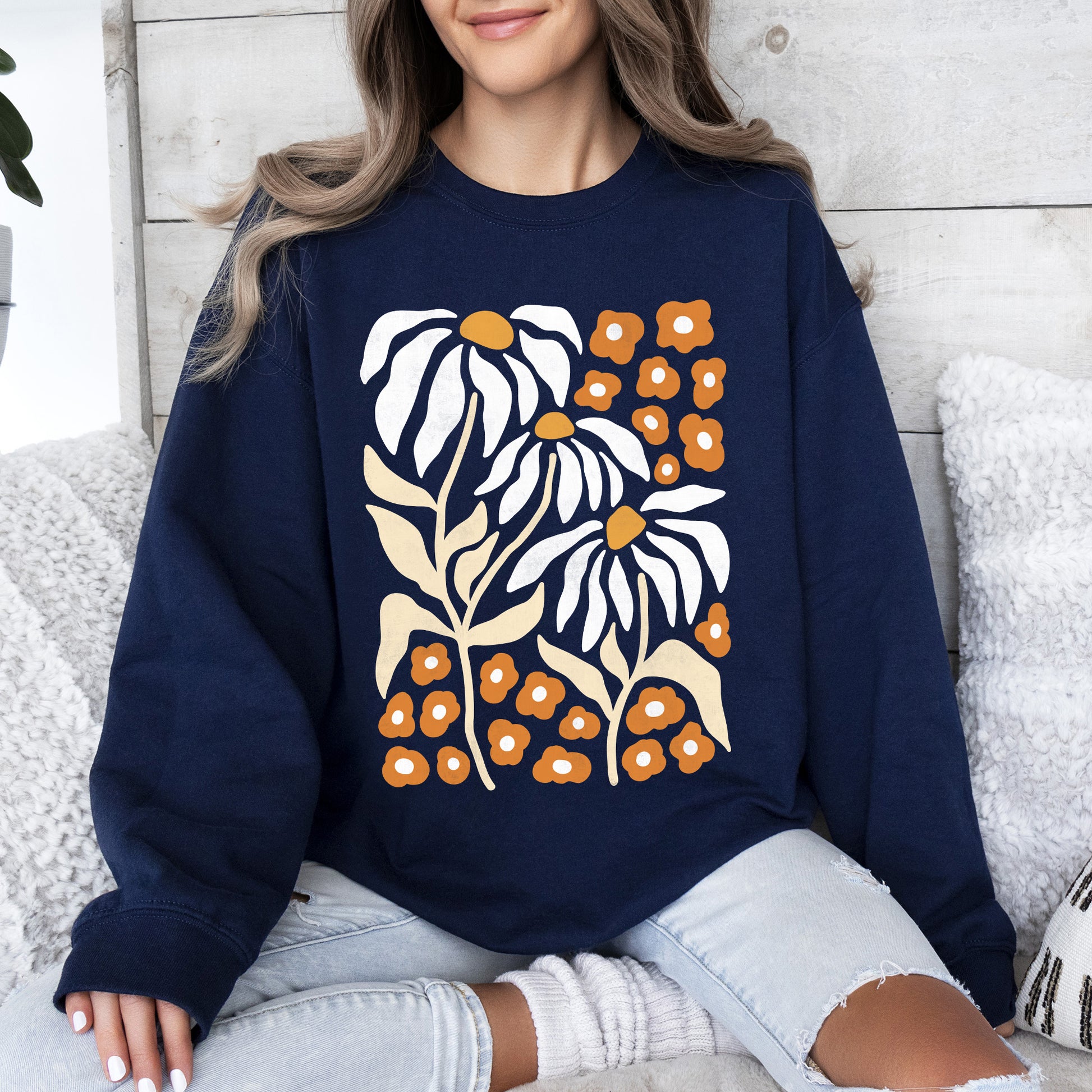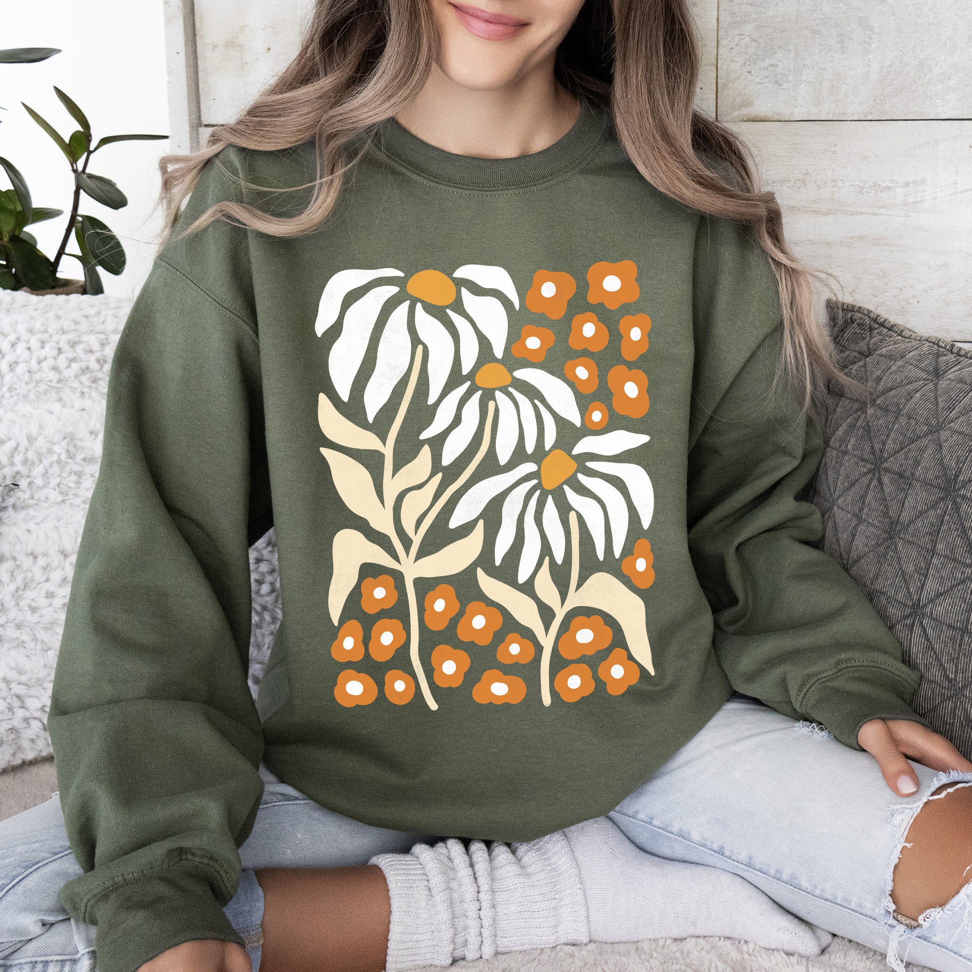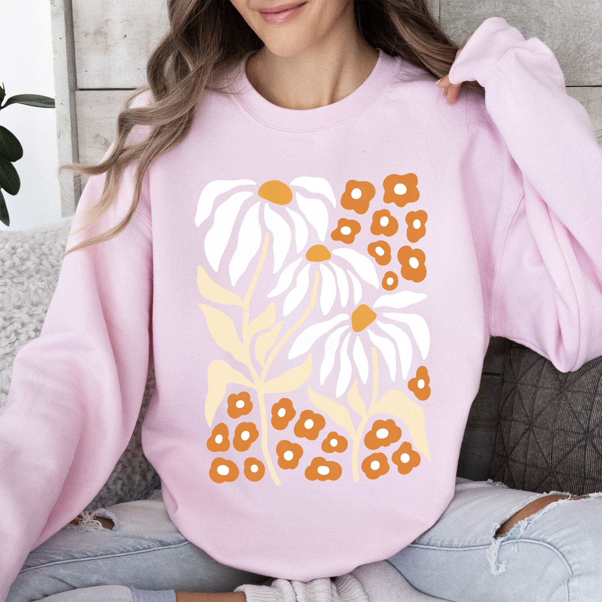 Embrace the vibrant spirit of the Boho Daisies, Boho Retro Floral Design Sweatshirt – a perfect blend of comfort and style. This sweatshirt is not just a cozy piece for your wardrobe; it's a statement of individuality and artistic flair. Designed for those who appreciate unique graphic designs, this sweatshirt stands out with its charming floral aesthetics that capture the essence of bohemian beauty.