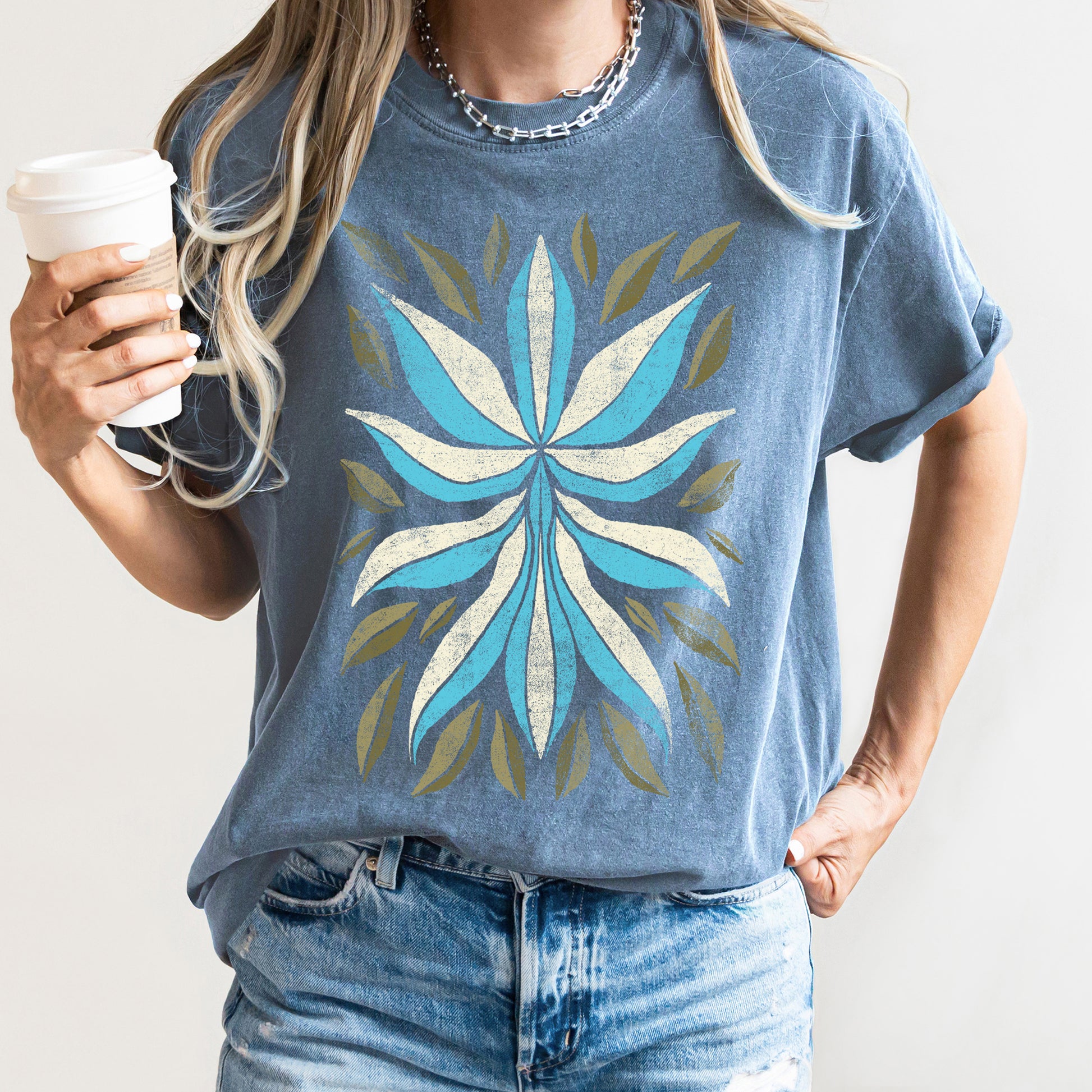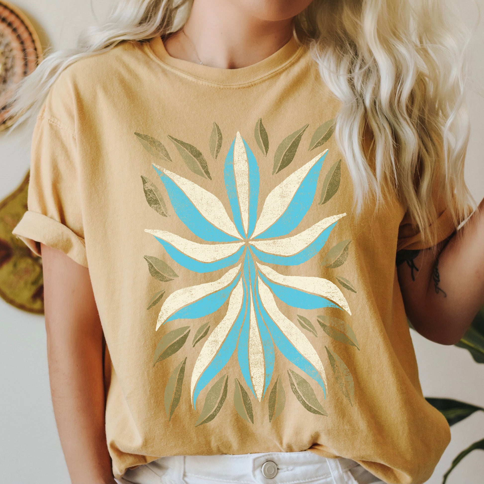 Boho Folk Art Flower and Leaves Comfort Colors Tshirt