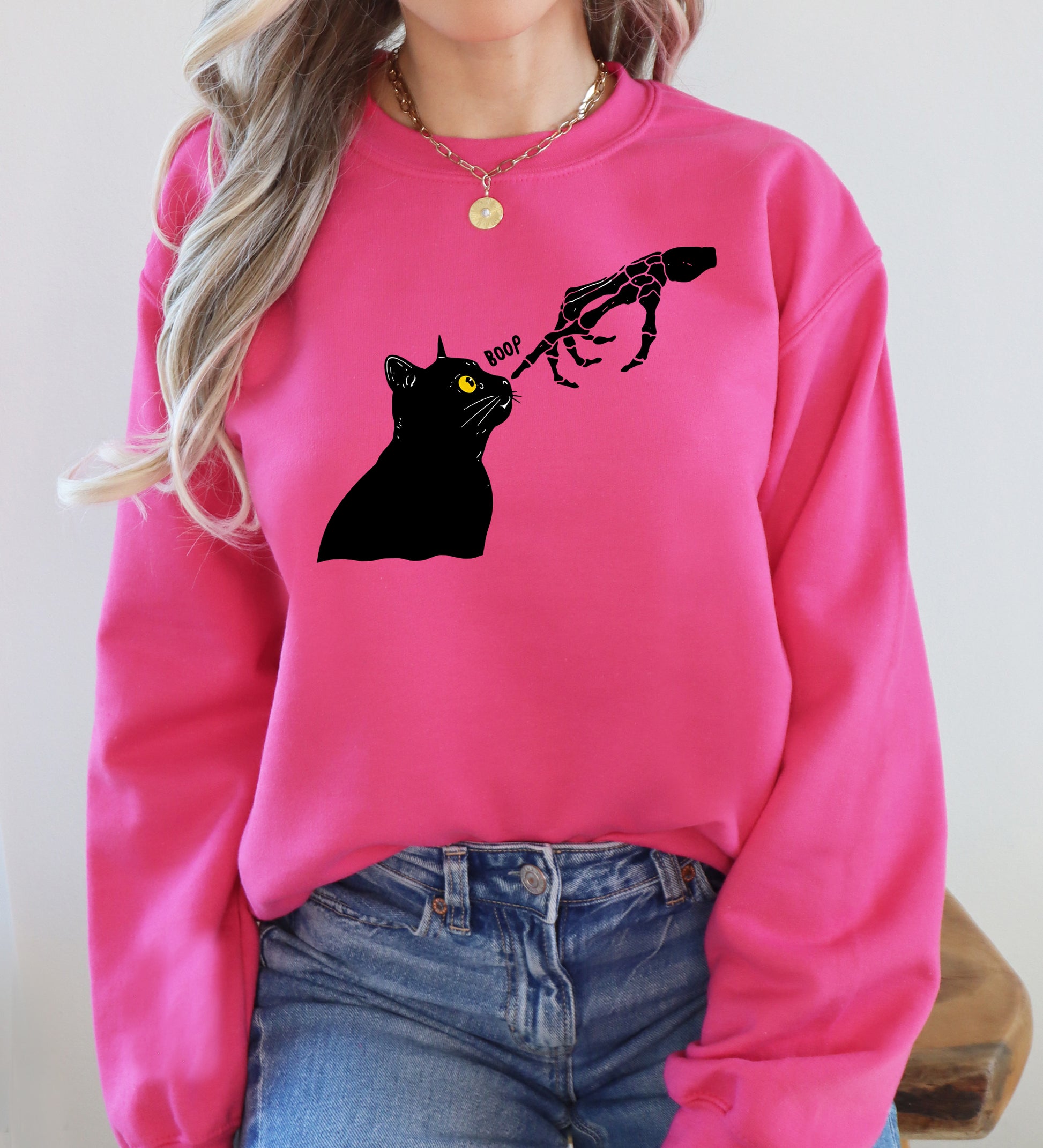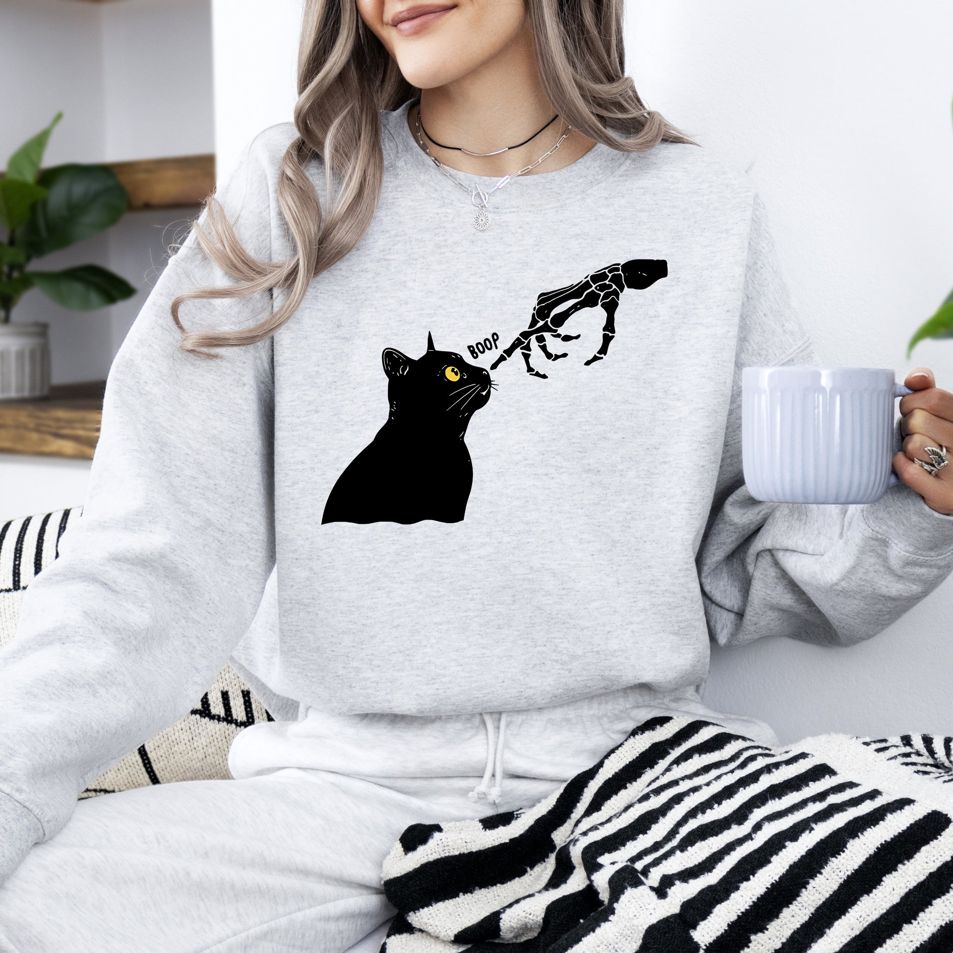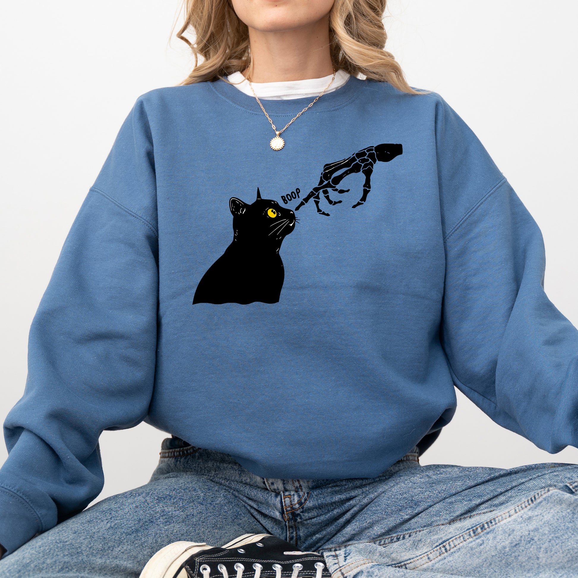 Boop Cat, Skeleton, Funny, Ghost, Halloween, Western, Vintage, Pumpkin, Retro, Spooky, Costume, Fall, Graphic Sweatshirt