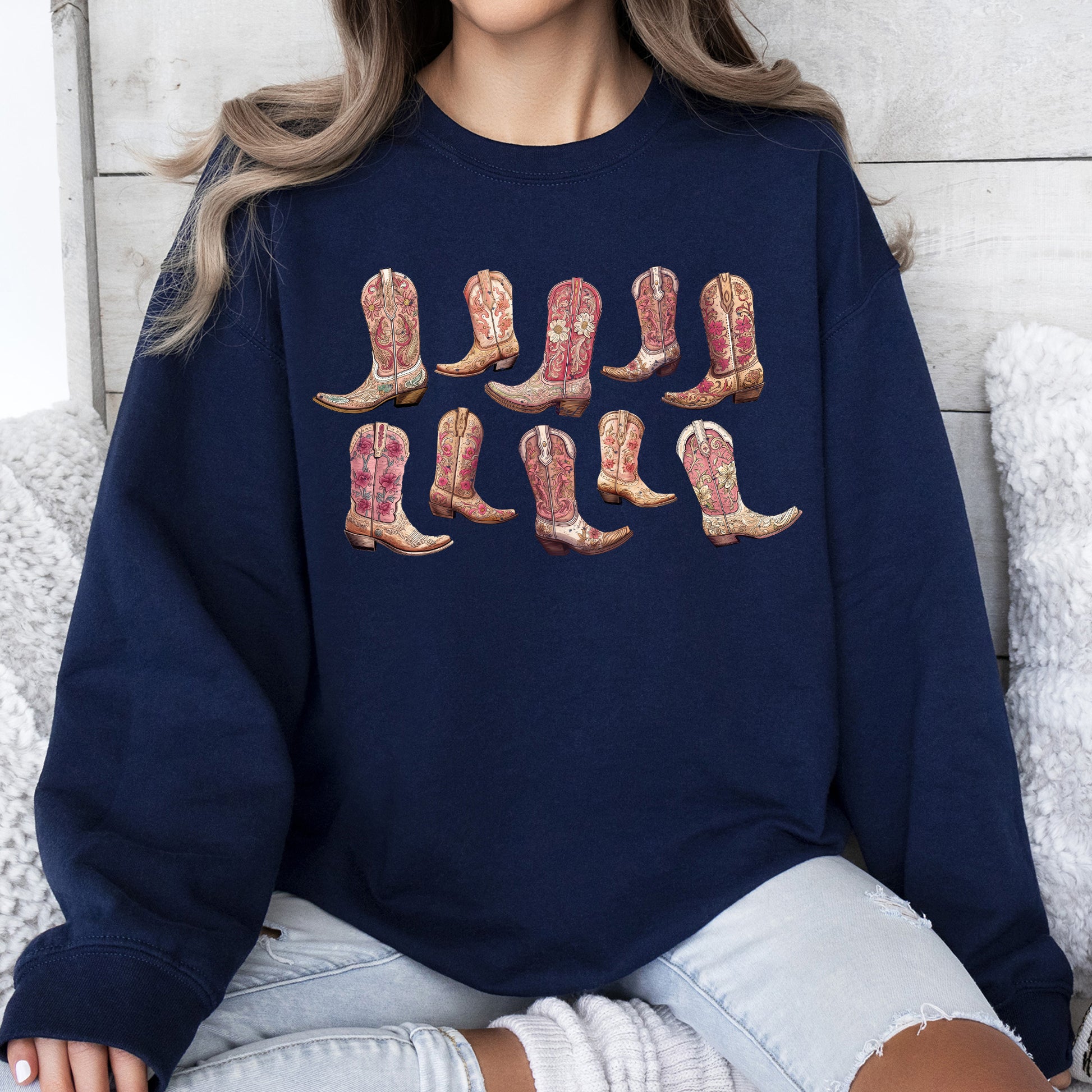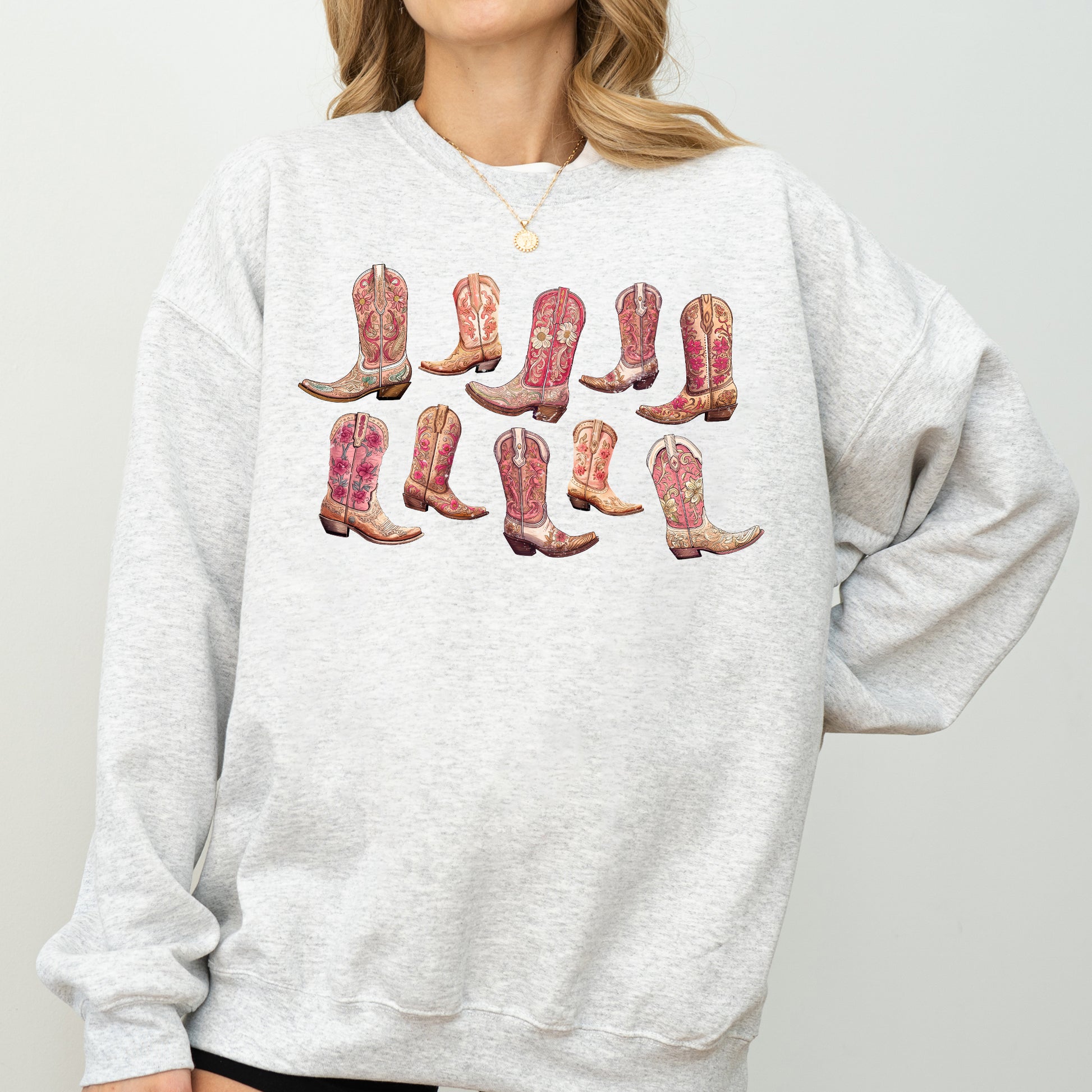 Colorful Pink Cowboy Boots, Western, Cowgirl, Sweatshirt