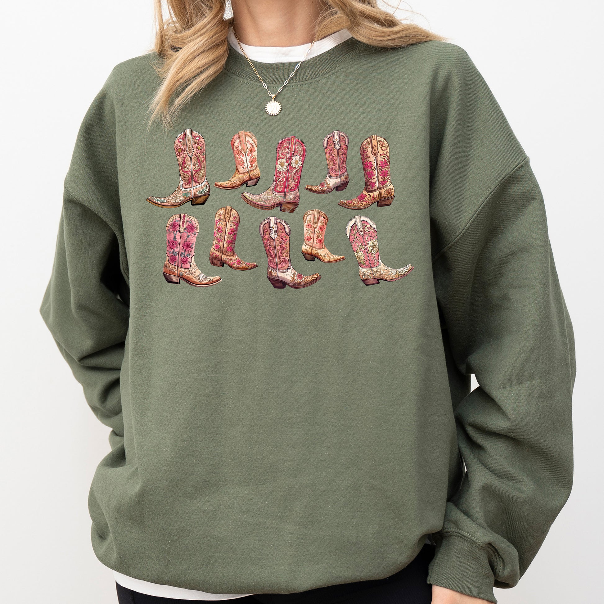 Step into style with our Colorful Pink Cowboy Boots, Western, Cowgirl, Sweatshirt, where the spirit of the Wild West meets modern comfort. This striking sweatshirt is designed for those who want to showcase their unique personality while staying cozy. With a soft fleece interior, this piece ensures that you’ll feel as good as you look, whether you're out on the town or lounging at home.