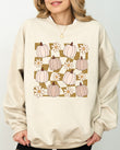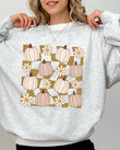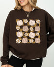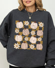 Checkered Pumpkins, Daisies, Flowers, Cute, Retro, Hippie, Positivity, Halloween, Autumn, Fall Sweatshirt