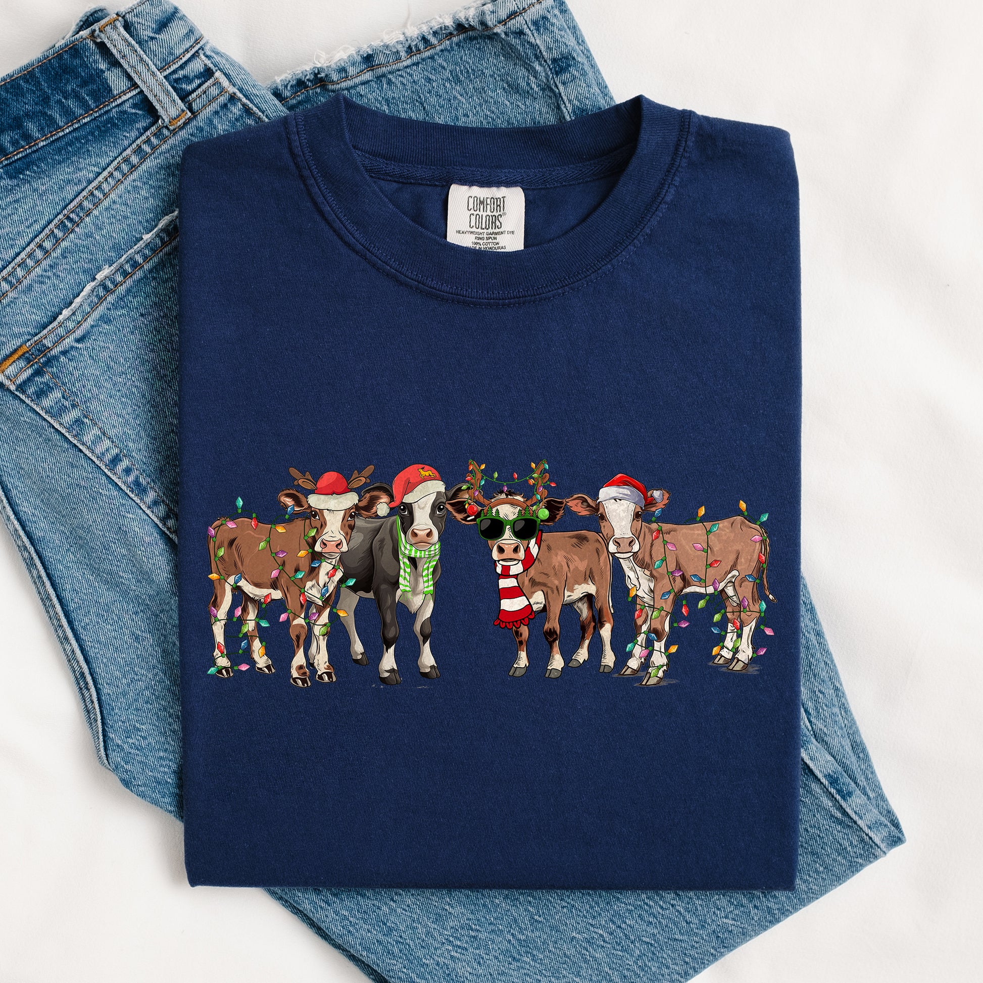 Christmas Calves, Cow Lovers, Santa, Farm Life, Winter, Snow, Xmas Tshirt Comfort Colors T-Shirt