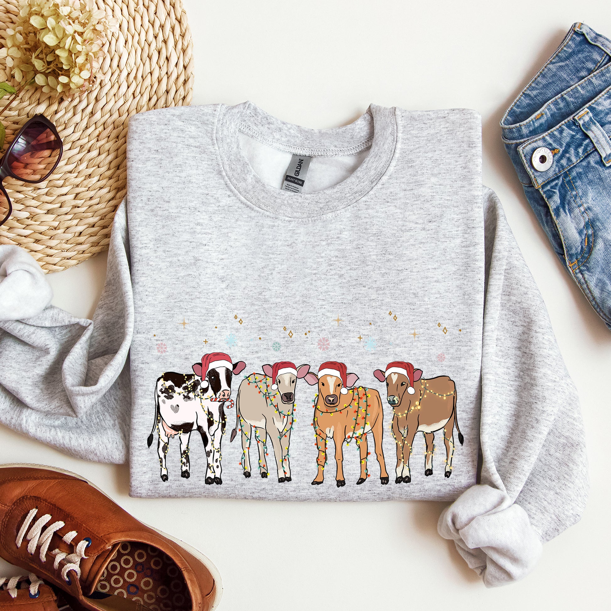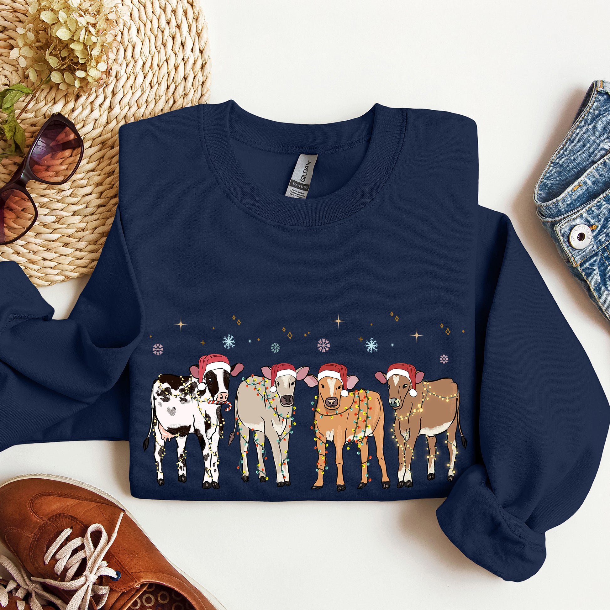 Christmas Calves, Holstein, Cow Lovers, Santa, Farm Life Sweatshirt