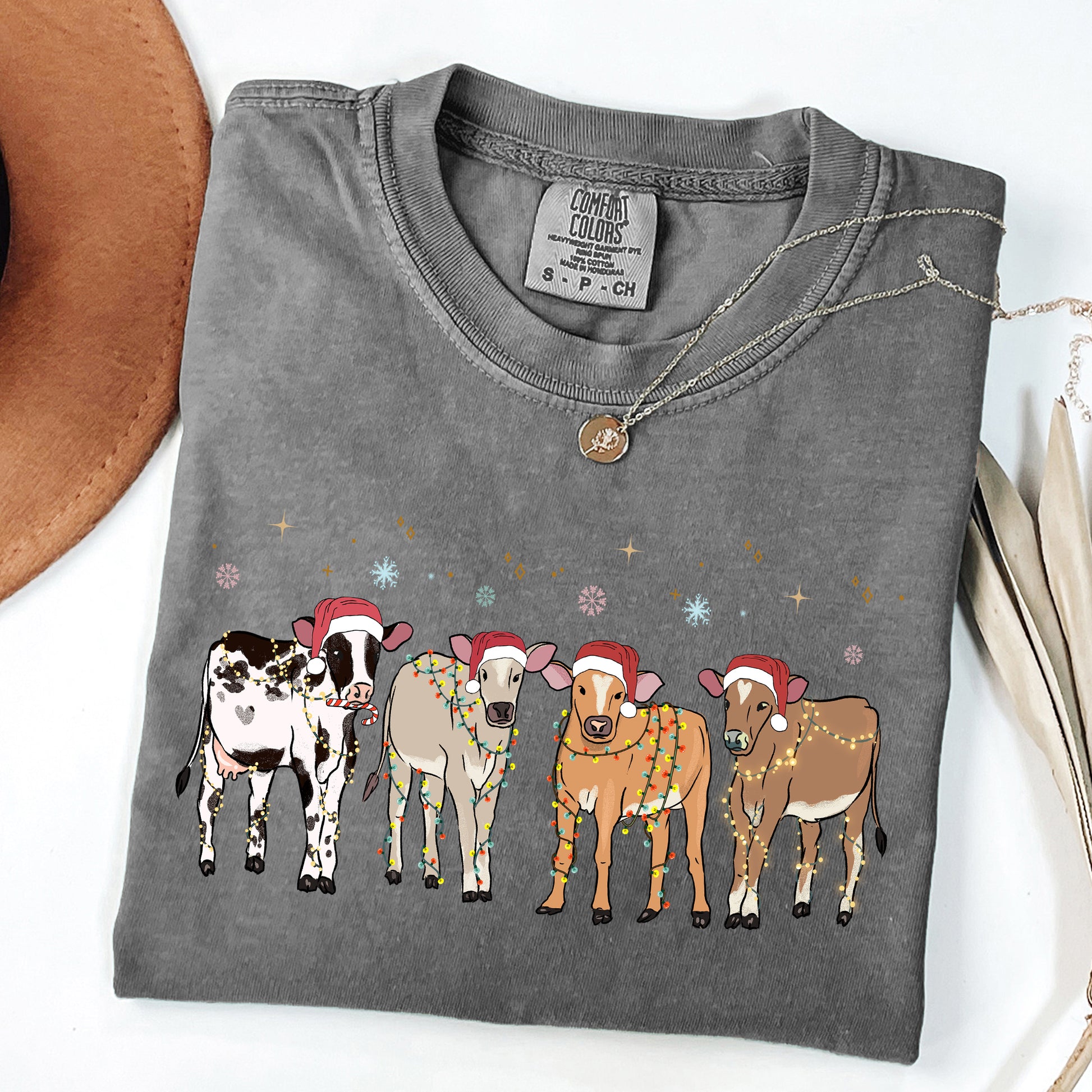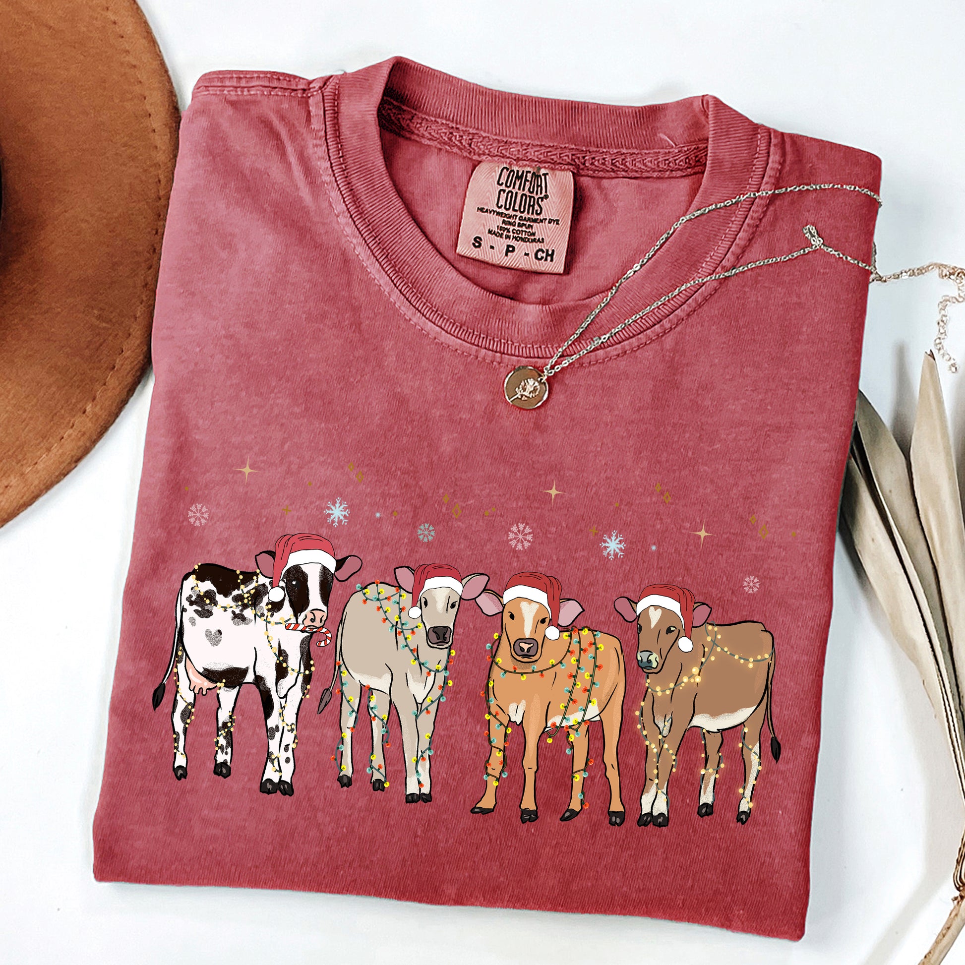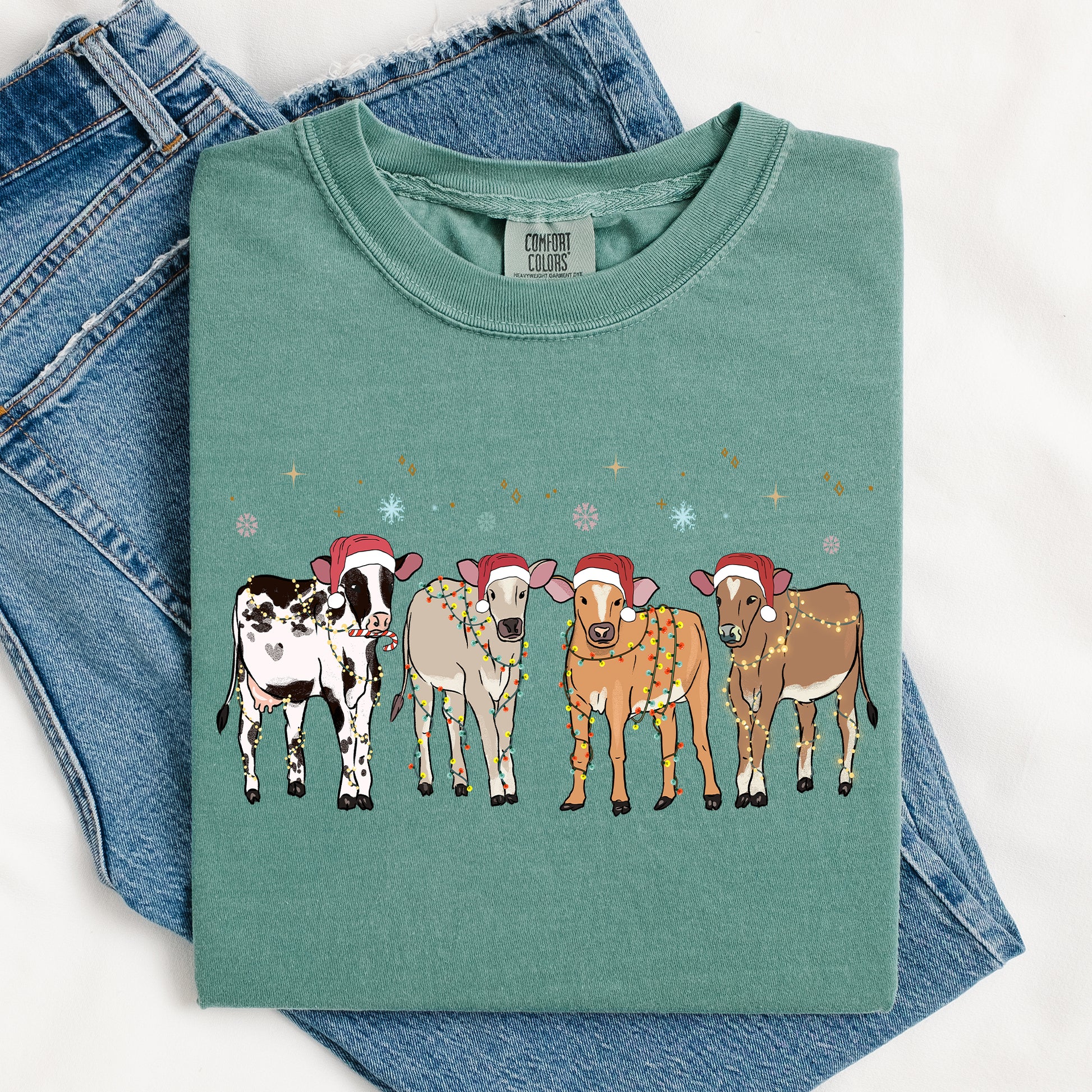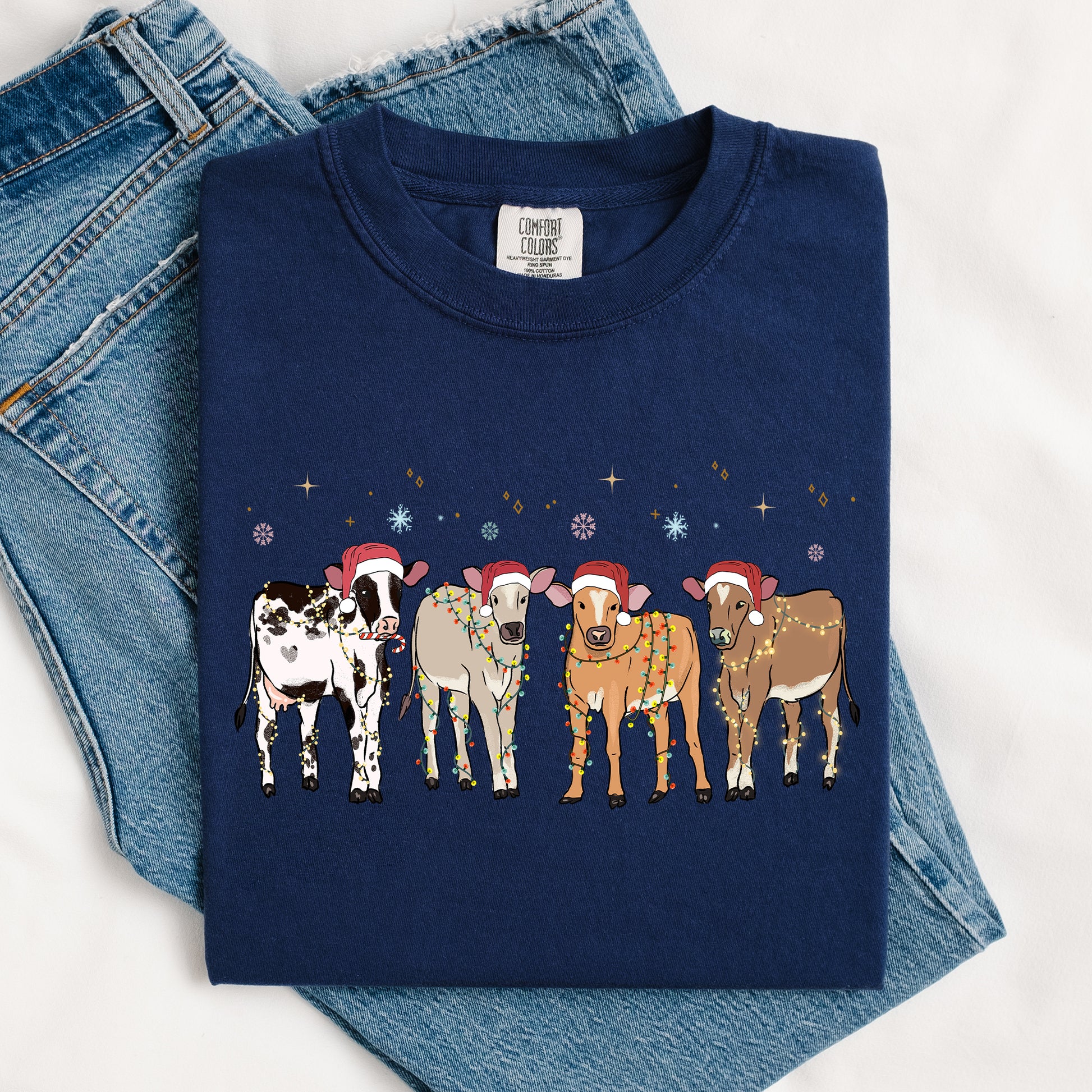 Christmas Calves, Holstein, Cow Lovers, Santa, Farm Life, Winter, Snow, Xmas Tshirt Comfort Colors T-Shirt
