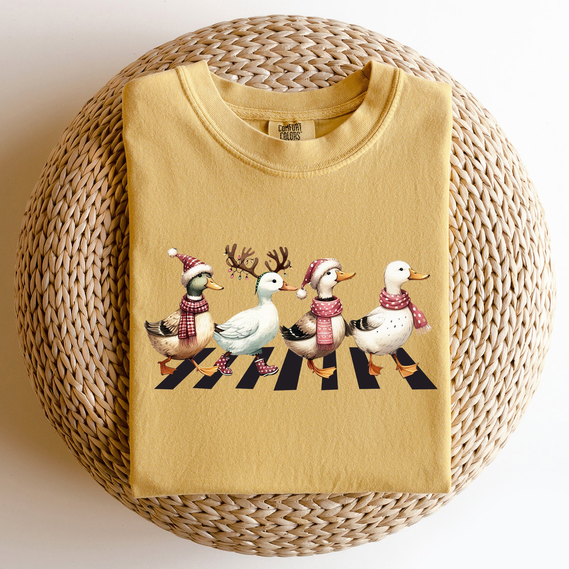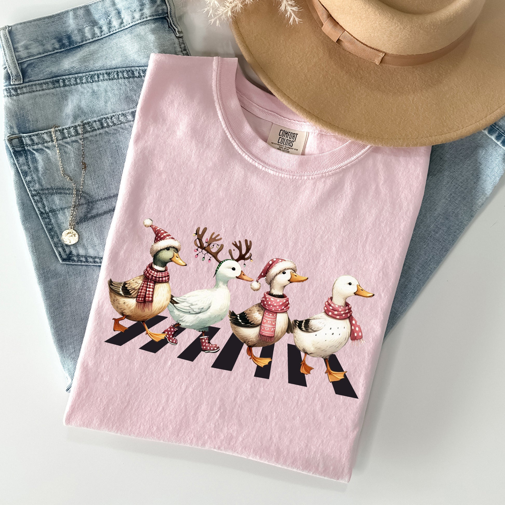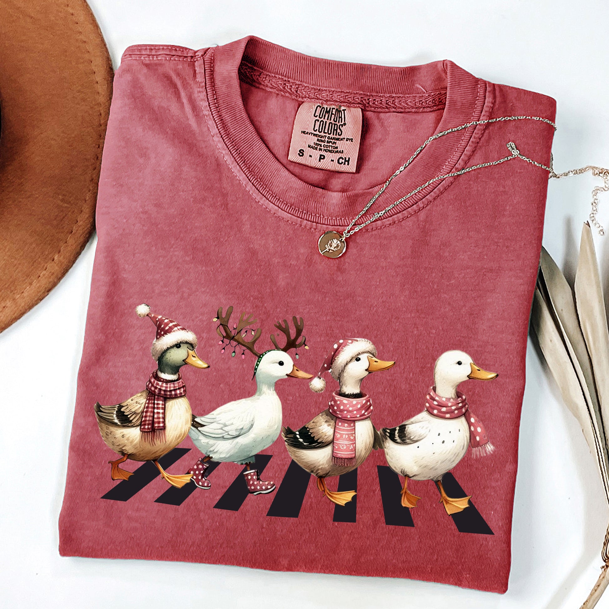 Christmas Ducks, Farm Animals, Crossing Road, Santa, Winter, Snow, Xmas Tshirt Comfort Colors T-Shirt
