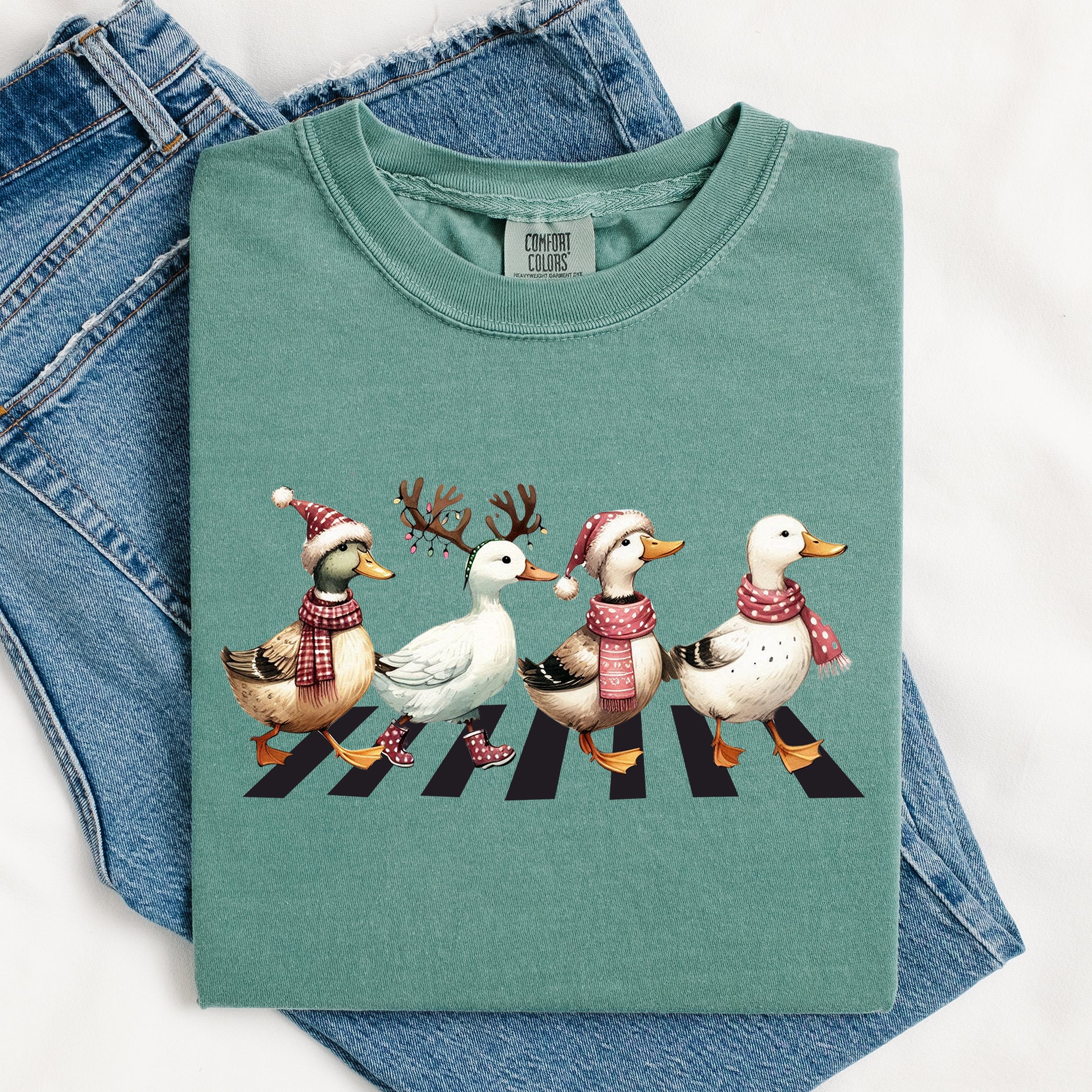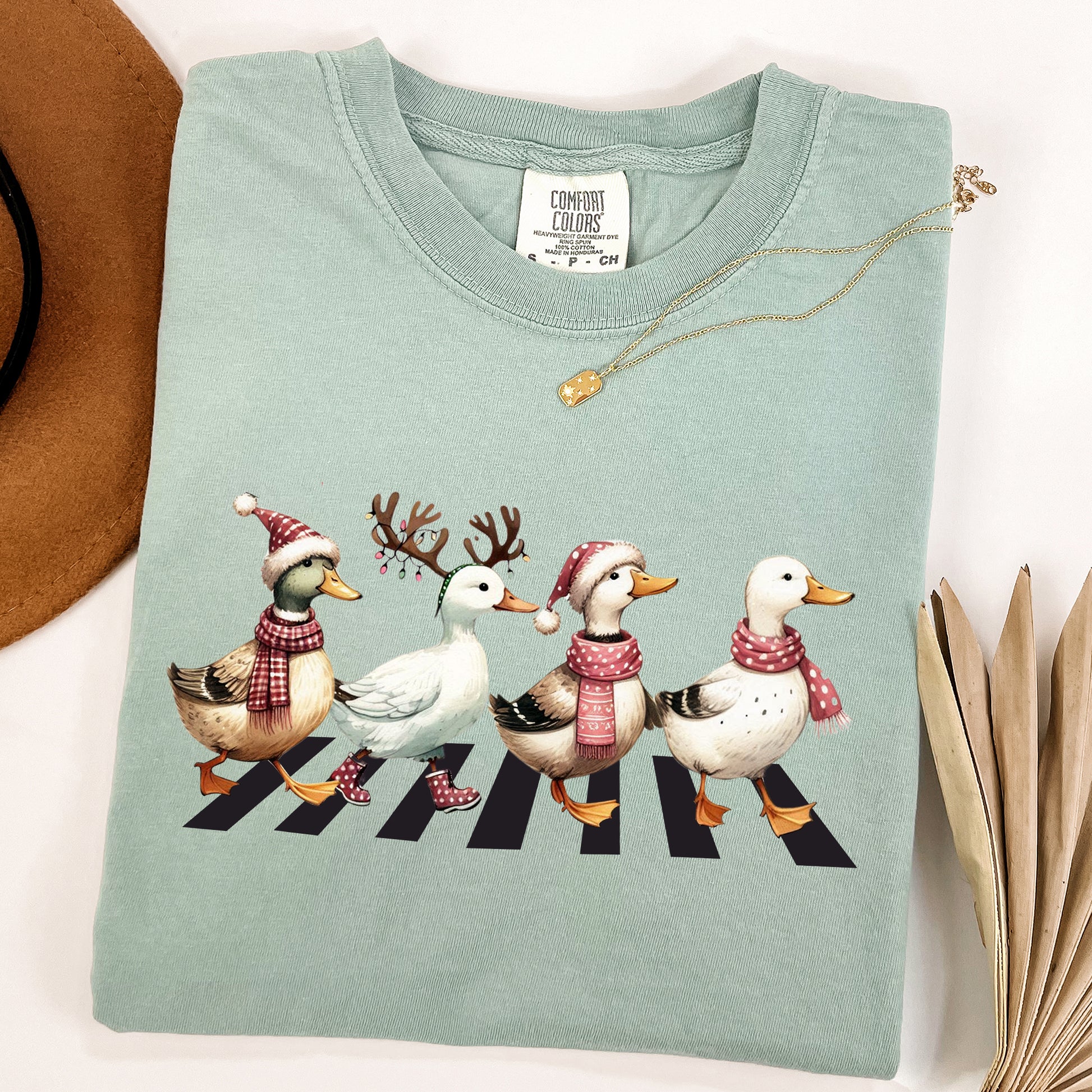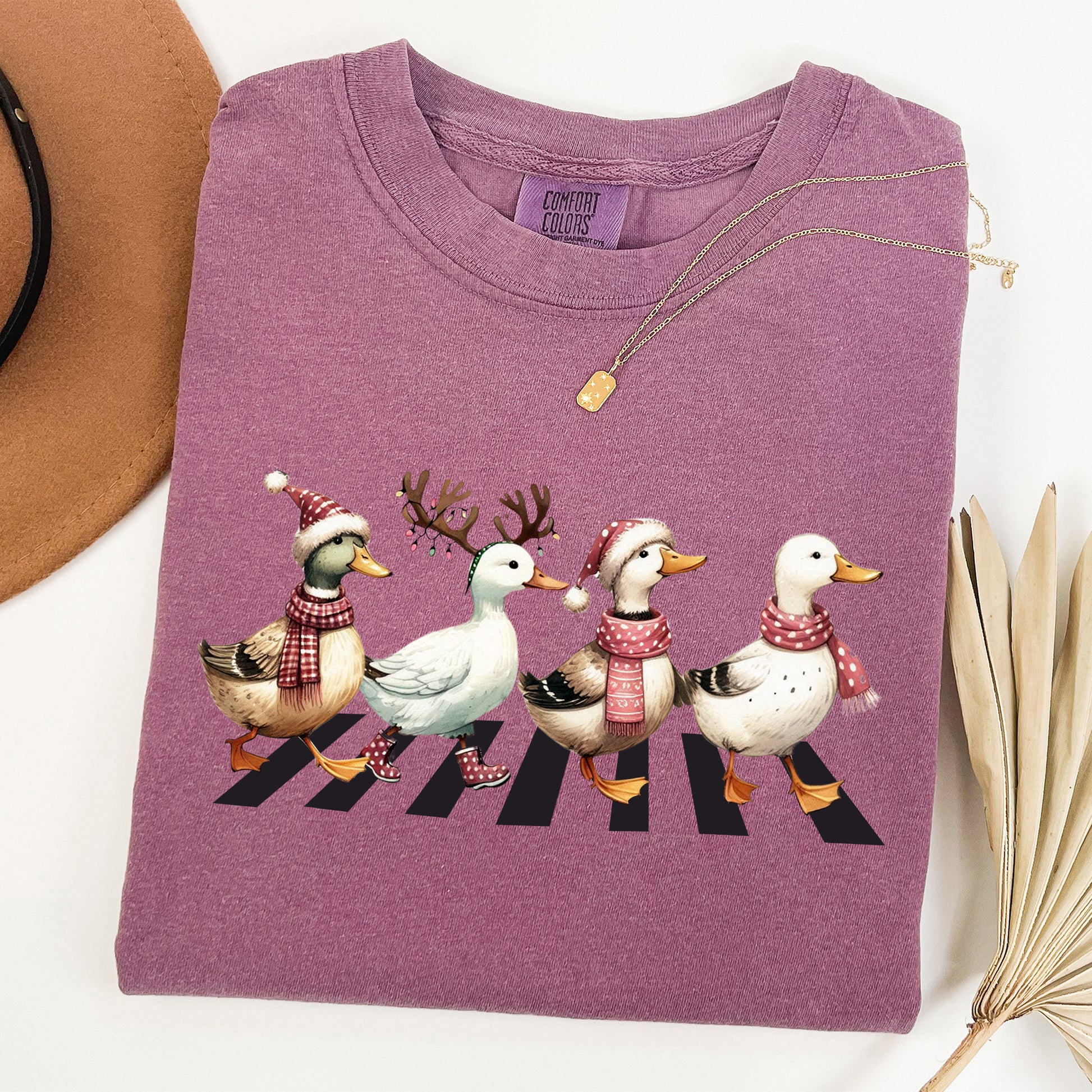 Christmas Ducks, Farm Animals, Crossing Road, Santa, Winter, Snow, Xmas Tshirt Comfort Colors T-Shirt