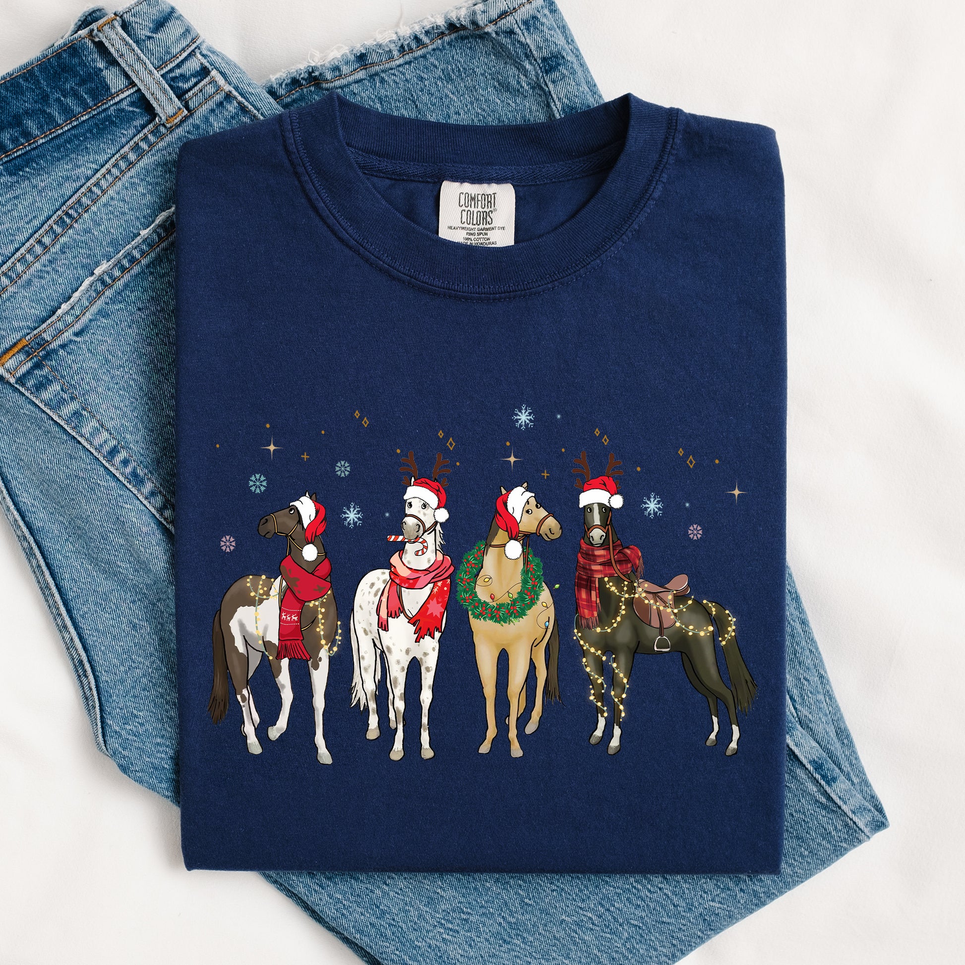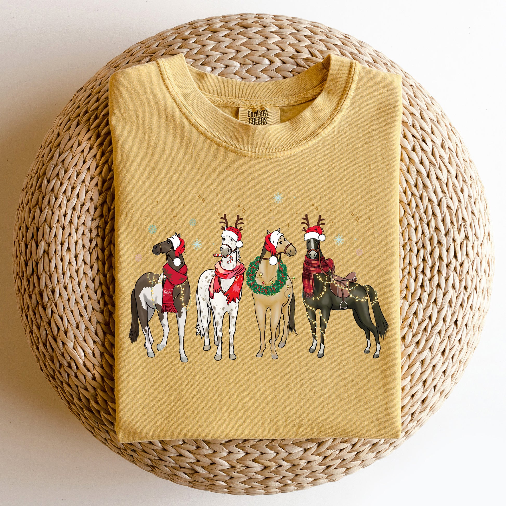 Christmas Horses, Horse Lovers, Santa, Winter, Snow, Xmas Tshirt Comfort Colors T-Shirt