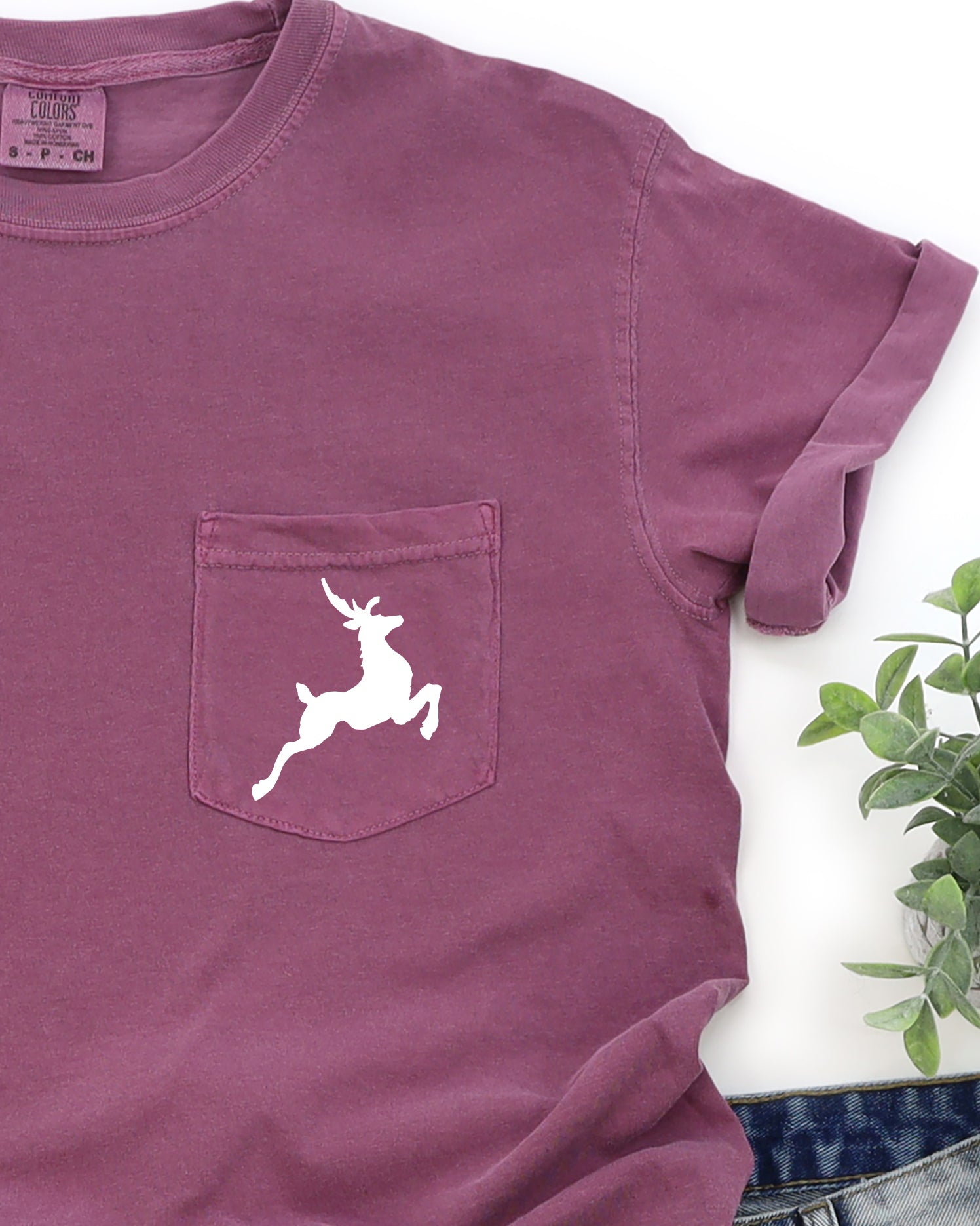 Classic Reindeer, Pocket, Christmas, Snow, Santa, Sleigh, Winter, Xmas Pocket Tee Comfort Colors T-Shirt