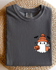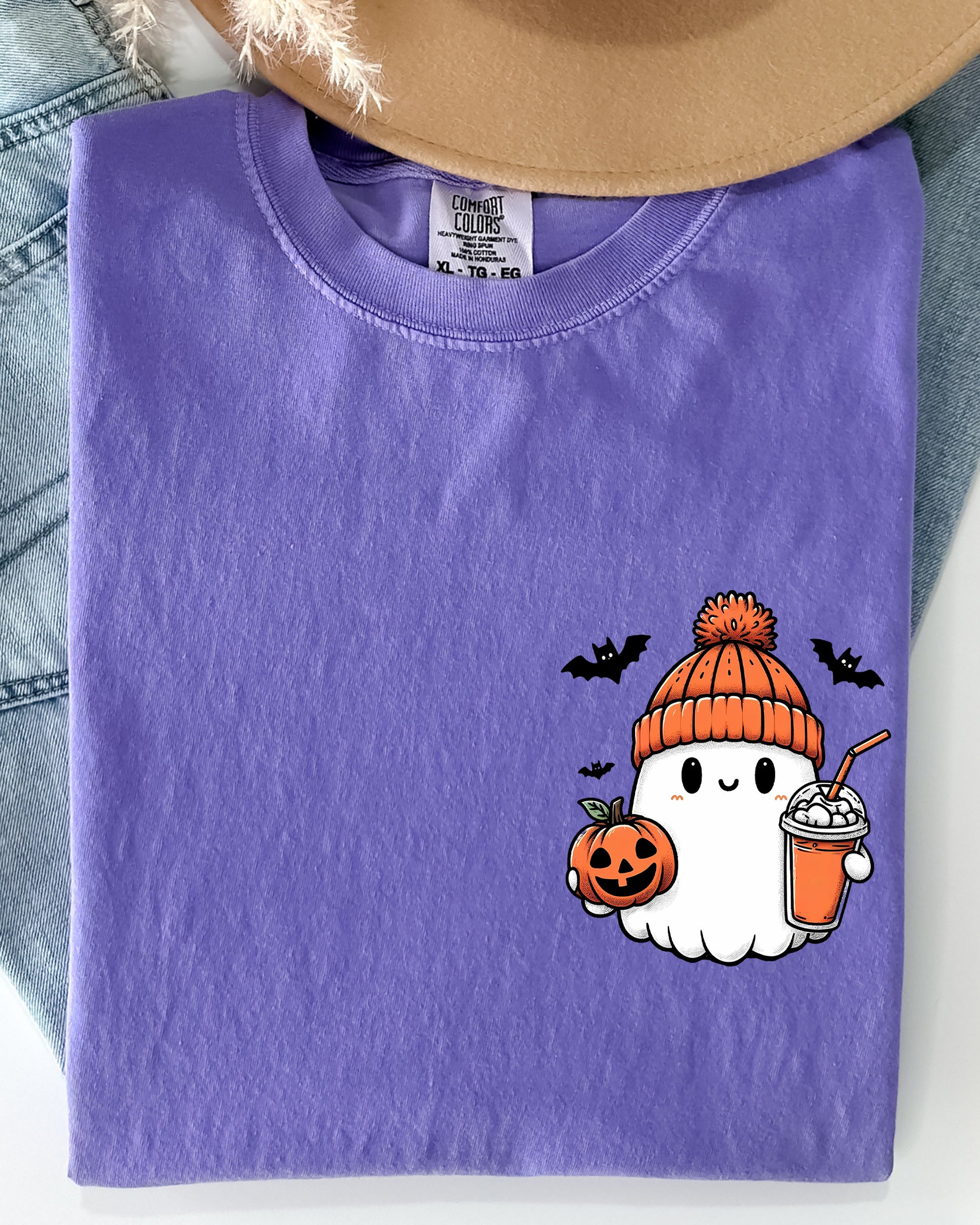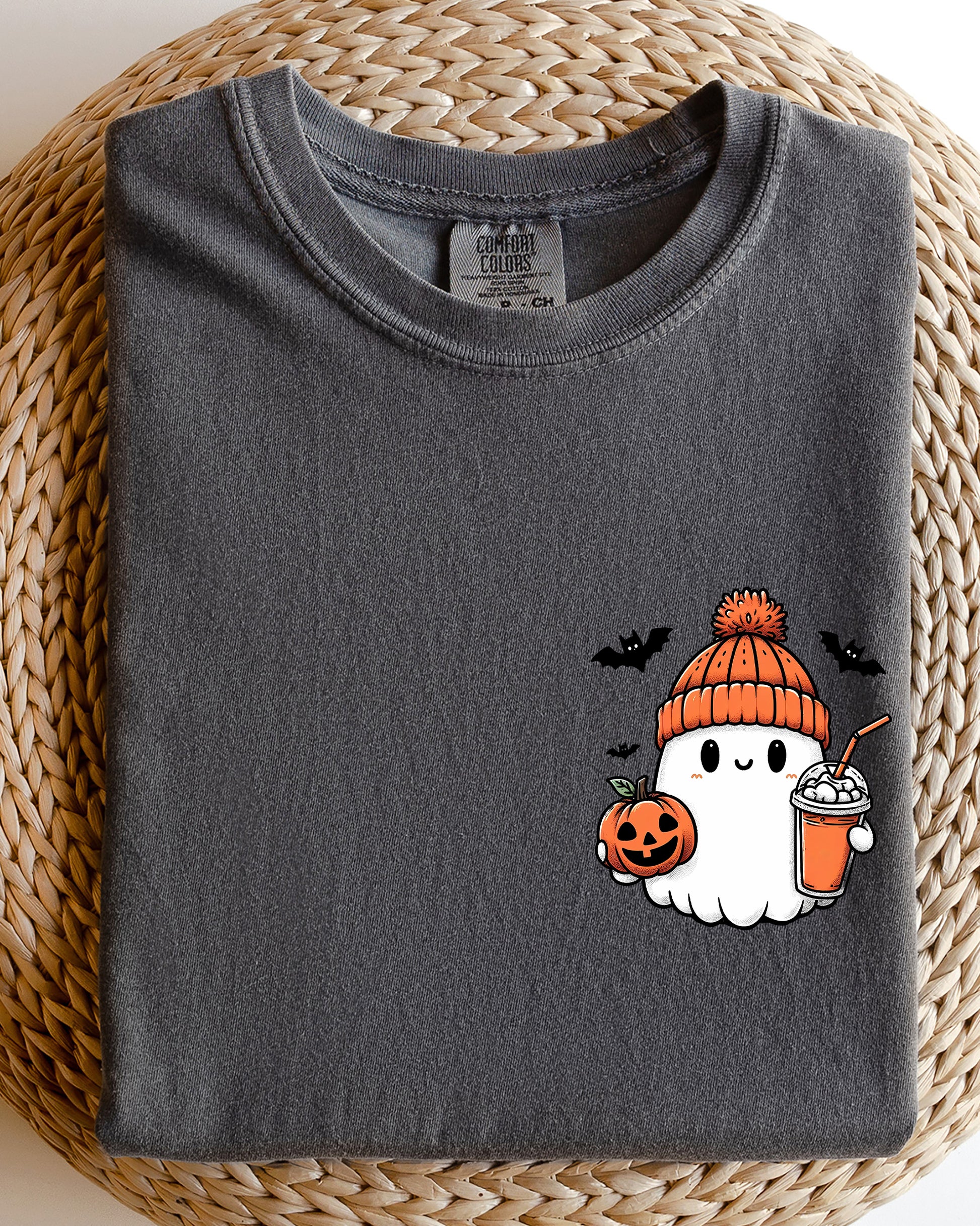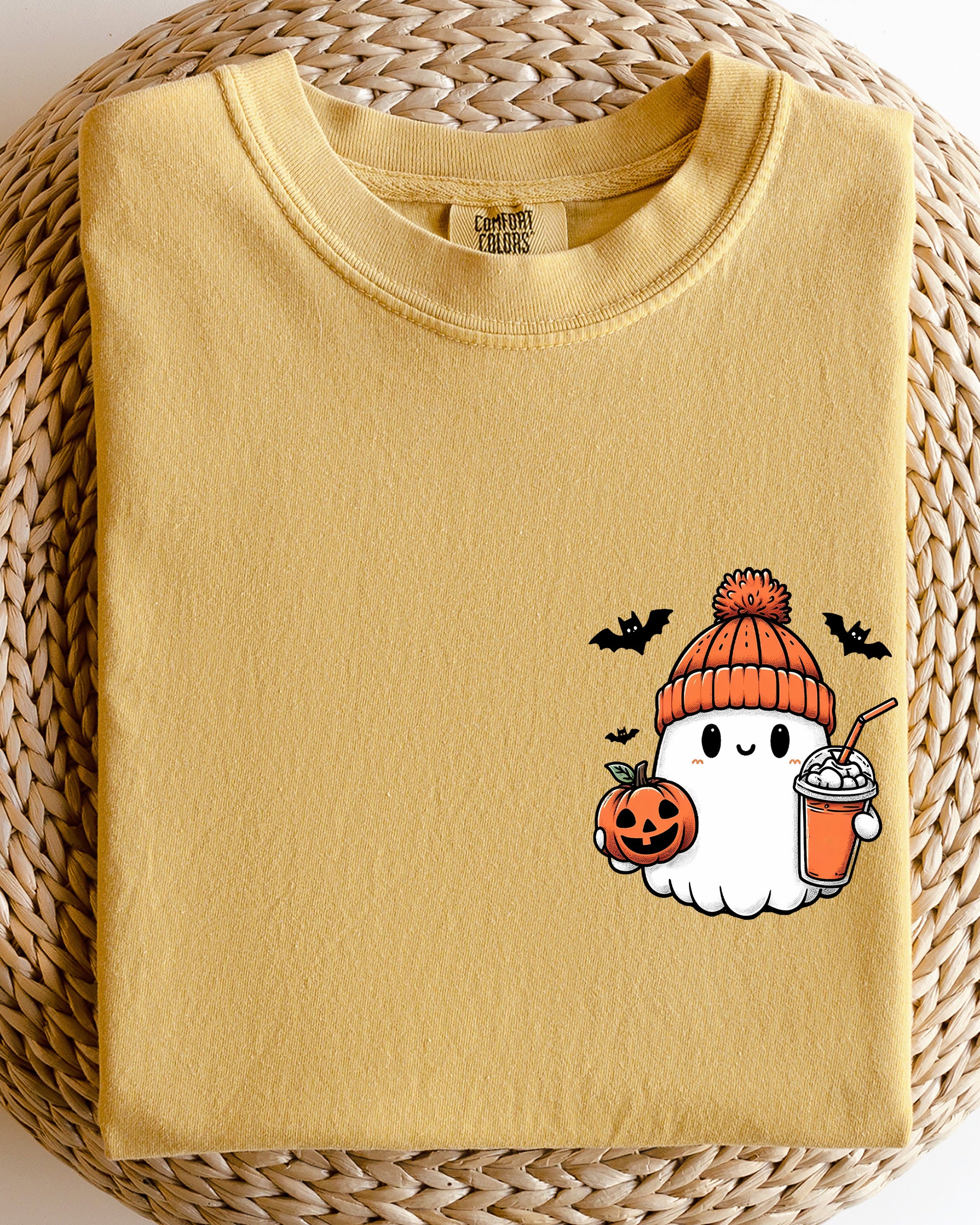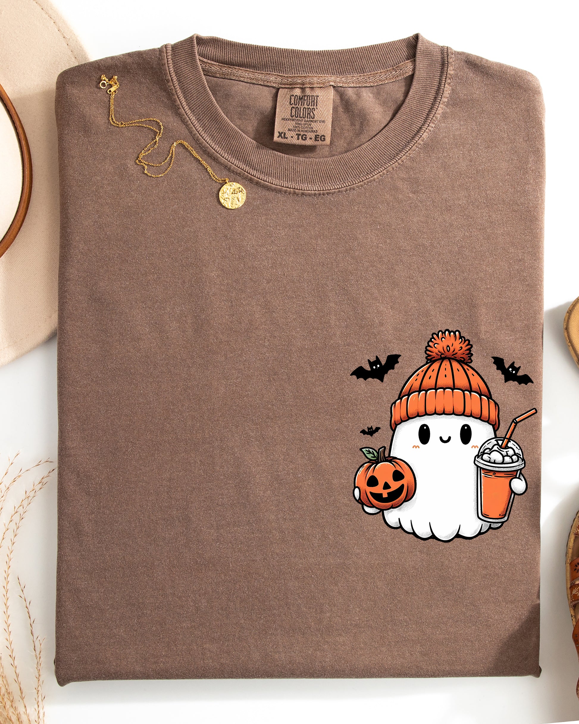 Cute Orange Ghost, Pocket Print, Halloween, Coffee, Bats Shirt Comfort Colors T-Shirt