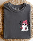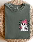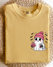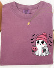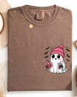 Cute Pink Ghost, Pocket Print, Halloween, Coffee, Bats Shirt Comfort Colors T-Shirt