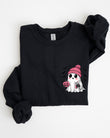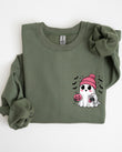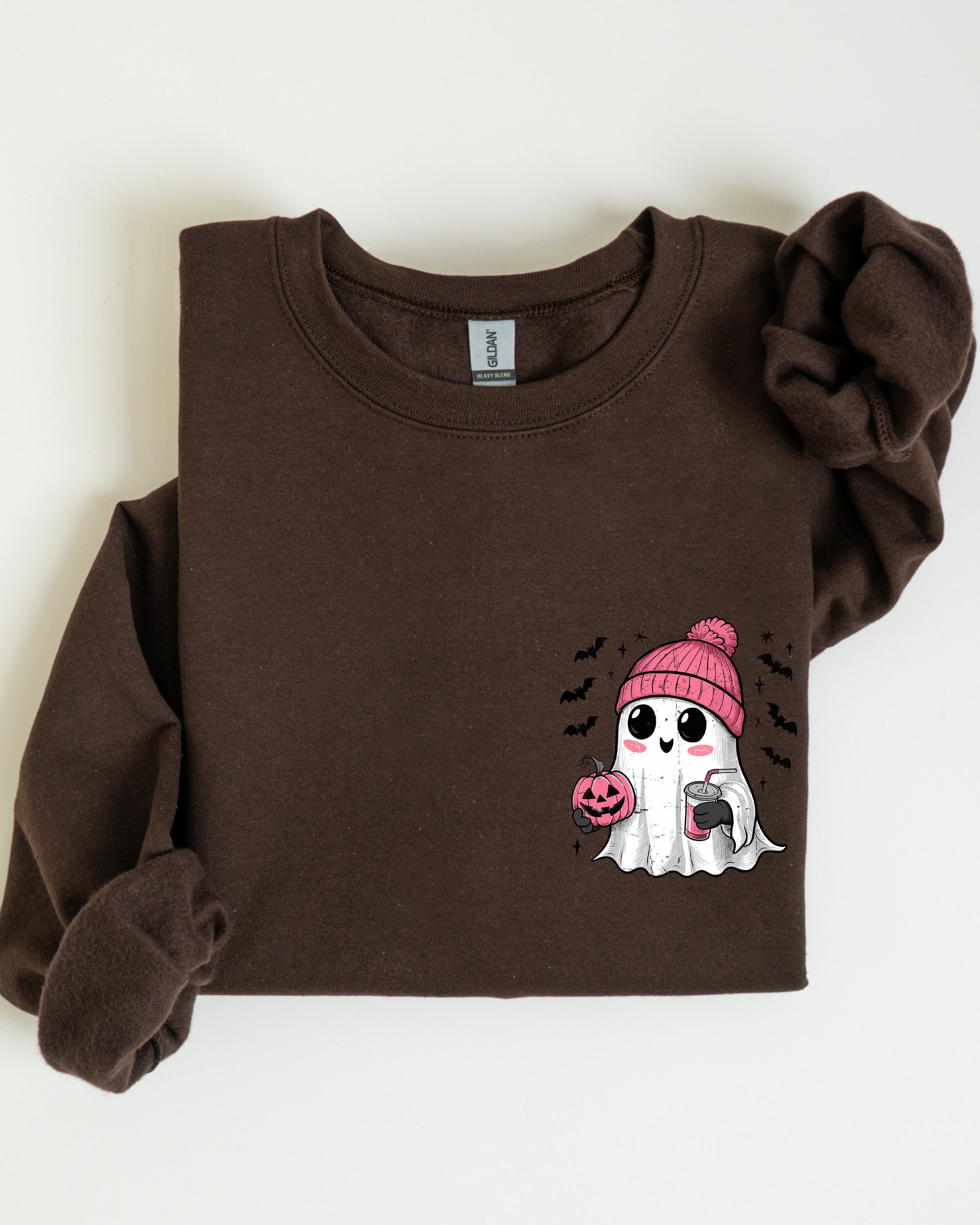 Cute Pink Ghost, Pocket Print, Halloween, Coffee, Bats Sweatshirt