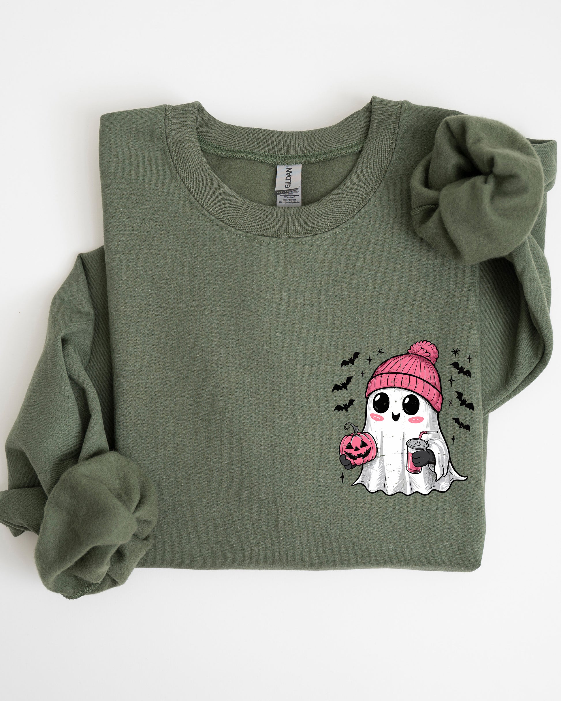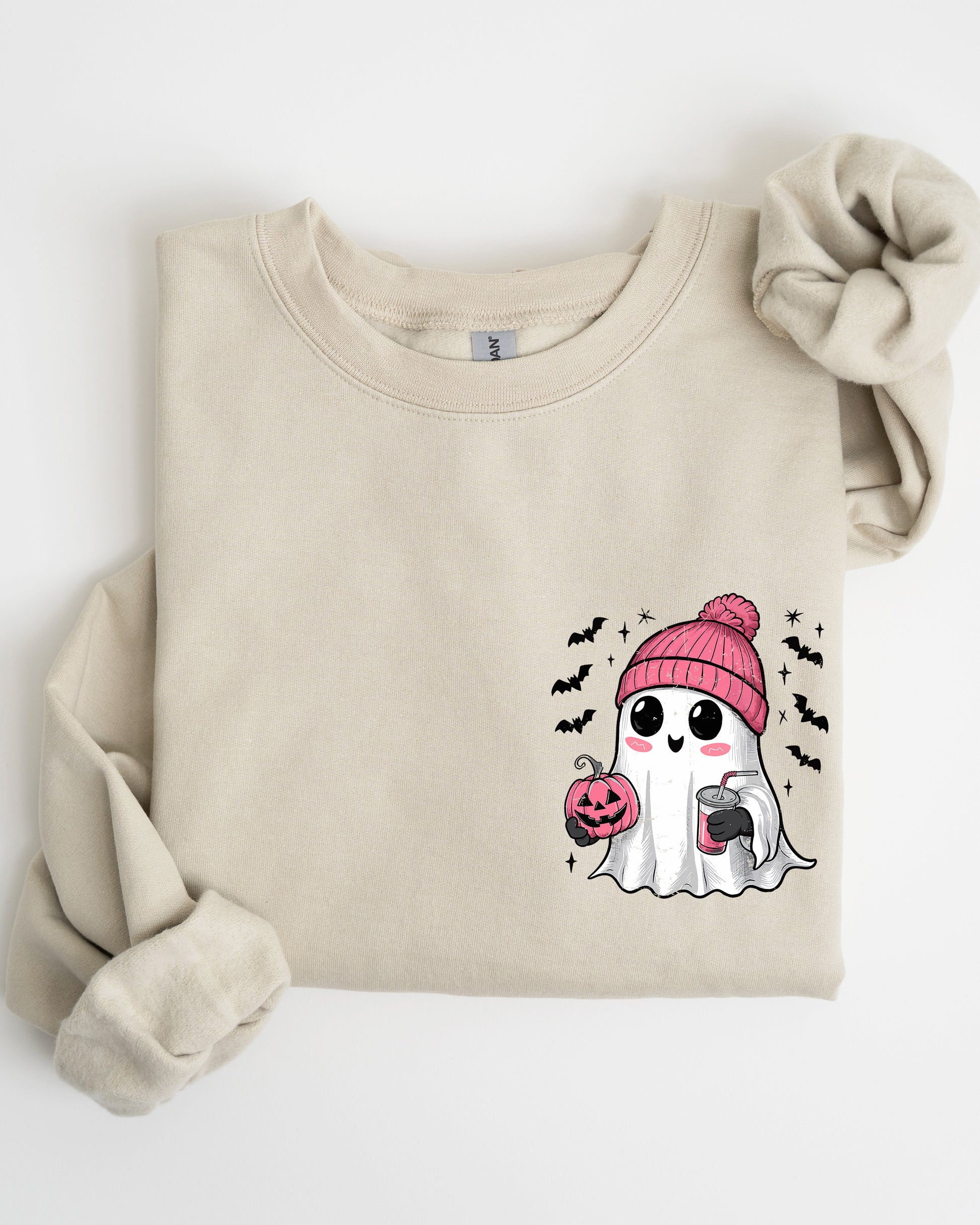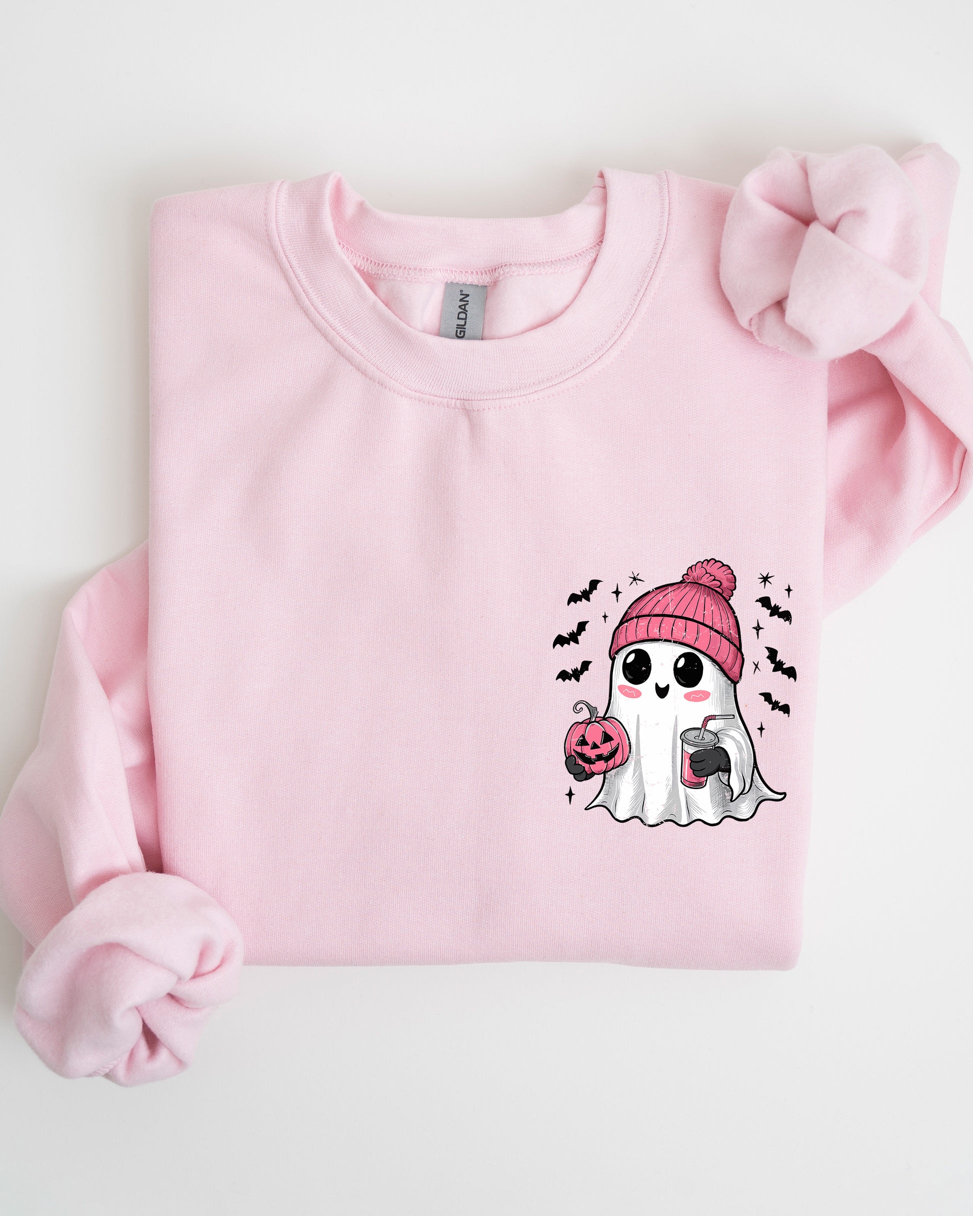 - Striking Graphic Designs: Featuring a cute pink ghost and playful bats, this sweatshirt lets you express your personality while celebrating the season.