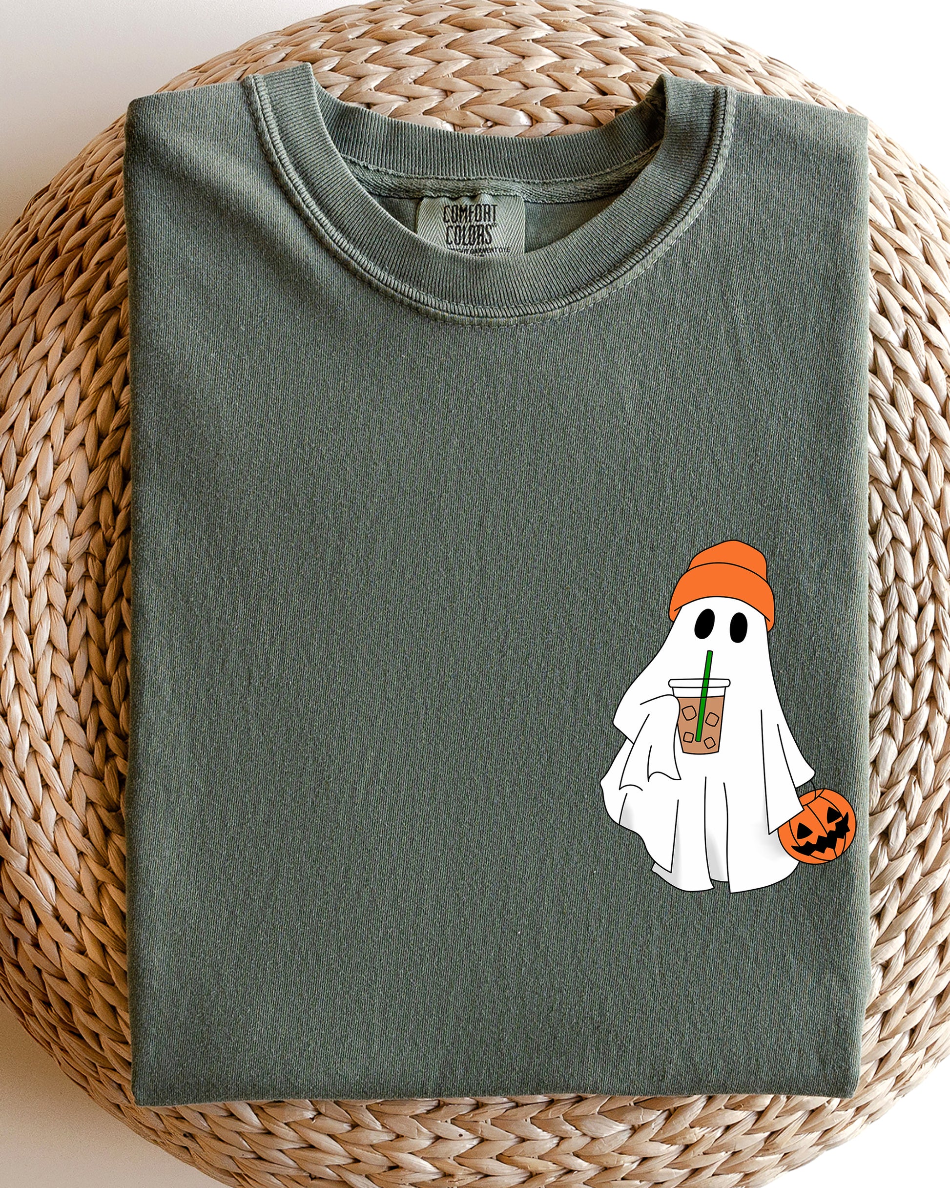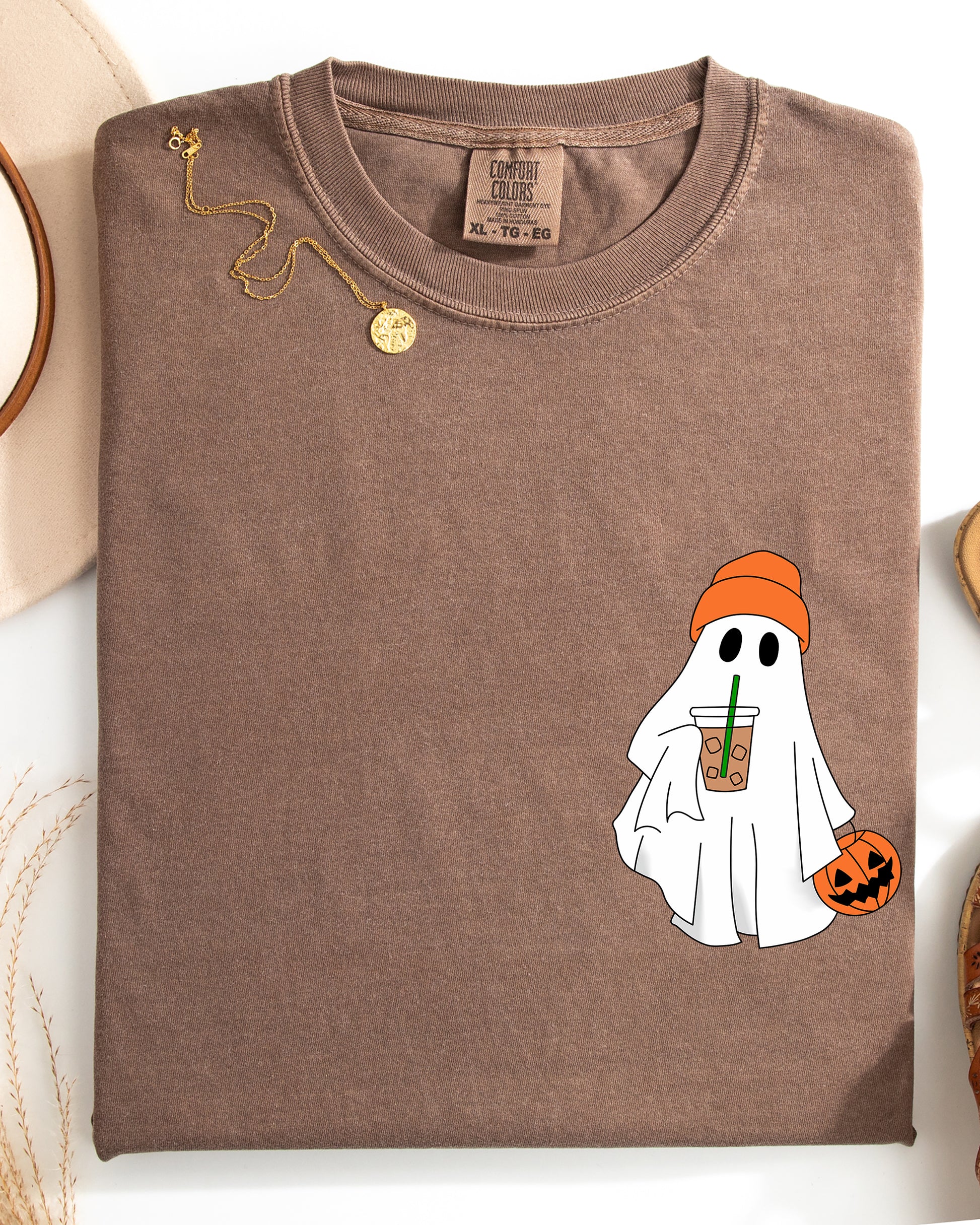 Cute Skater Ghost, Pocket Print, Halloween, Coffee, Trick or Treat Shirt Comfort Colors T-Shirt