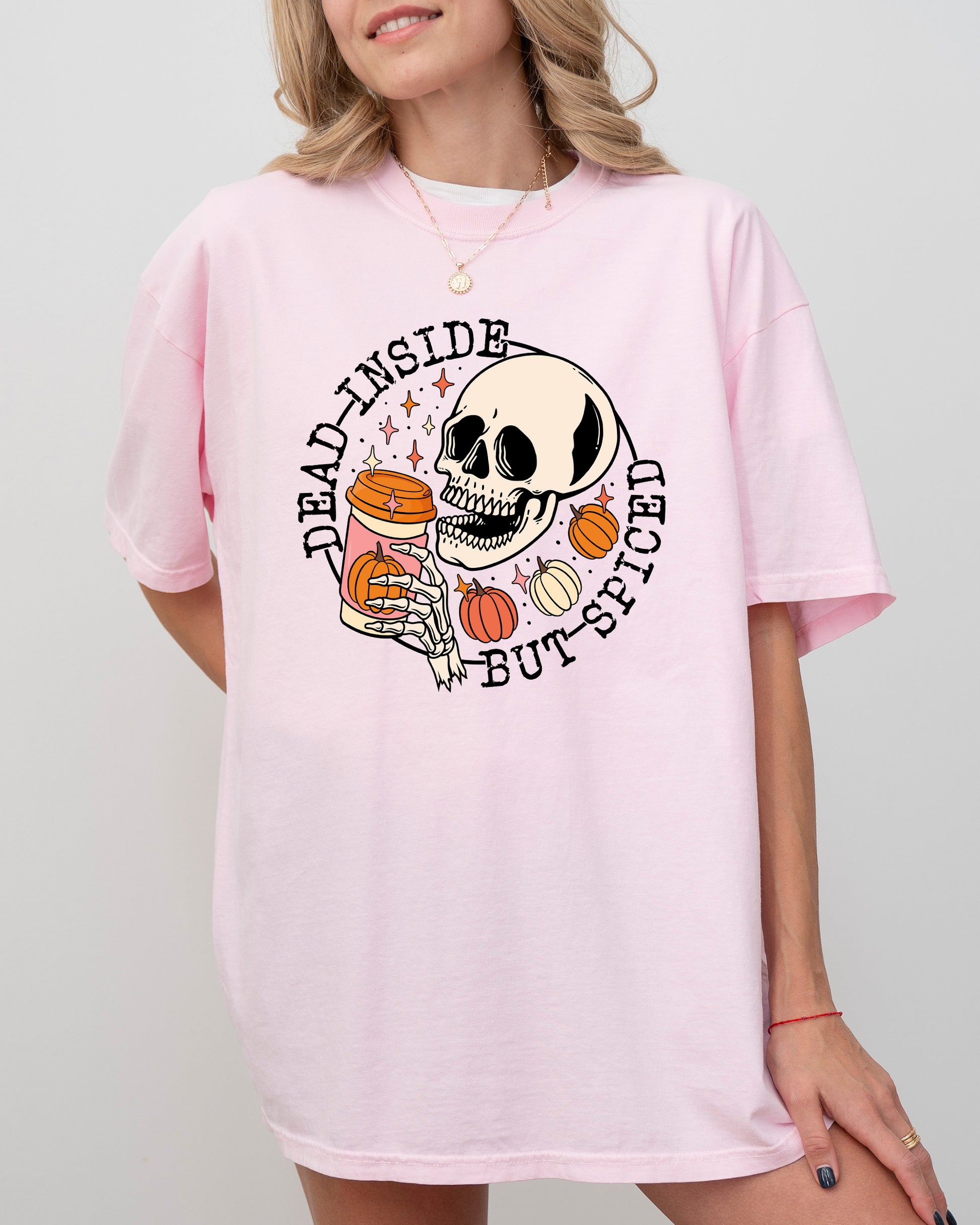 Dead Inside But Spiced, Pumpkin Spice Latte, Coffee, Skeleton, Halloween, Funny, Fall, Autumn, Thanksgiving Shirt Comfort Colors T-Shirt