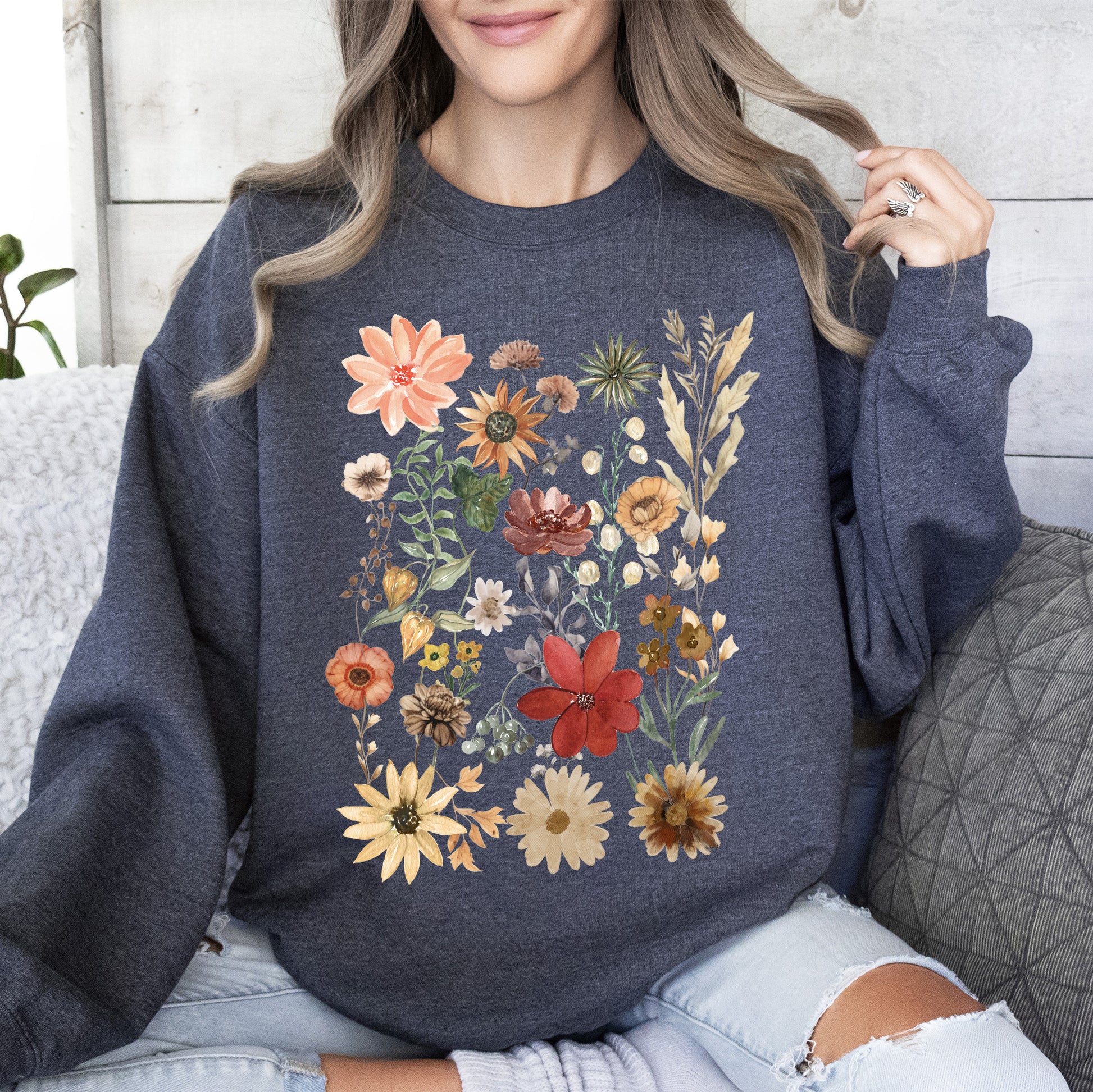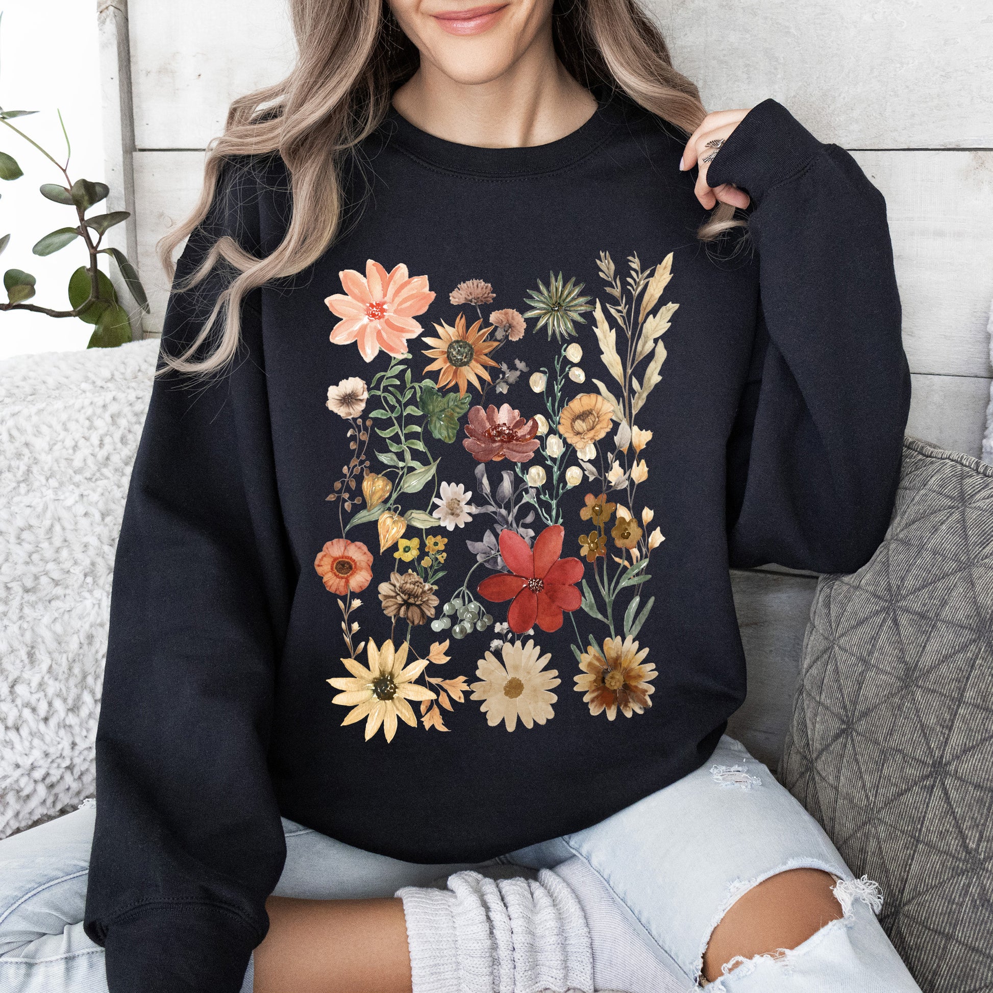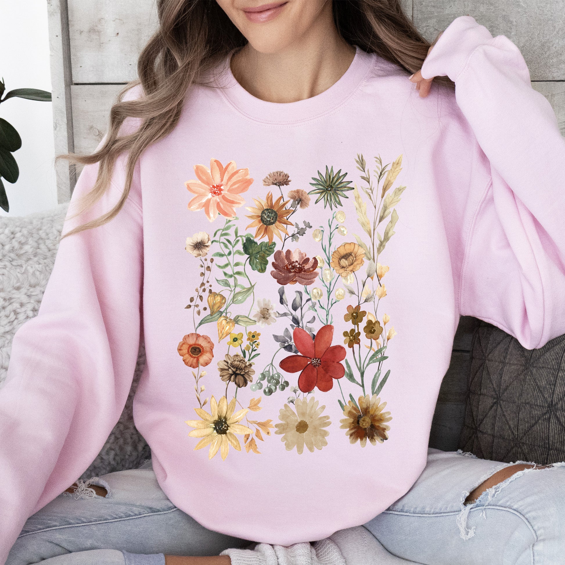 This Dried Wildflower Meadow, Nature, Floral, Pressed Leaves Sweatshirt pairs perfectly with your favorite jeans for a laid-back, trendy look. It can also be layered over shirts for added style during those cooler days. Whether you’re out exploring nature or enjoying a cozy evening at home, this sweatshirt is an ideal companion.