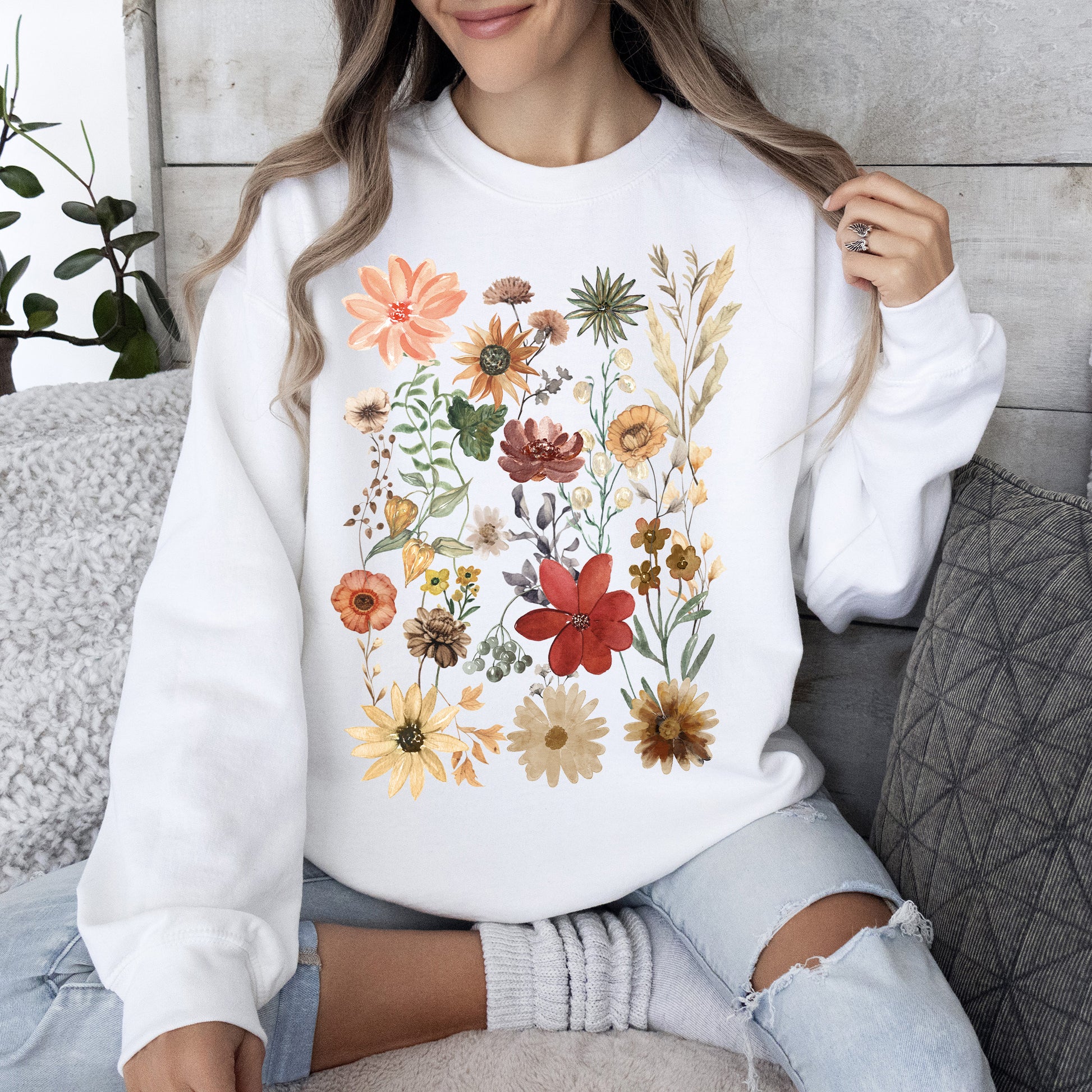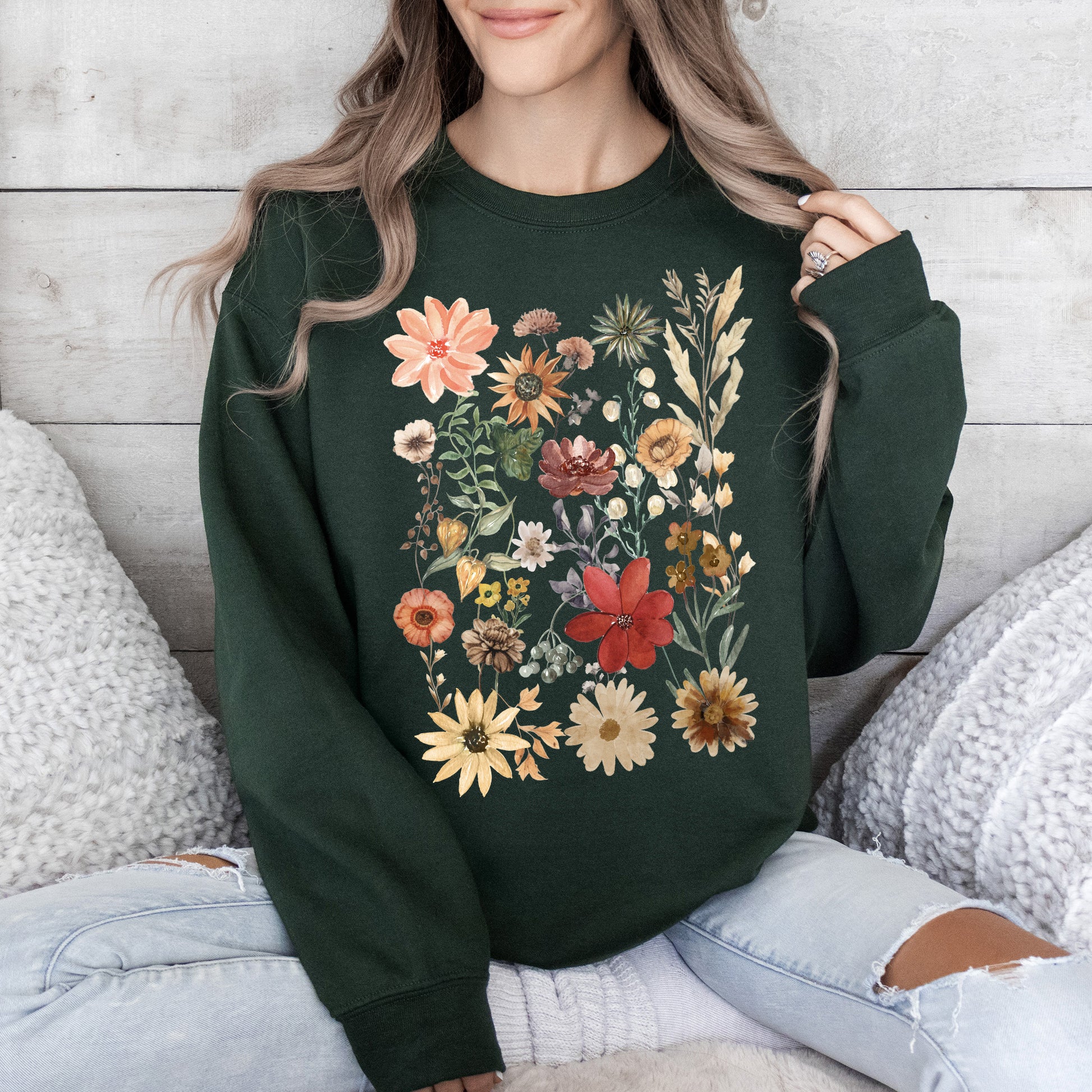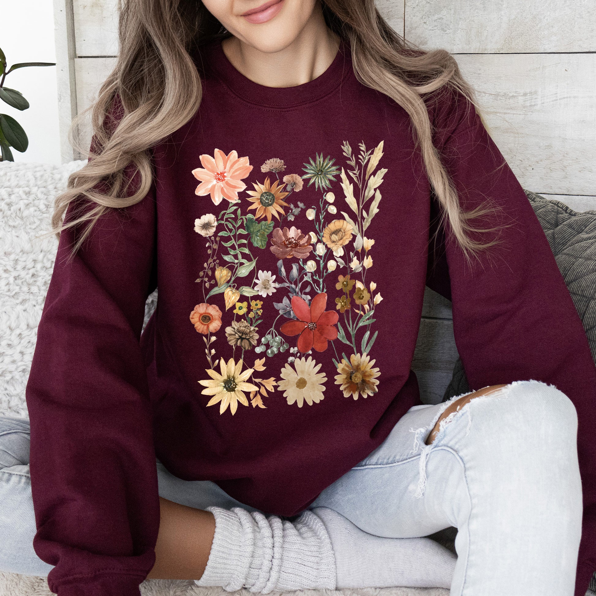 This Dried Wildflower Meadow, Nature, Floral, Pressed Leaves Sweatshirt pairs perfectly with your favorite jeans for a laid-back, trendy look. It can also be layered over shirts for added style during those cooler days. Whether you’re out exploring nature or enjoying a cozy evening at home, this sweatshirt is an ideal companion.