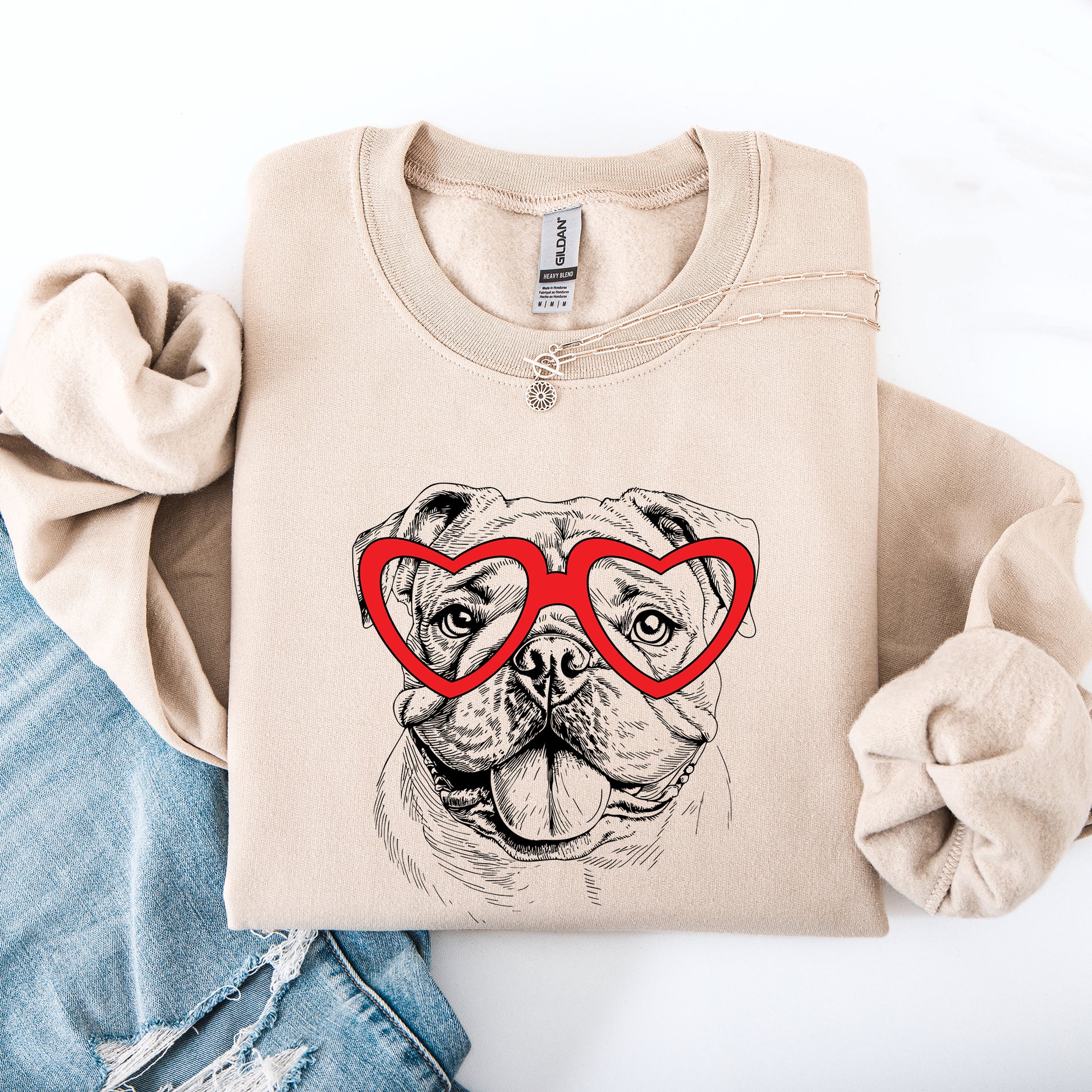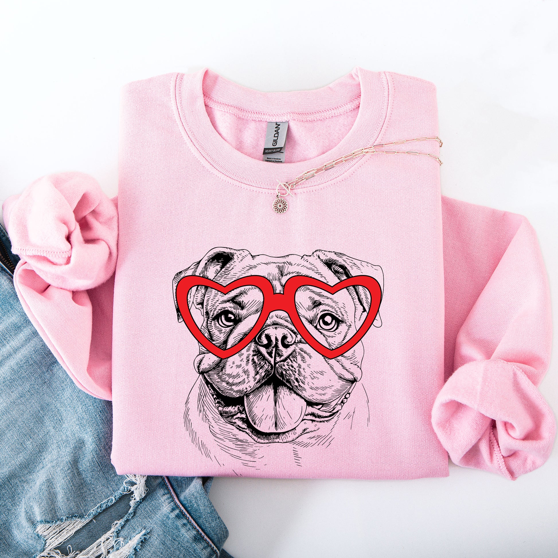 Celebrate your love for the English Bulldog with our charming Valentine's Sweatshirt. This stylish and comfortable pet apparel is perfect for dog lovers who want to express their affection for this lovable dog breed. Made from the finest materials, our sweatshirt combines warmth and a trendy design to make you stand out during this special season of love.