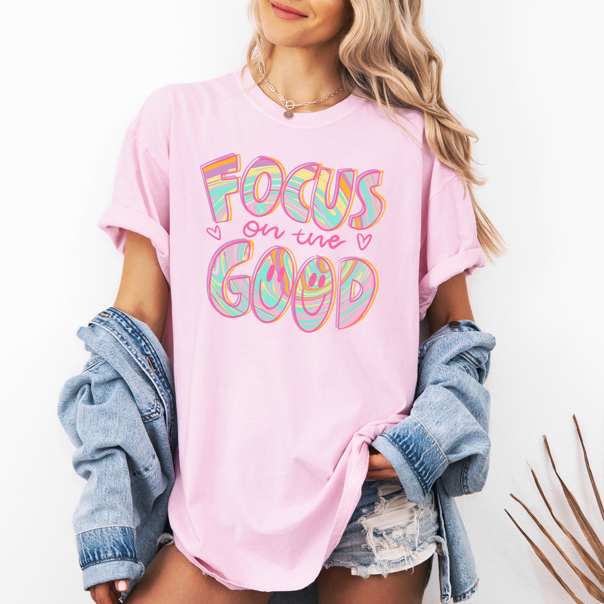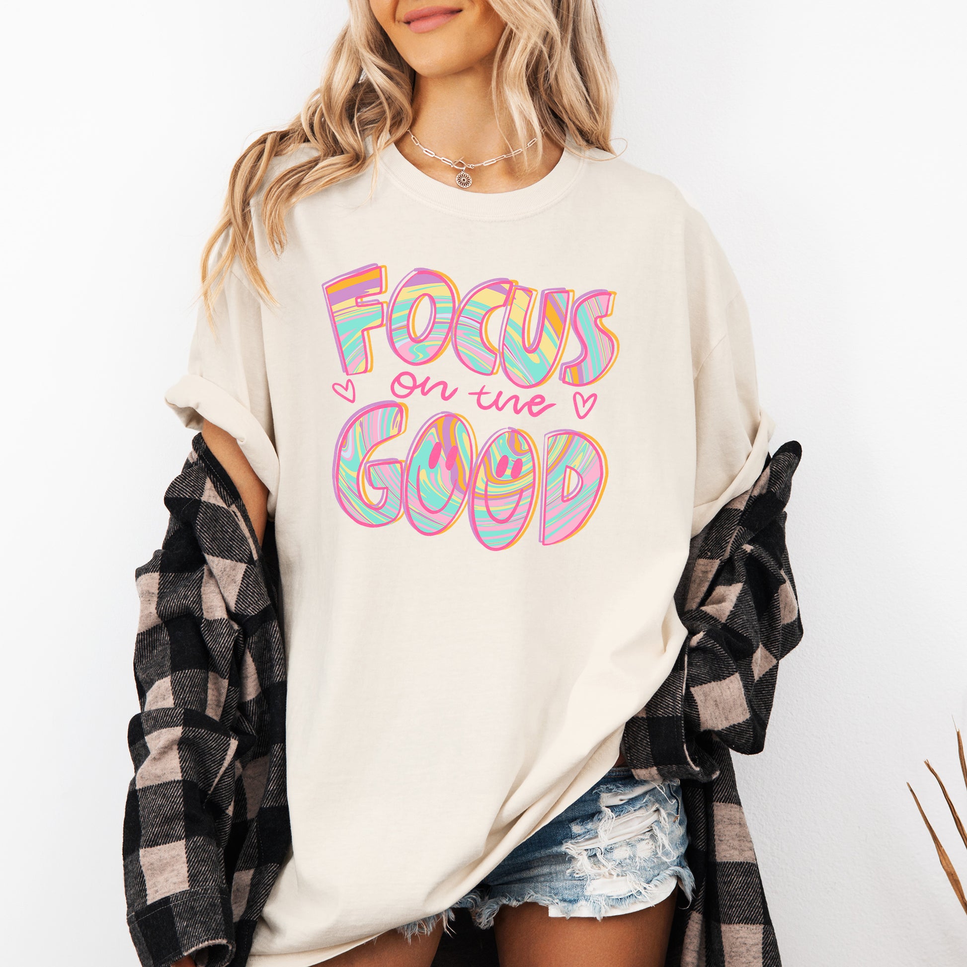 Focus On The Good, Retro, Groovy, Positivity, Mental Health Tshirt Comfort Colors T-Shirt