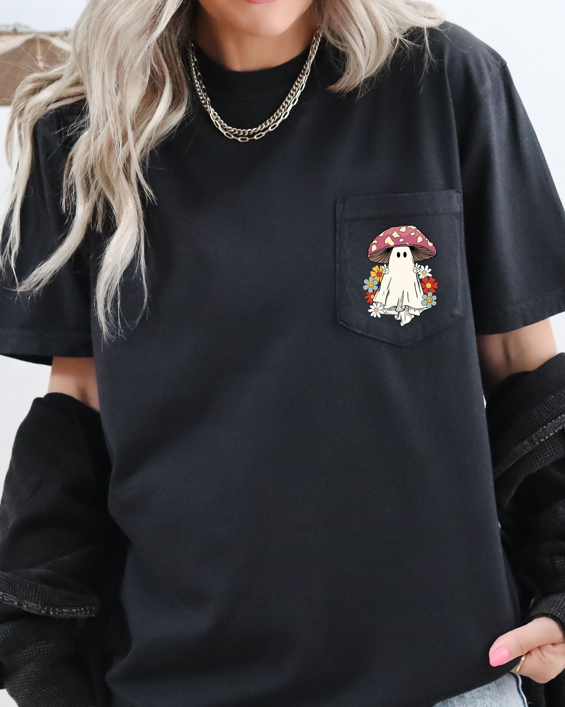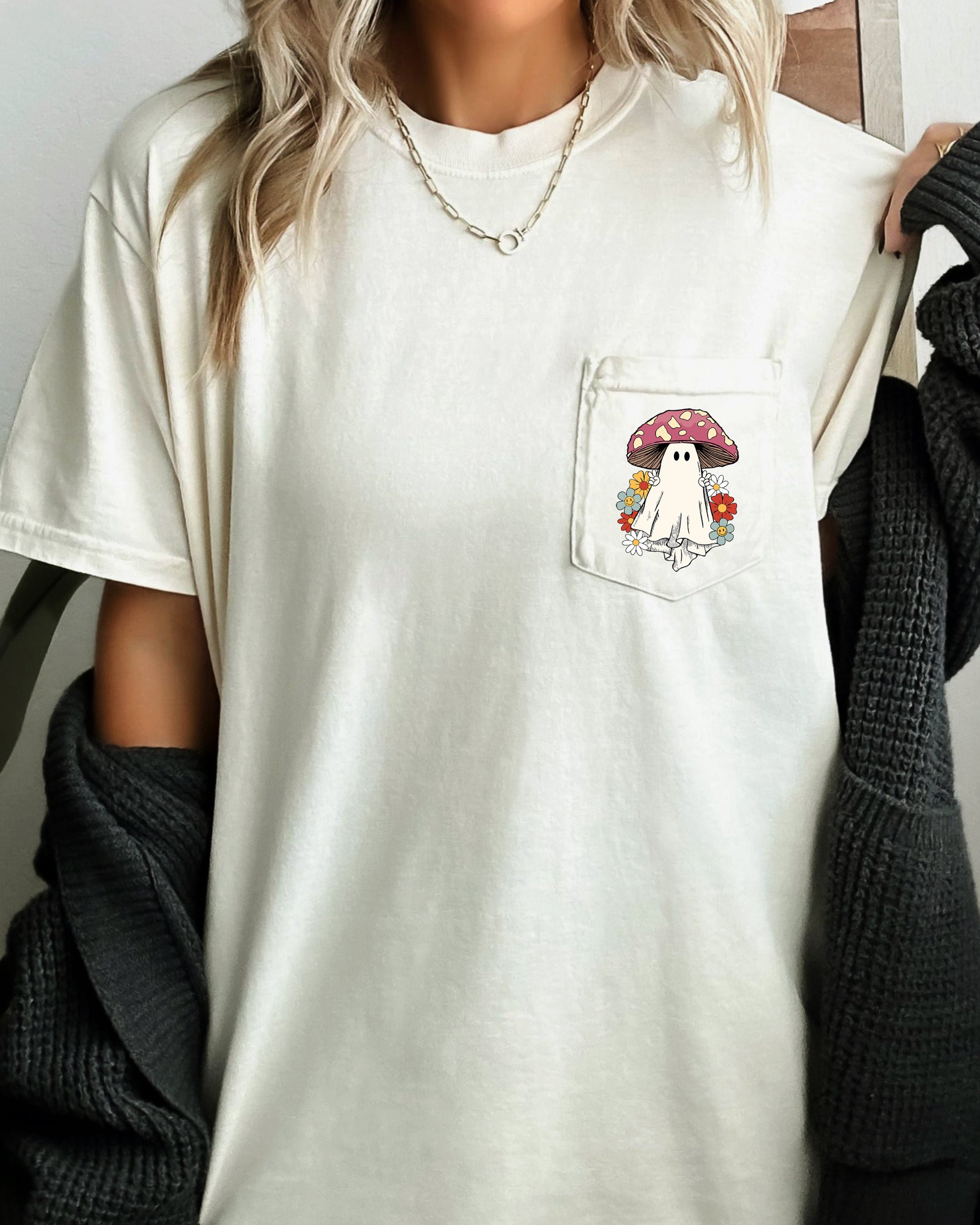 Ghost Mushroom, Halloween Pocket Tee Comfort Colors T-Shirt