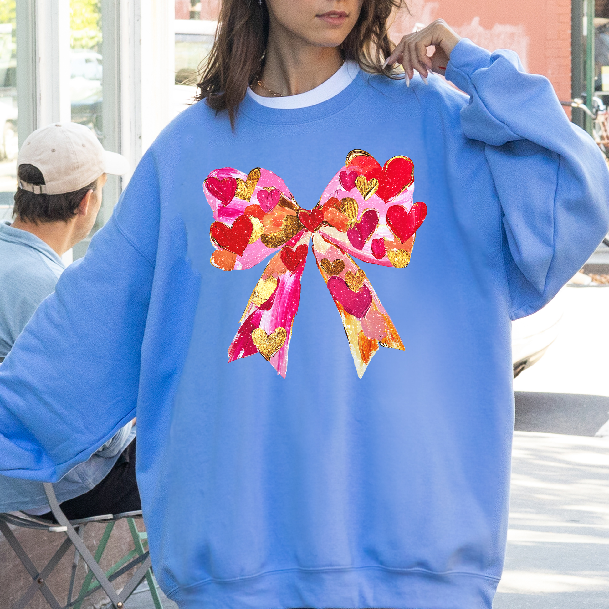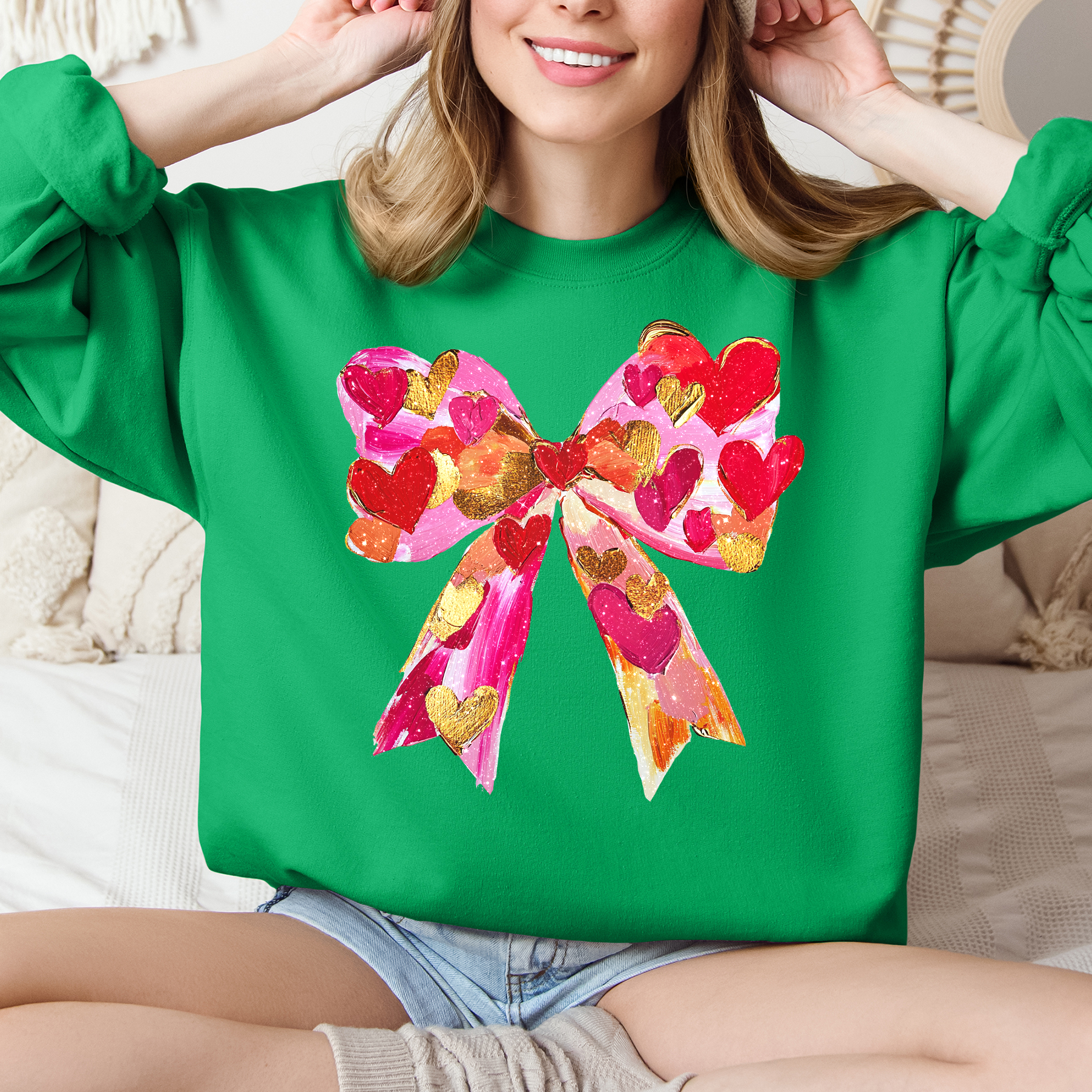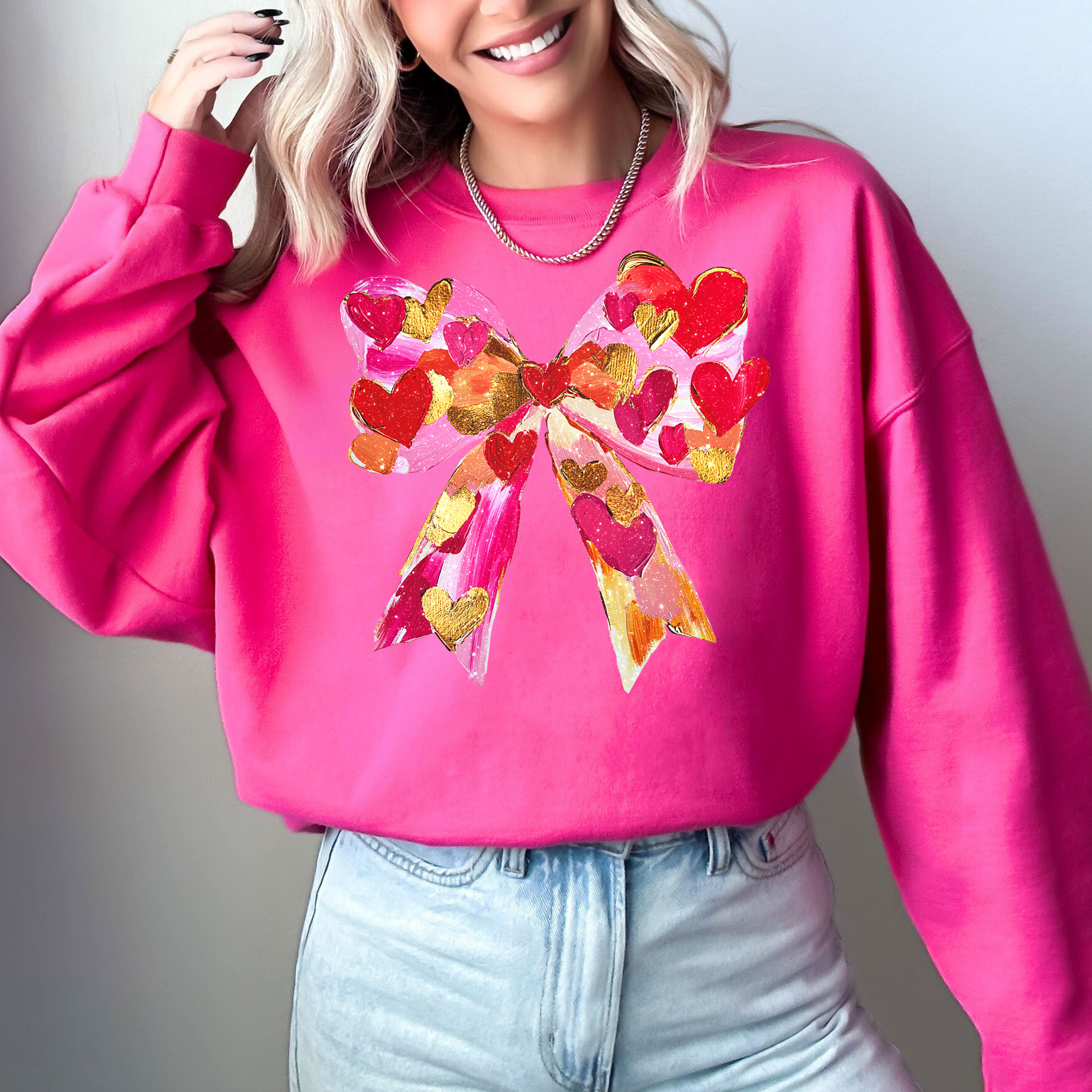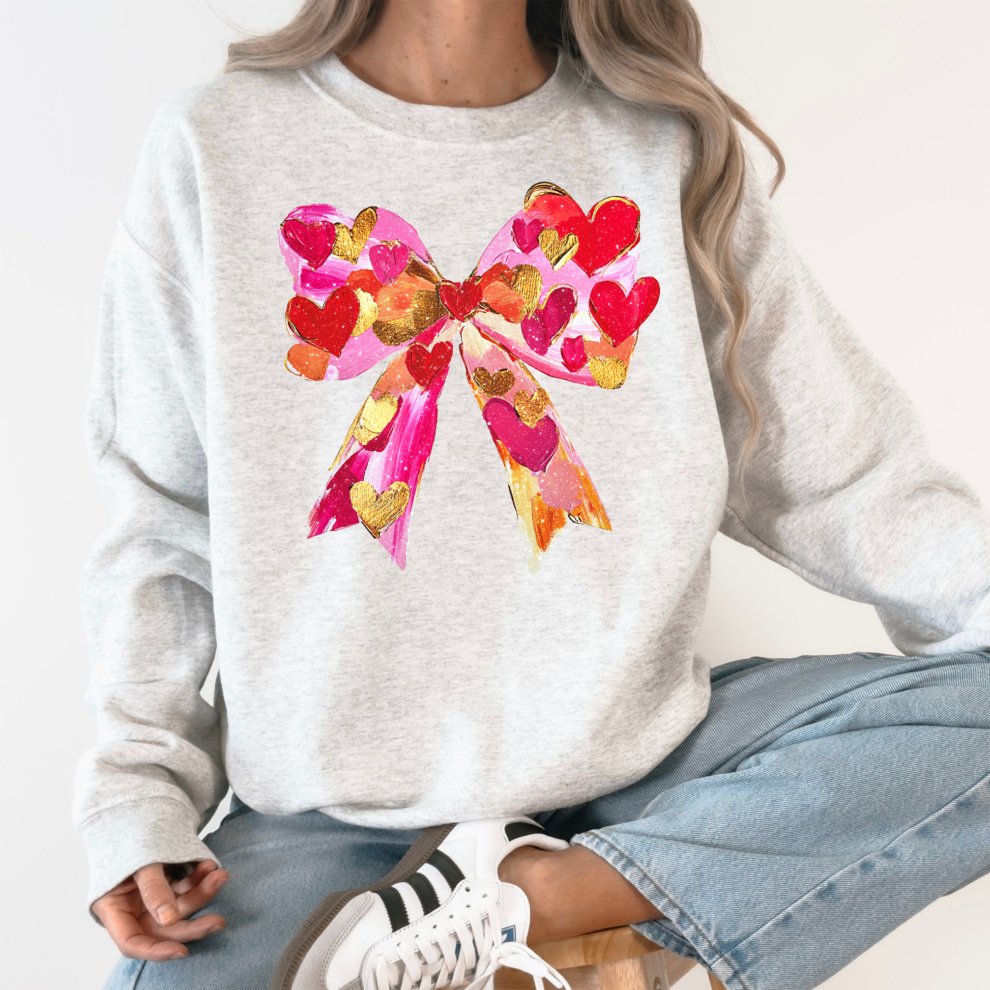 Glittery Heart Ribbon Love: Valentine’s Day Sweatshirt — a vintage-inspired, trend-forward piece designed to make every chilly day feel special.