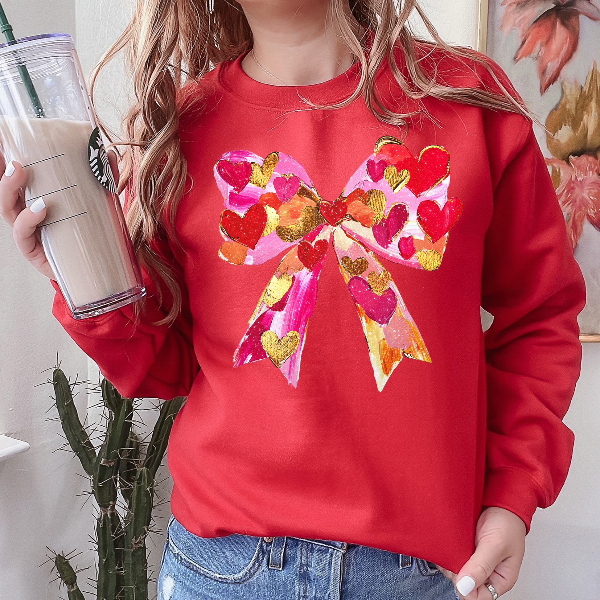 - Valentine’s Day vibe: vibrant, love-forward styling pairs perfectly with denim, leggings, or lounge separates.