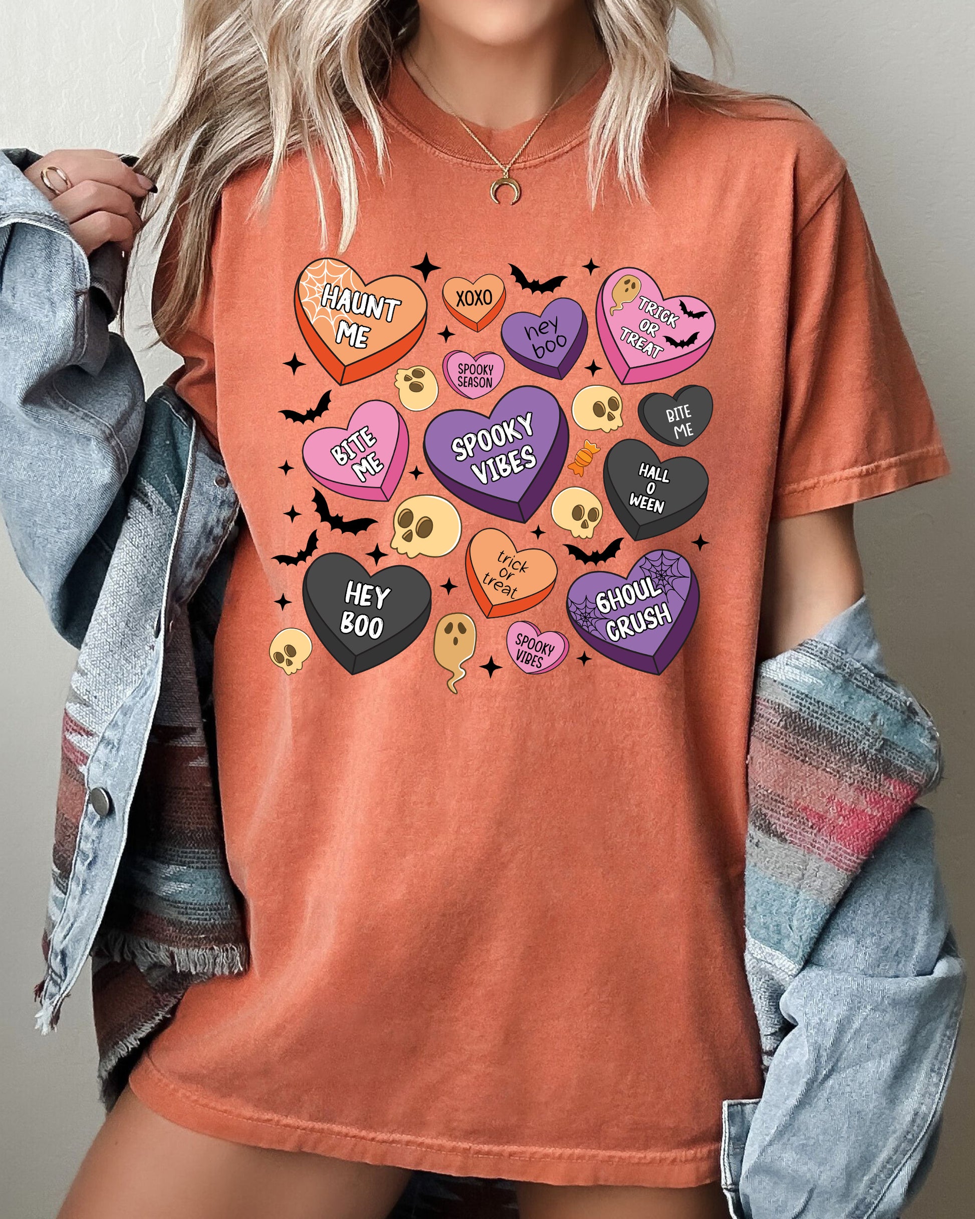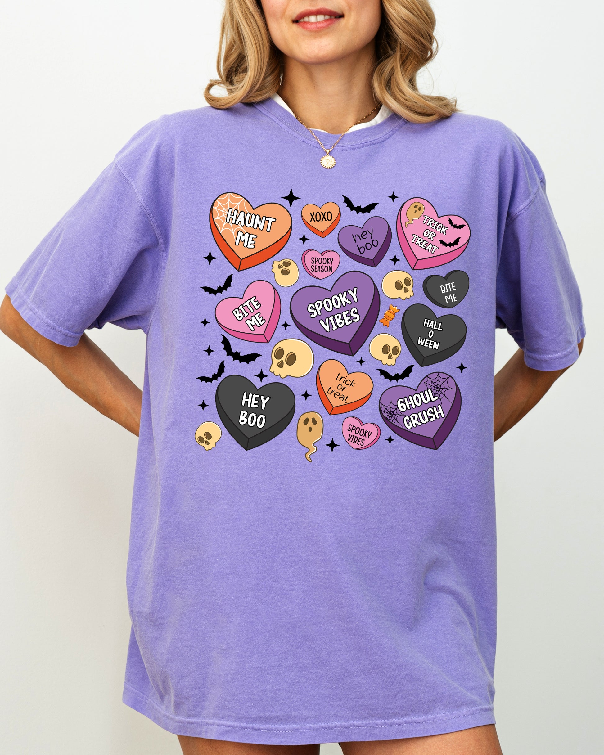 Halloween Candy Hearts, Trick or Treat, Haunted, Spooky, Witch, Cute Shirt Comfort Colors T-Shirt