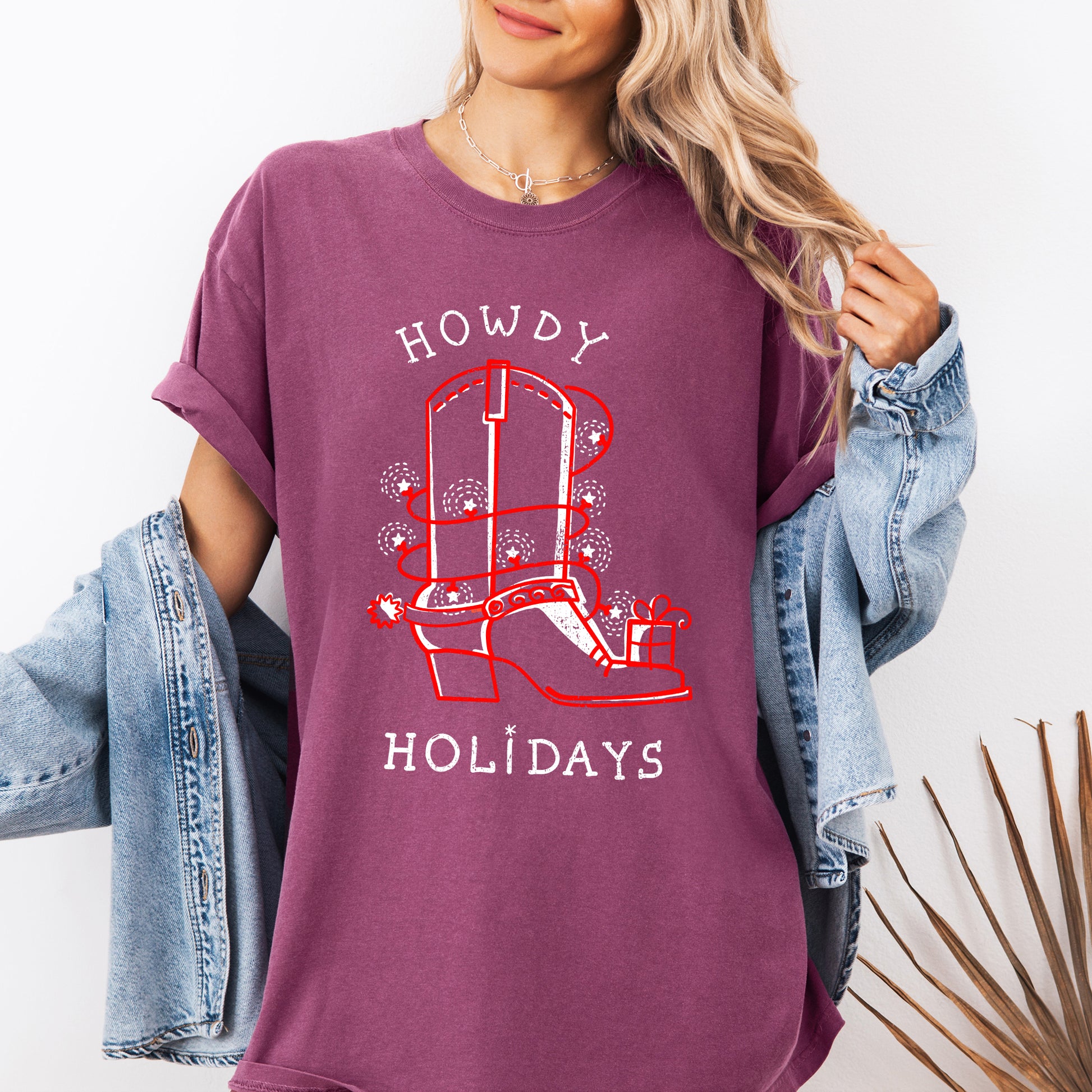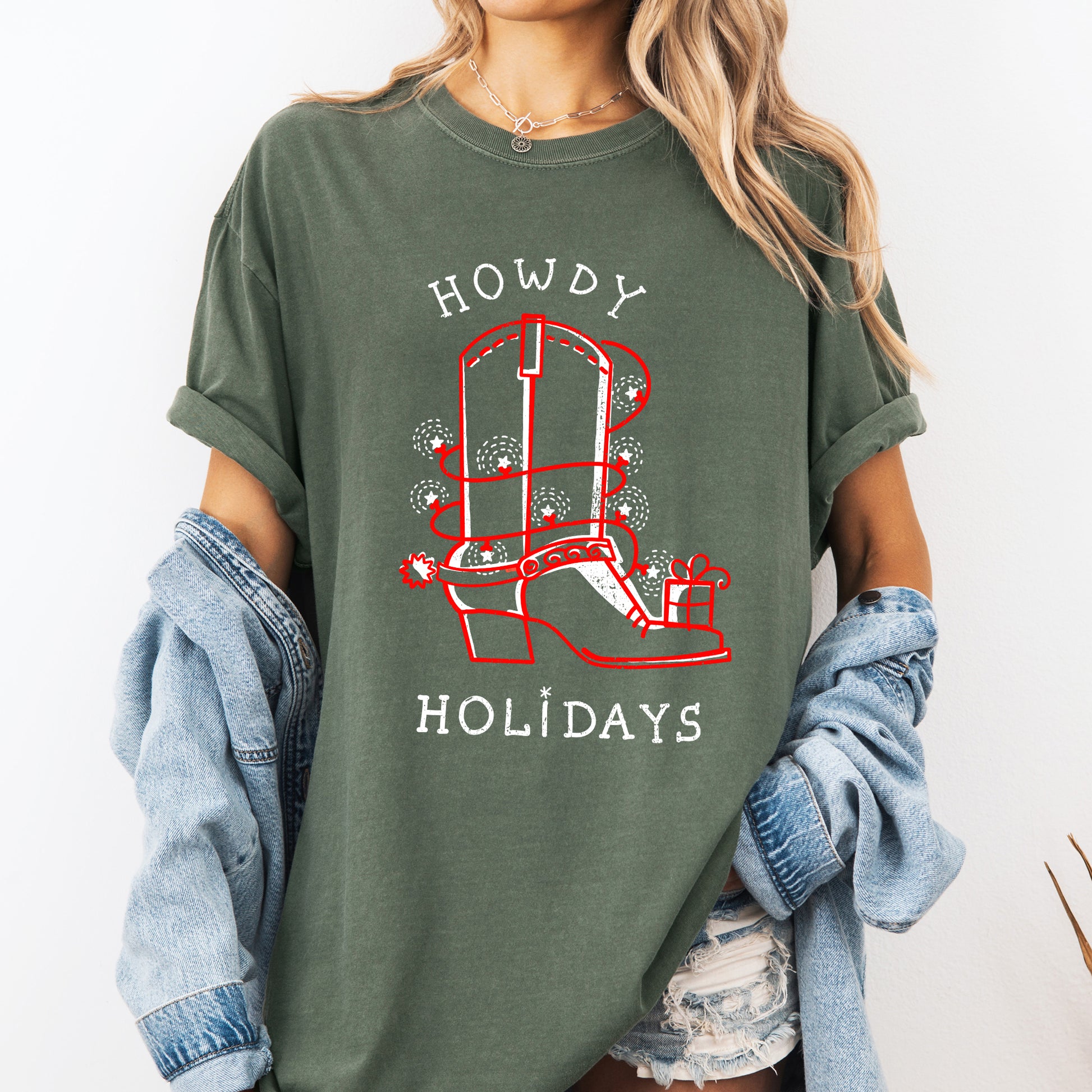 Howdy Holidays, Christmas, Cowboy Boot, Country, Western, Xmas Tshirt Comfort Colors T-Shirt