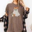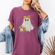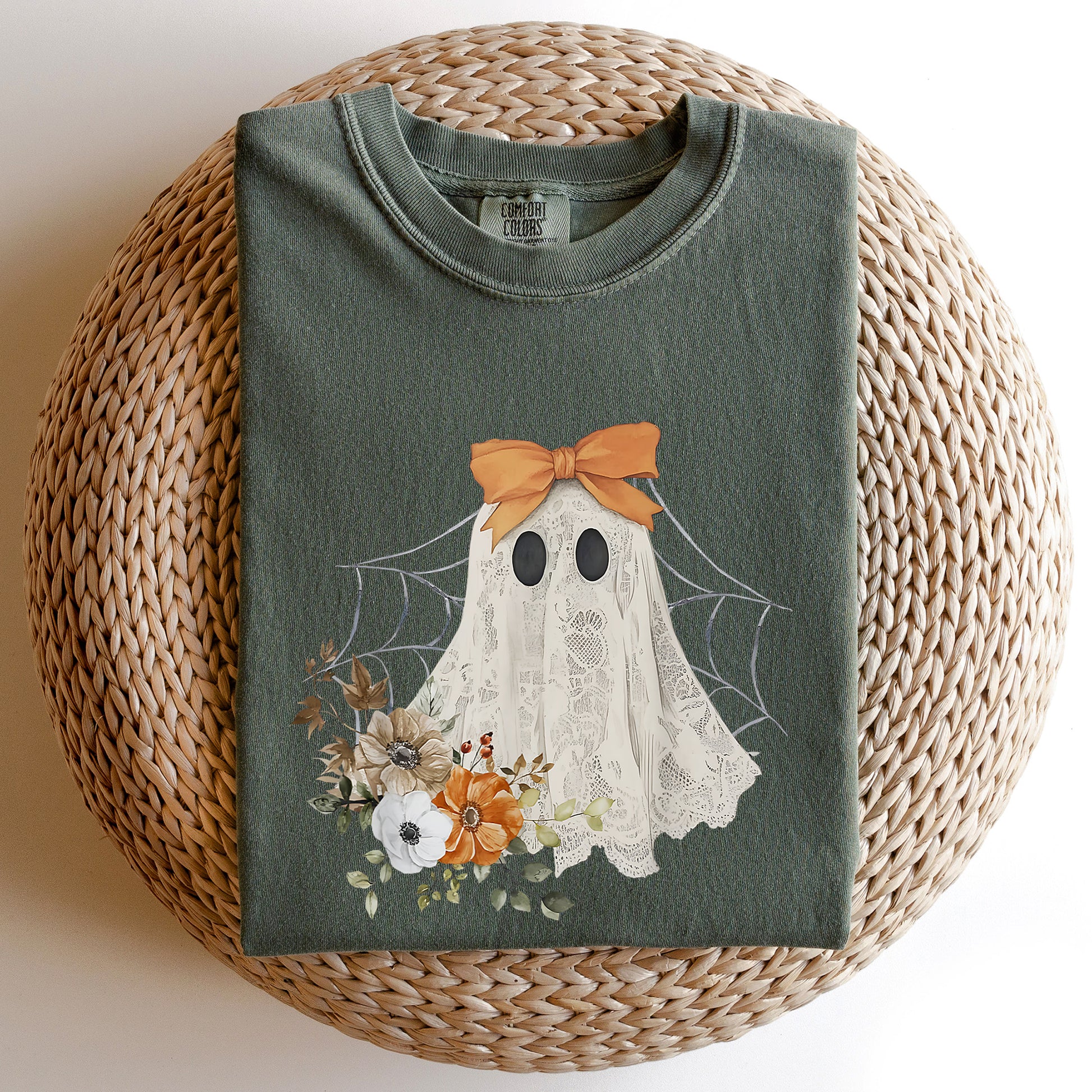 Lace Ghost, Halloween, Girly, Spooky Coquette, Lacey Ghost, Orange Bow, Ribbon, Flowers, Spider Web Tshirt Comfort Colors T-Shirt