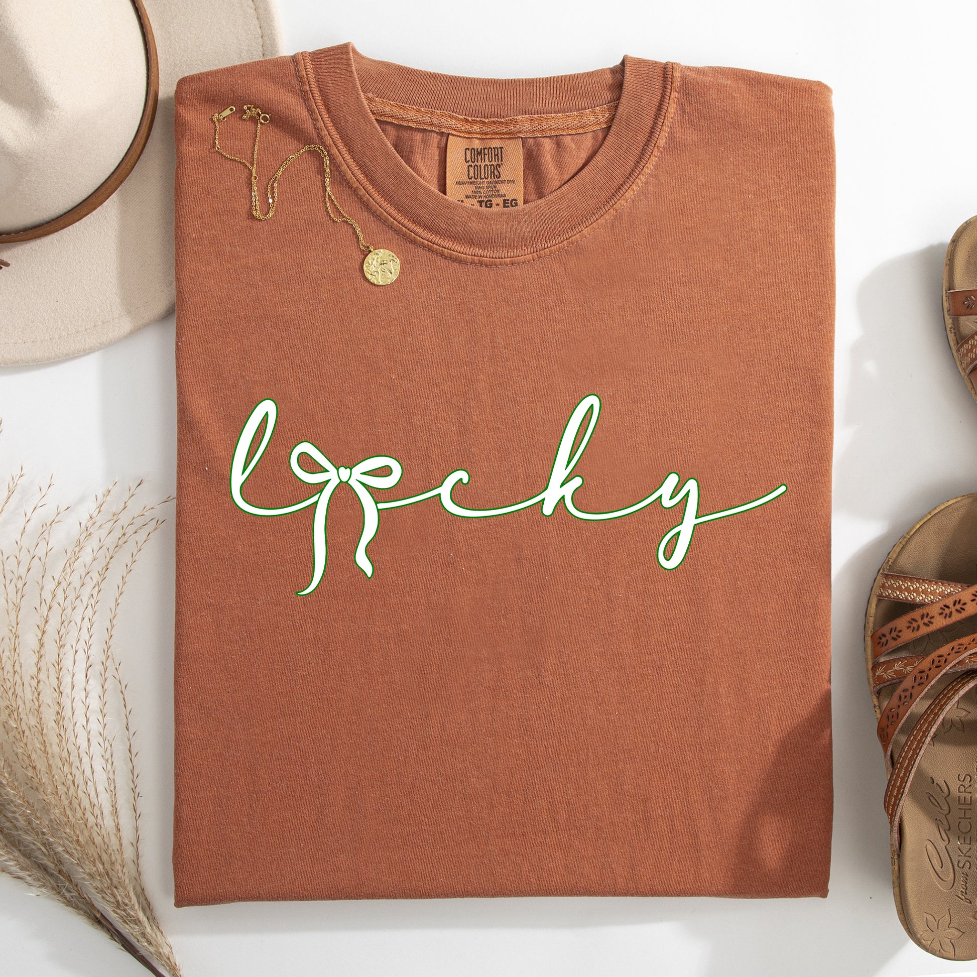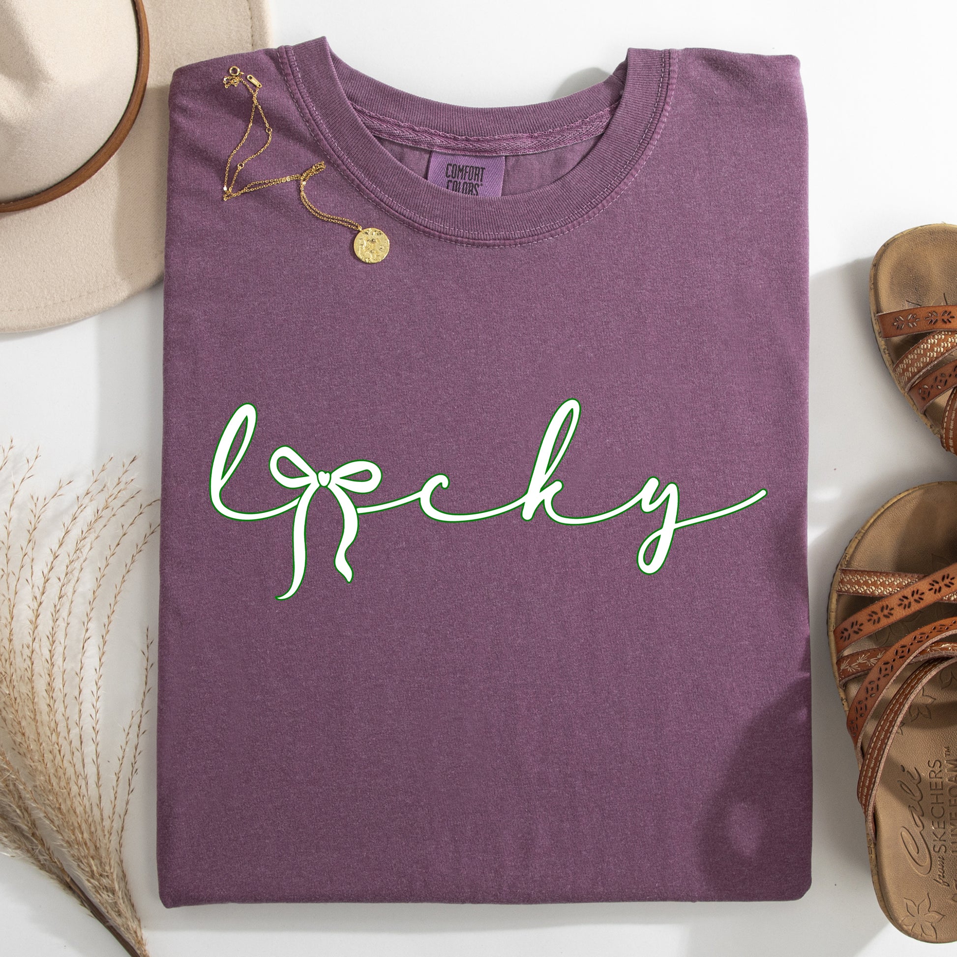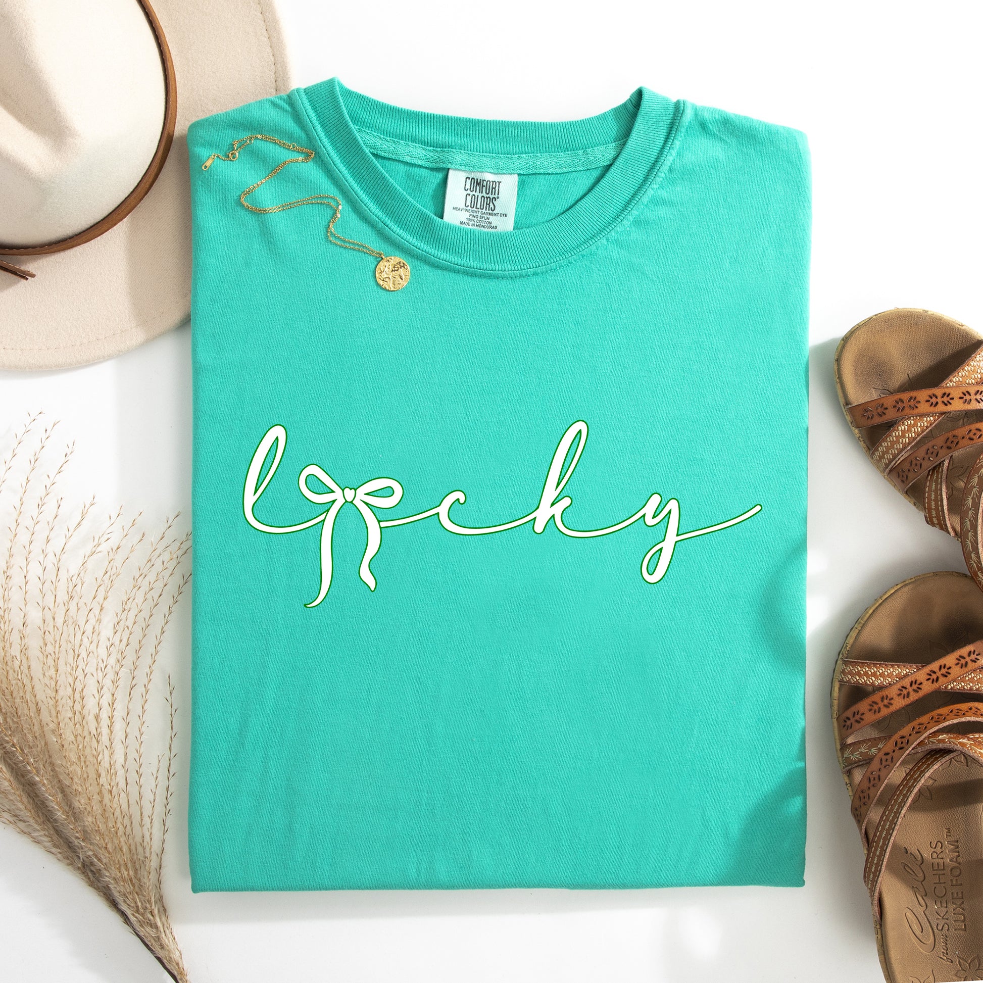 Lucky, Ribbon, Coquette, Bow, St Patrick's Day, Shamrock, Clover, Lucky, Leprechaun Tshirt Comfort Colors T-Shirt