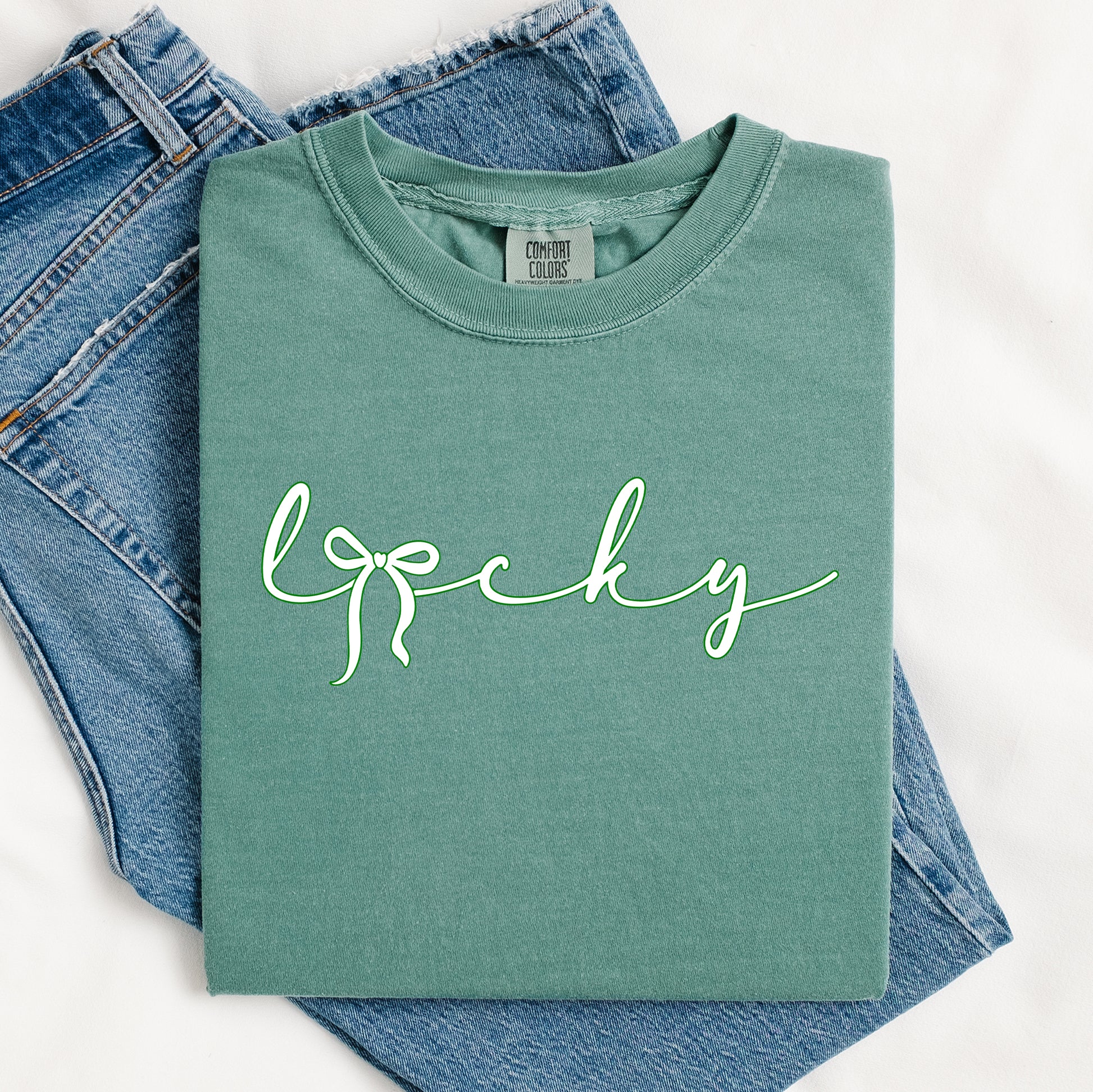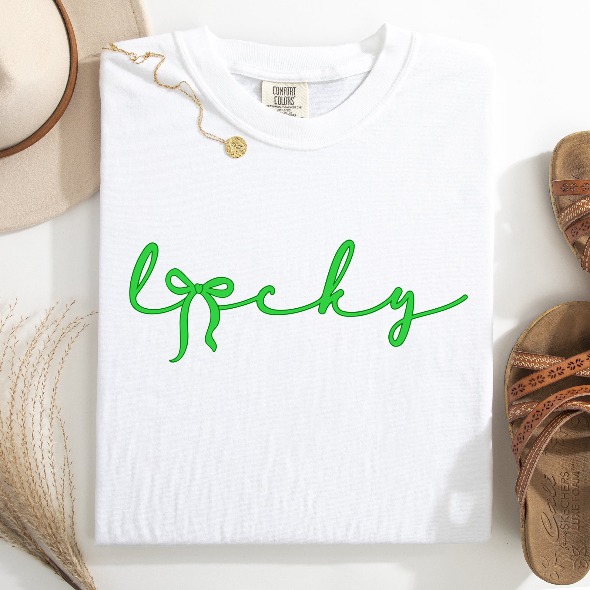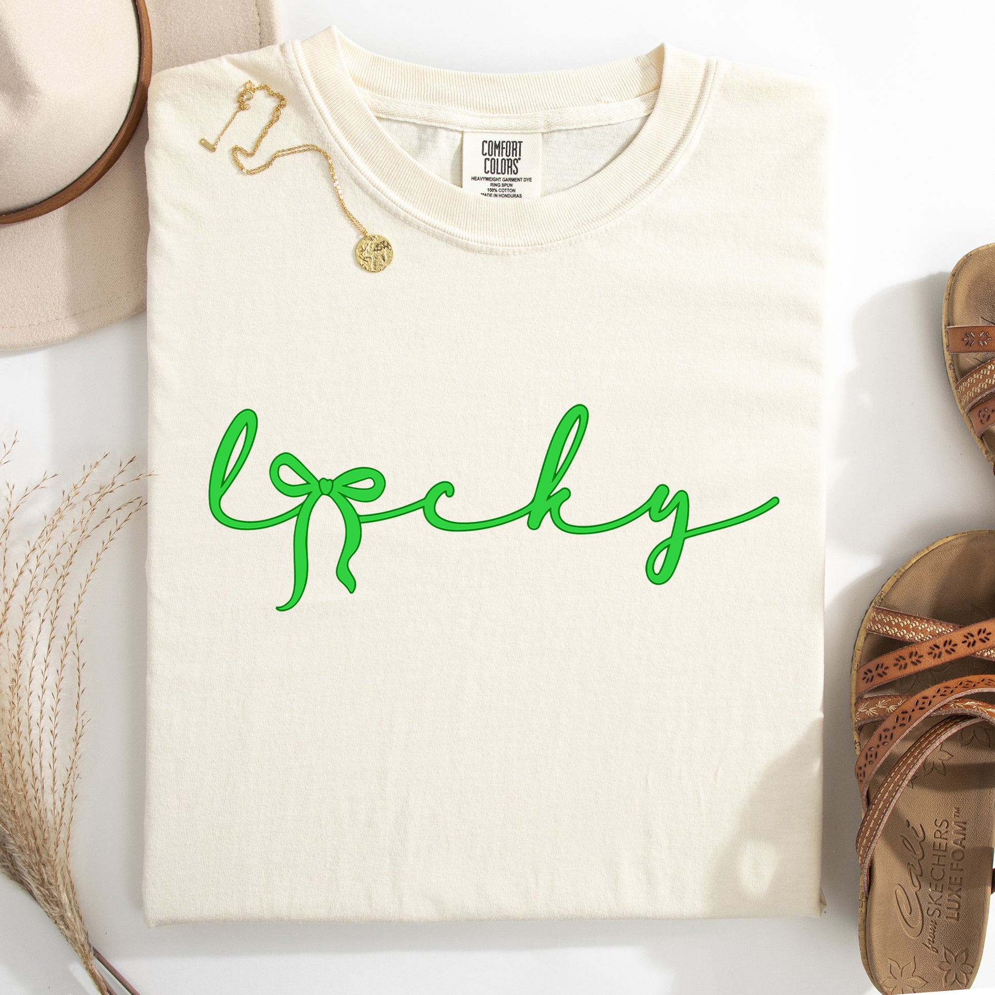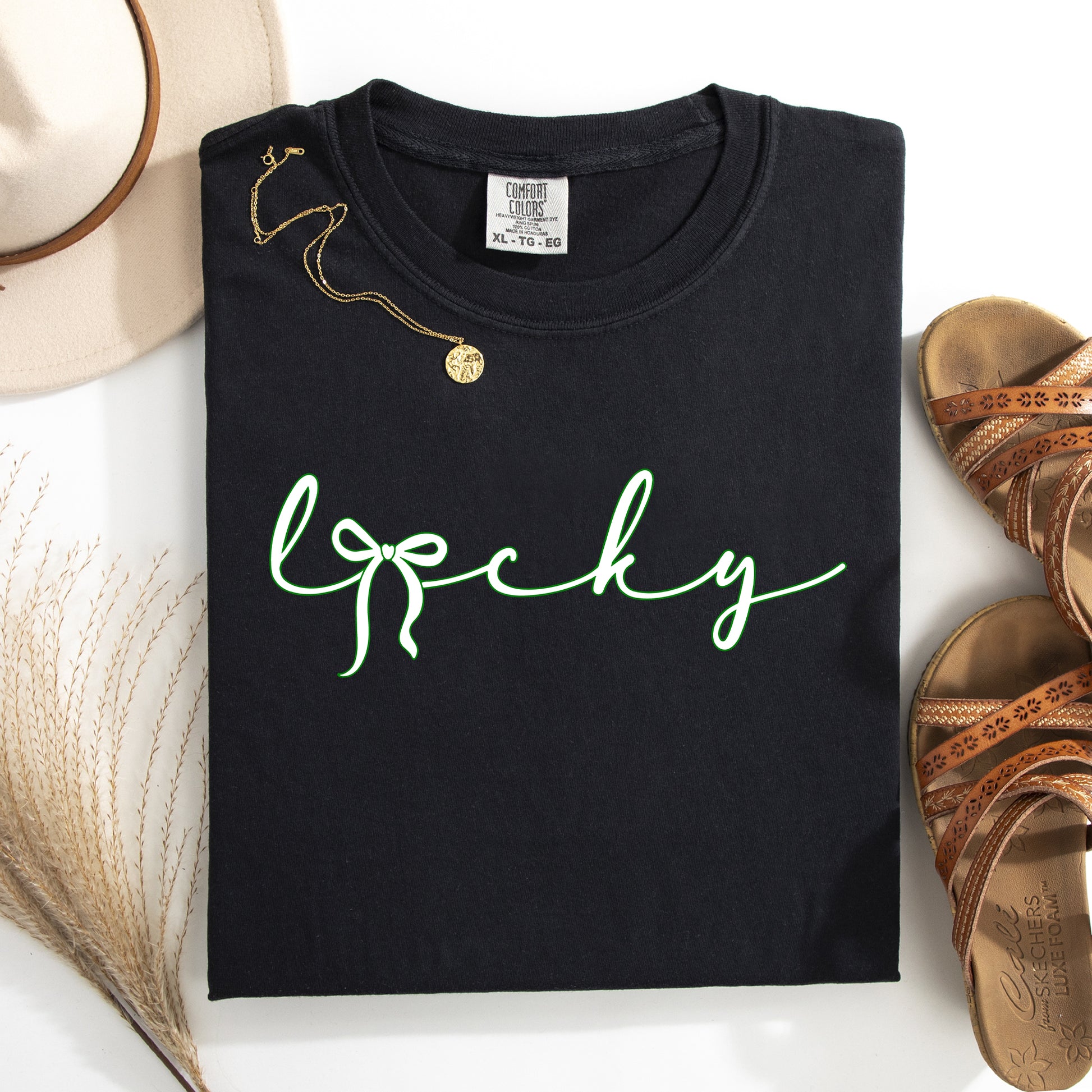 Lucky, Ribbon, Coquette, Bow, St Patrick's Day, Shamrock, Clover, Lucky, Leprechaun Tshirt Comfort Colors T-Shirt