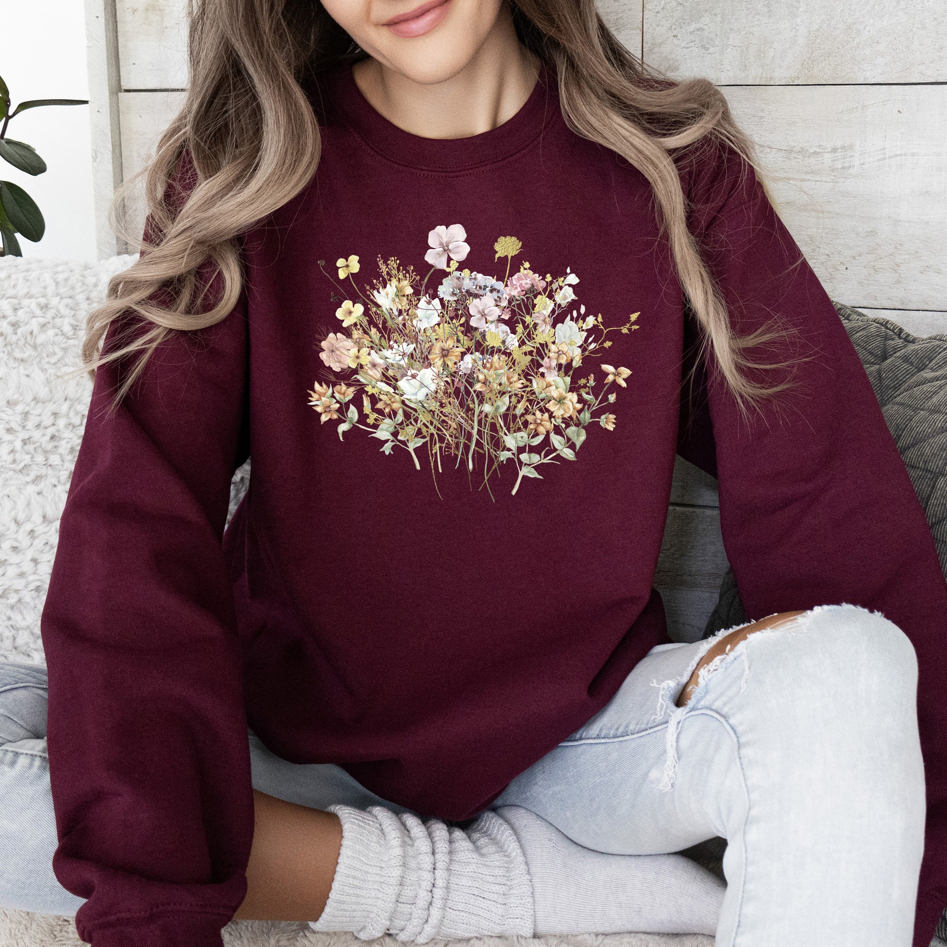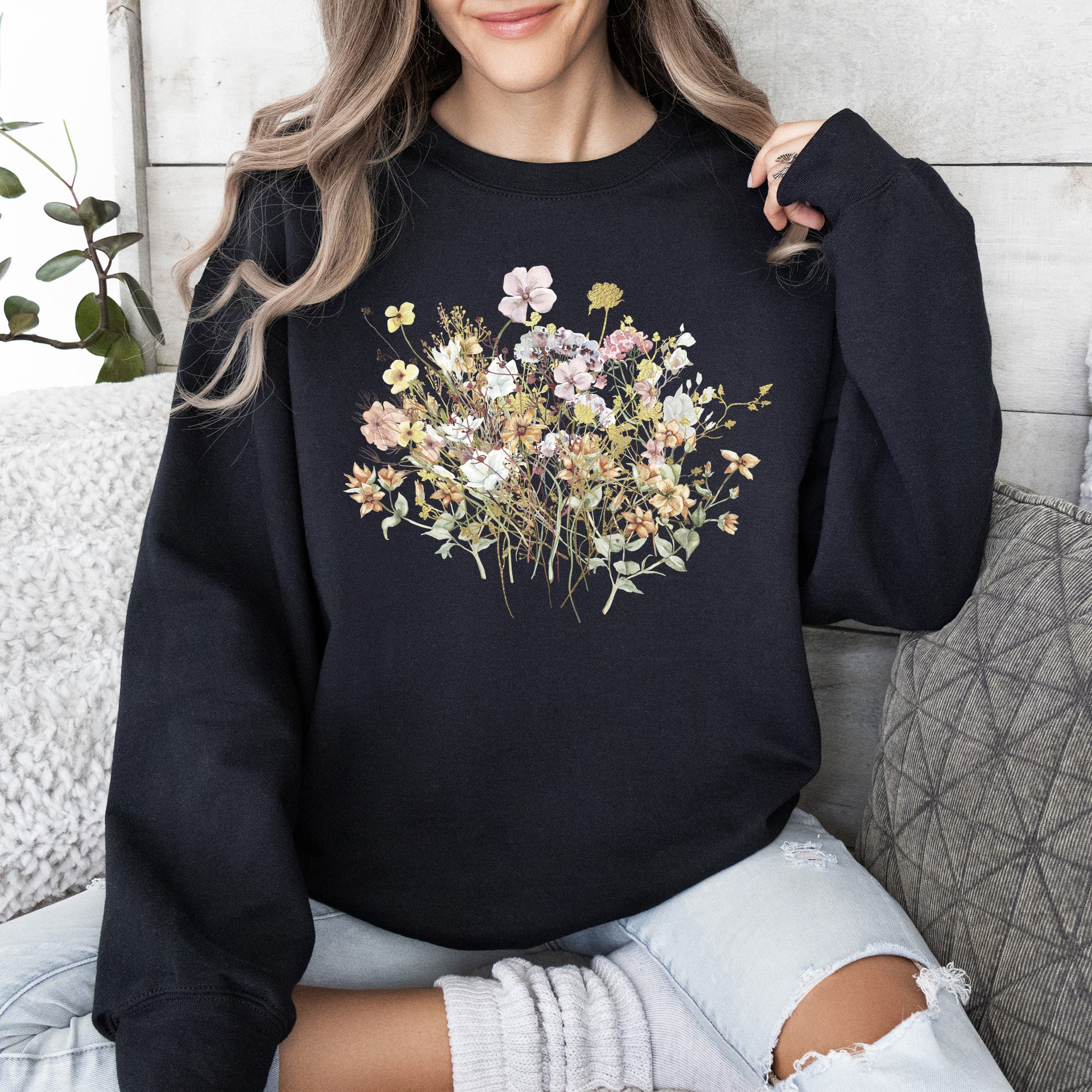 The Meadow, Pressed Flowers Sweatshirt is incredibly versatile. Pair it with your favorite jeans for a relaxed yet trendy look or layer it over a shirt for added warmth and style. Whether you’re headed out for a casual outing or enjoying a cozy night in, this sweatshirt is the perfect addition to your wardrobe.