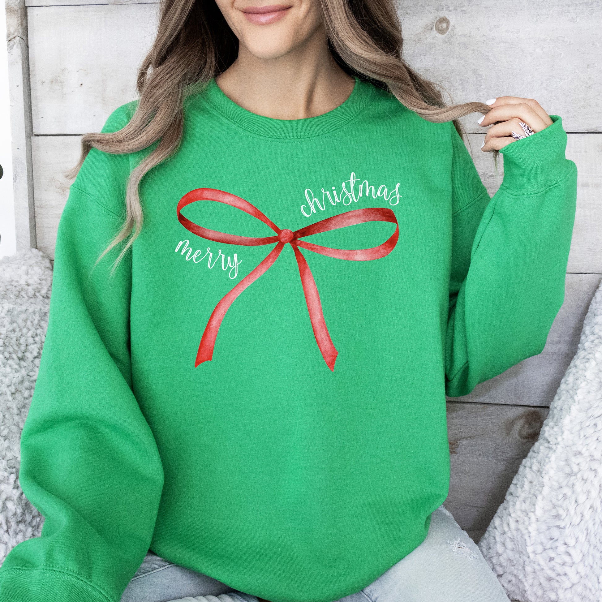Merry Christmas Bow, Coquette, Cutesy, Santa, Classic, Girly Sweatshirt