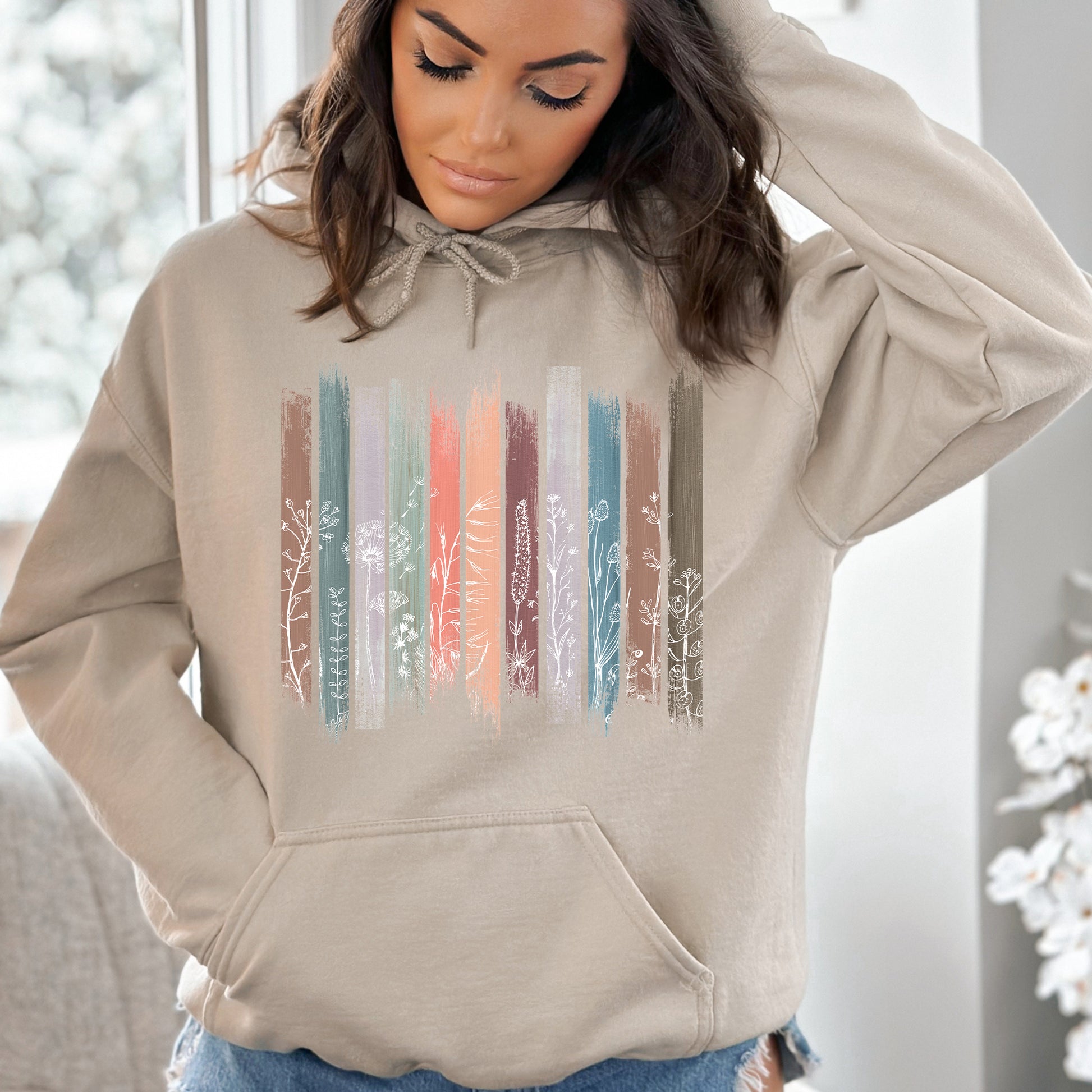 Wildflowers, Nature, Floral, Botanical Stripes Hoodie
