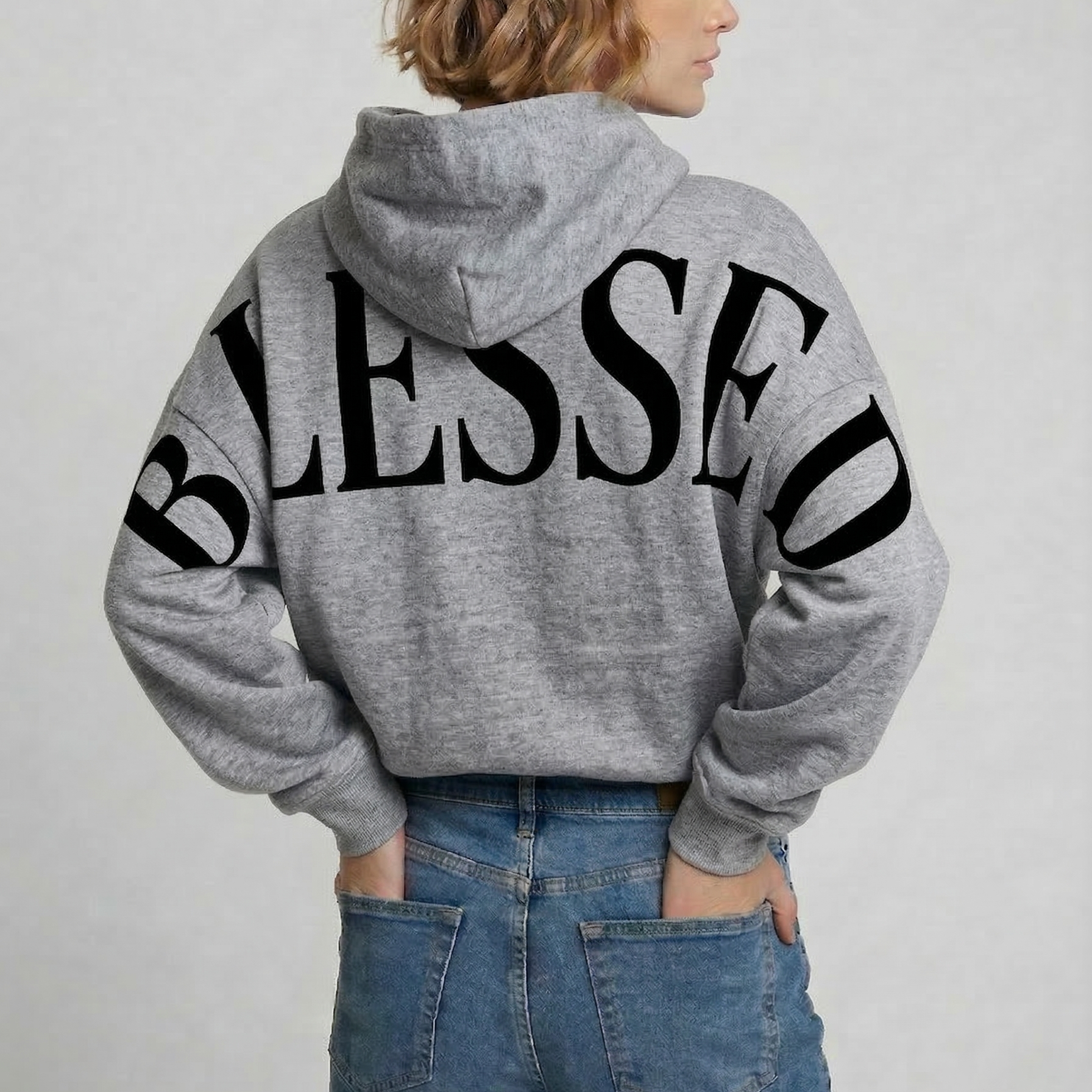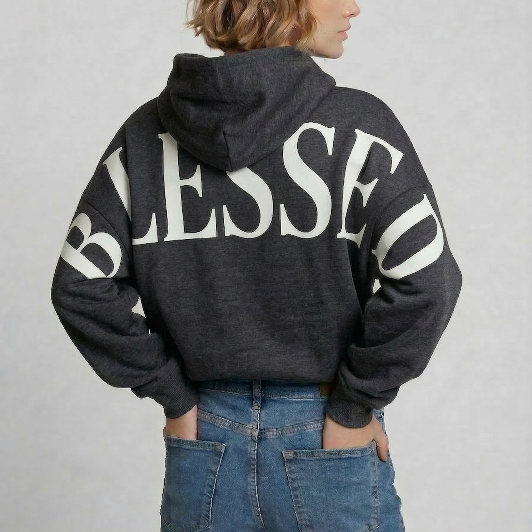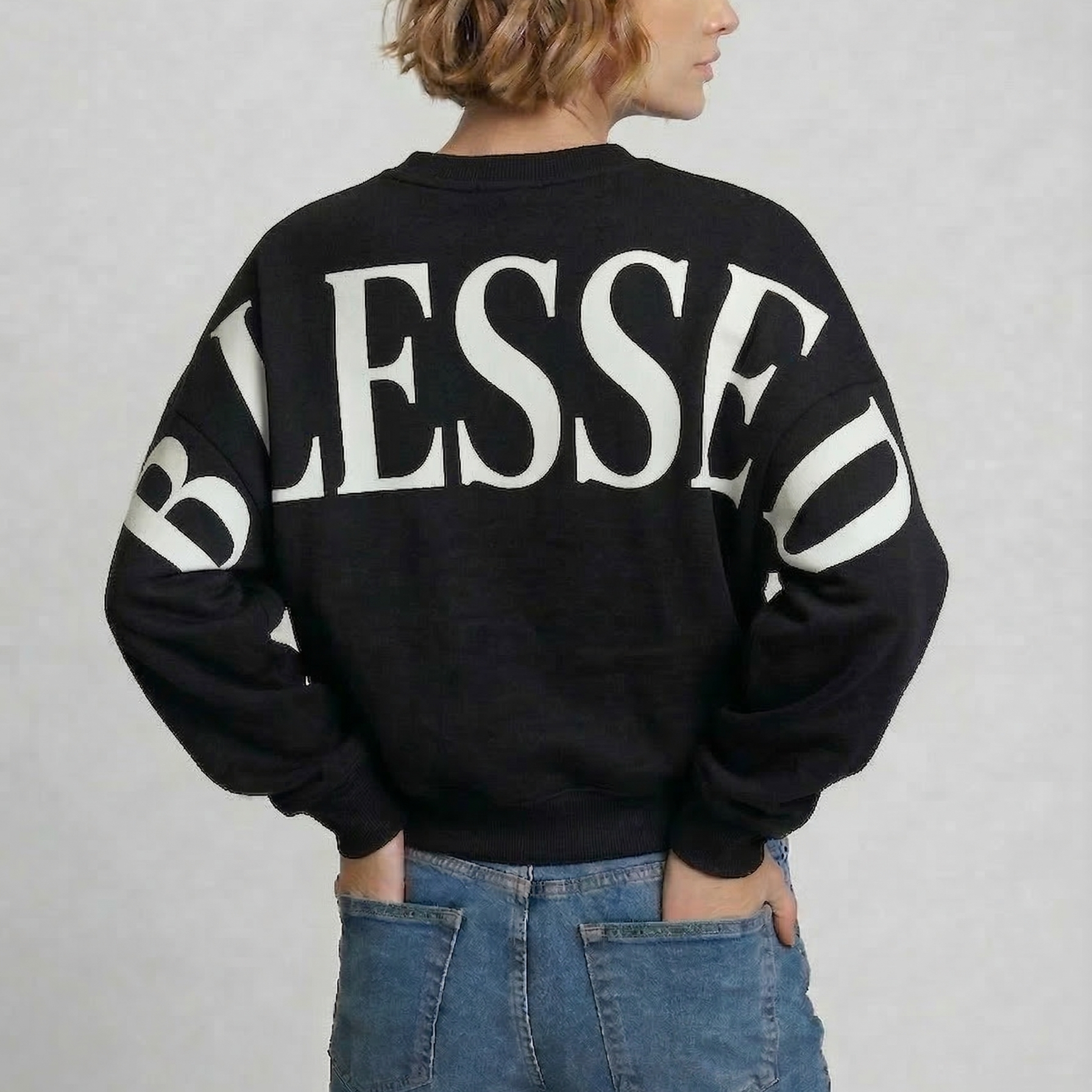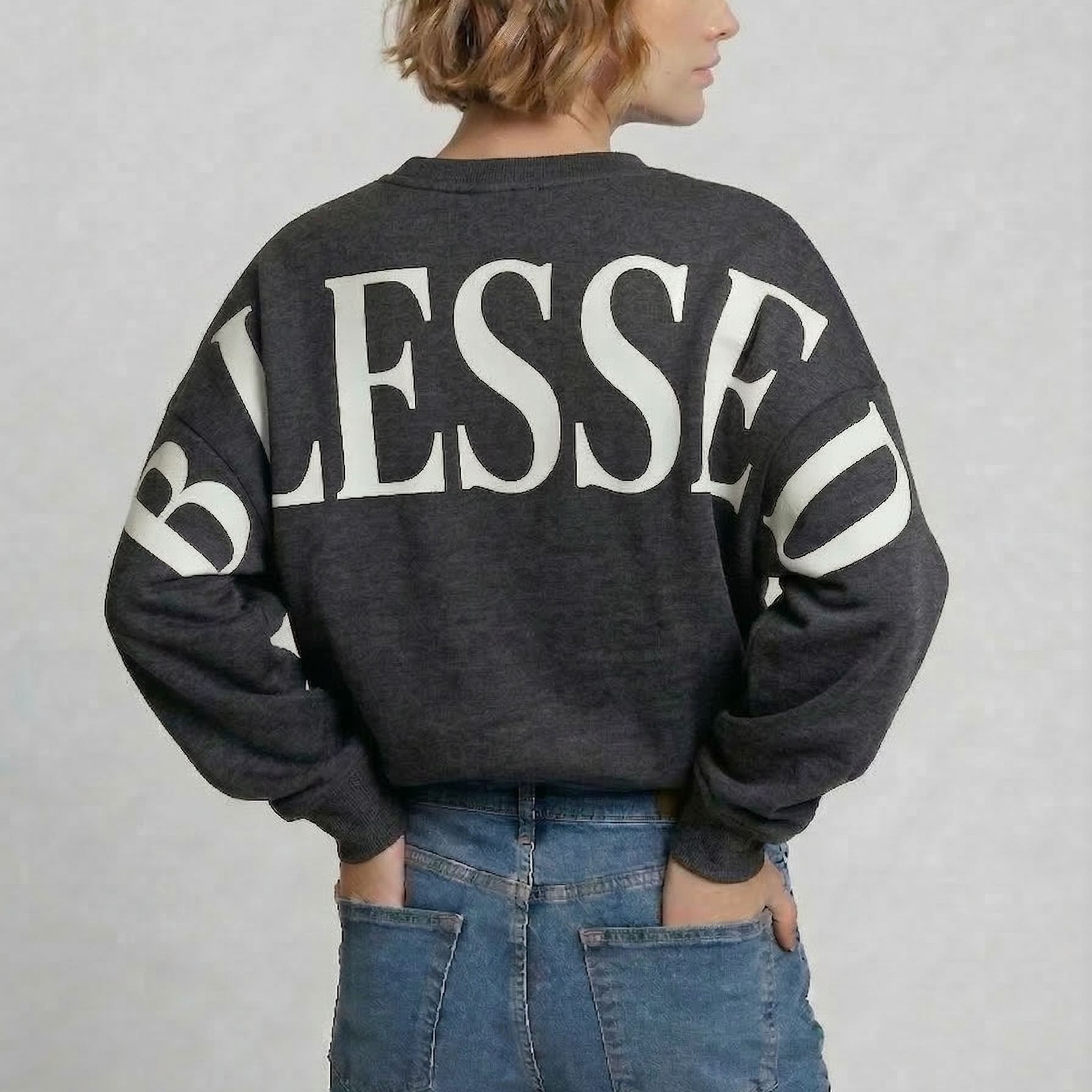 The oversized back print sweatshirt that says it all. Featuring a bold, giant BLESSED graphic across the back and sleeves — designed to be seen, not subtle. This faith-inspired hoodie and crewneck is the perfect statement piece for anyone who loves oversized graphic sweatshirts with meaning.
