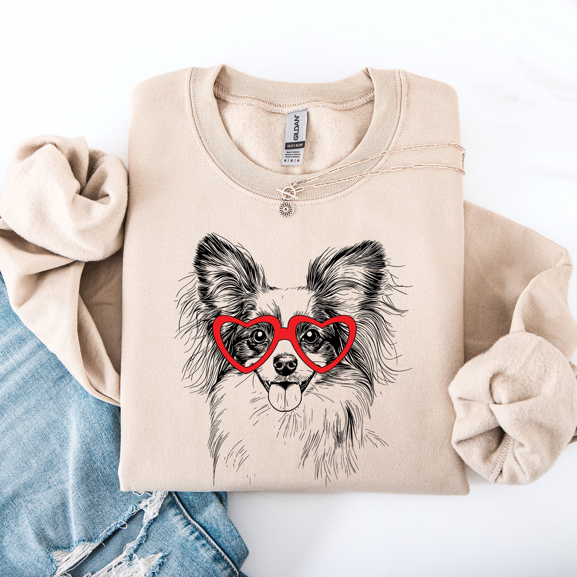 This Papillon, Pet, Dog Breed, Valentine's Sweatshirt pairs beautifully with jeans for a relaxed yet trendy look. Layer it over a shirt for added style on those cooler days. Ideal for casual outings with friends or cozy nights in with your furry companion, this sweatshirt is versatile and stylish!
