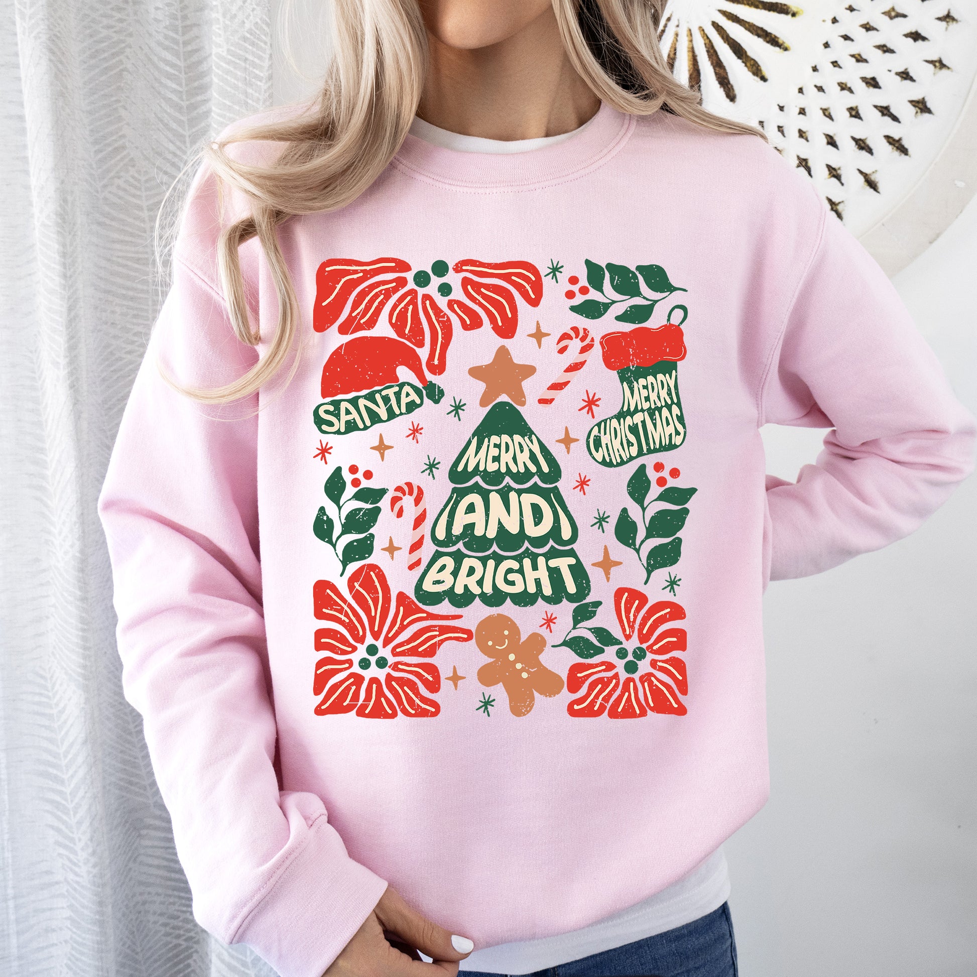 Embrace the festive spirit with our Red Merry and Bright, Candy Cane, Tree, Merry Christmas, Flowers, Floral Sweatshirt. This cozy sweatshirt is more than just a piece of clothing; it’s a celebration of the joyful season, combining style with comfort in one delightful package. Designed for everyone, this unisex pullover makes a perfect gift for yourself or a loved one who adores the charm of the holidays.