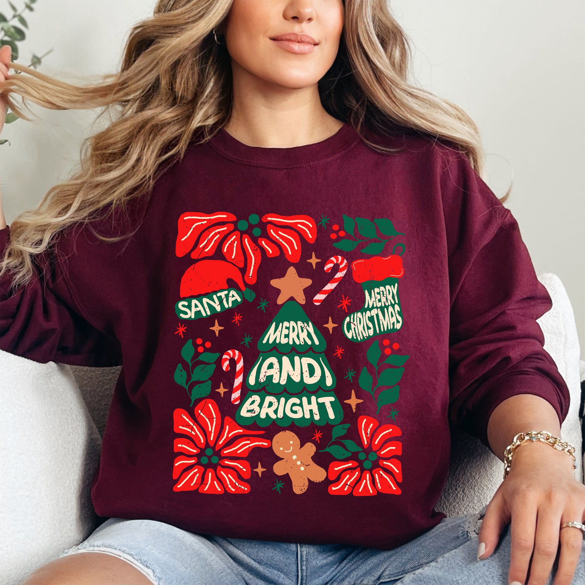 Red Merry and Bright, Candy Cane, Tree, Merry Christmas, Flowers, Floral Sweatshirt