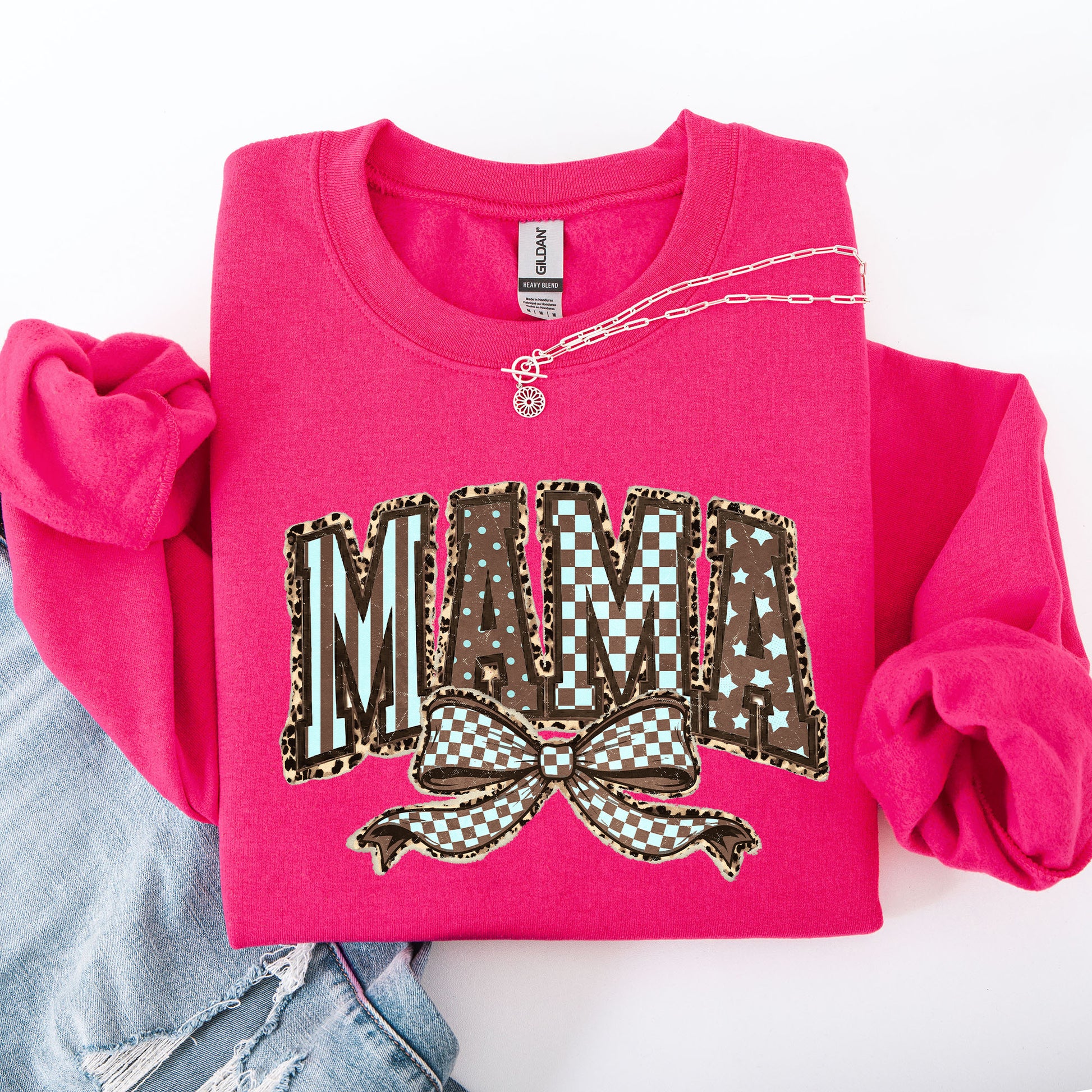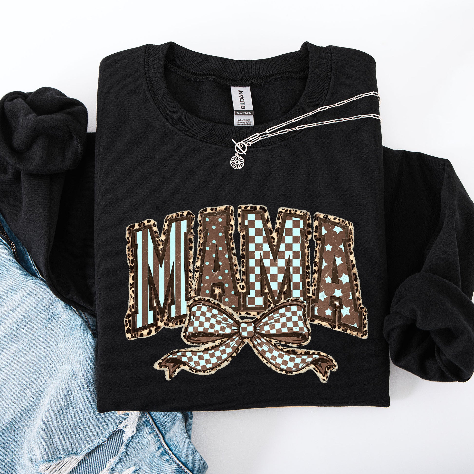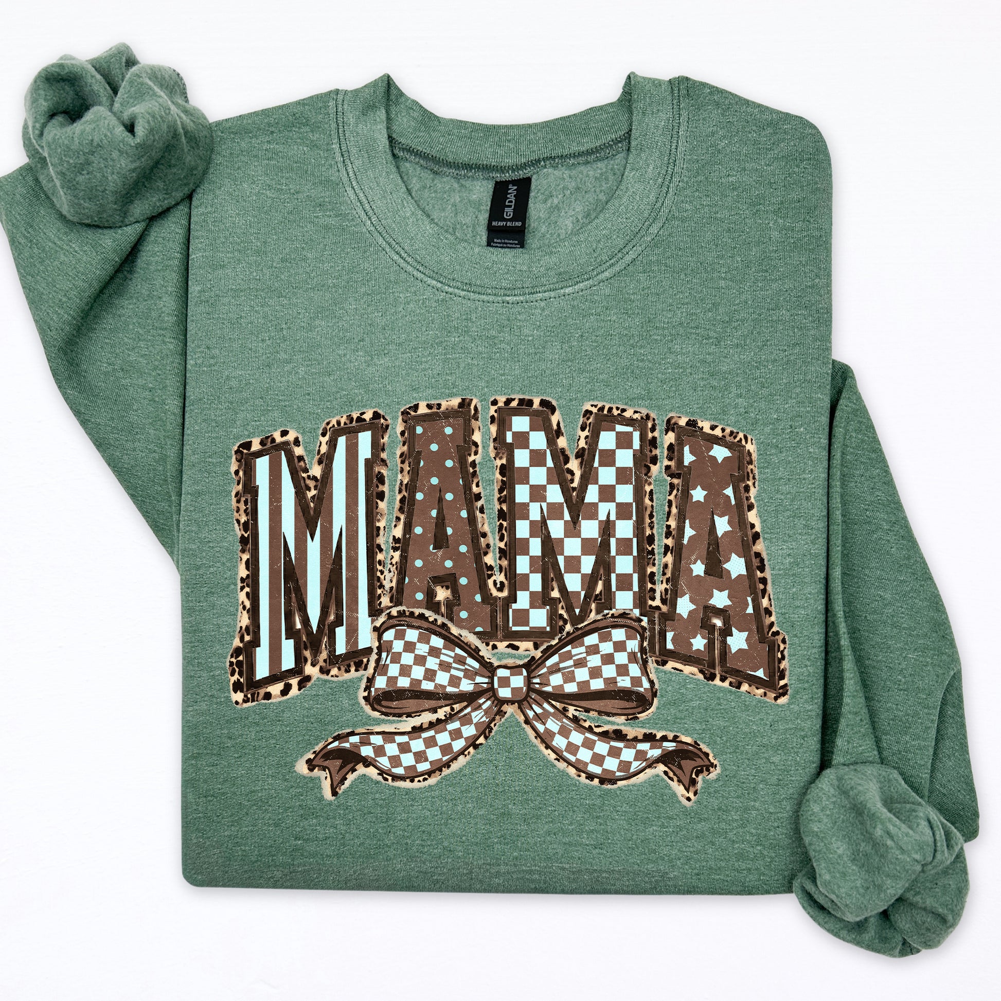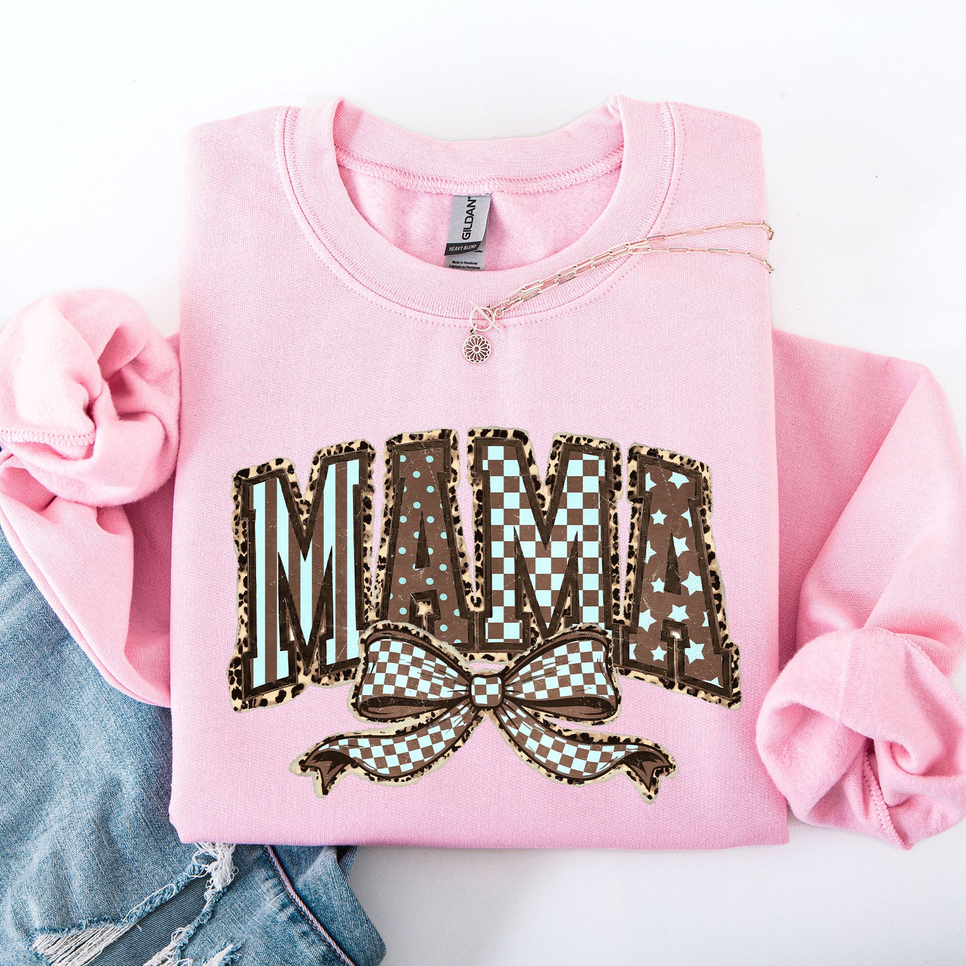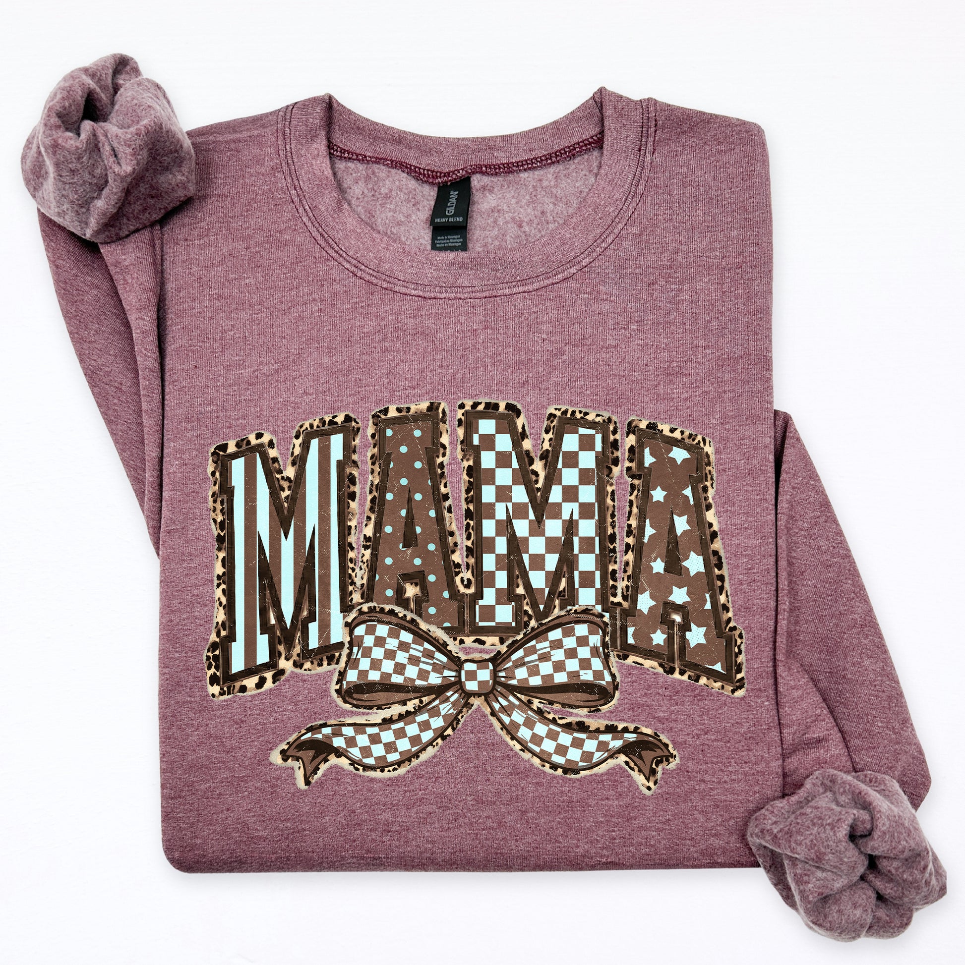 Retro Mama, Bow, Mother's Day, Checkered, Star Sweatshirt
